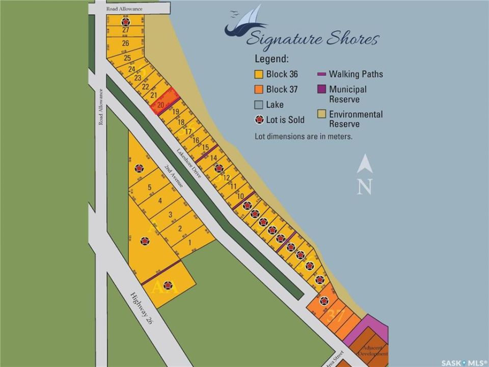 LAKEFRONT LOT on the tranquil shores of Jackfish Lake in the subdivision of Signature Shores. This exceptional lakefront lot offers the perfect canvas for your vision, whether it's a sprawling family estate or a cozy cottage retreat. The developers took great pride and detail in making sure this lot was ready for you to build on, offering endless possibilities for design and landscaping. Enjoy unparalleled access to excellent fishing or boating adventures right from your doorstep. The lot's eastern exposure makes sure you always wake up to a beautiful sunrise over the lake, further enhancing its appeal. Nestled in a peaceful setting yet conveniently located in the village of Meota, this is more than just land – it's an invitation to a lifestyle. By purchasing this lot, you also have an opportunity to purchase a boat slip at the inland marina next door (yes! an inland marina!). The path leading to the marina is golf cart friendly, making it so simple to access your boat to head out onto the lake (or you can put in a dock and boat slip in front of your lot if you choose to go that route.) Also being built by the inland marina is a convenience store, playground, pickleball court, and splash park! Fun for everyone. Don't let the depth of this lake fool you - there is plenty of fish here! Northern pike, walleye, perch, and whitefish are all species you will find at the end of your hook. The village of Meota has a restaurant, bank, liquor store, and a challenging 9-hole golf course. Located 20 minutes north of North Battleford, 1 hour 45 minutes northwest of Saskatoon, or 1 hour 30 minutes east of Lloydminster. Come relax at the lake! GST is applicable.