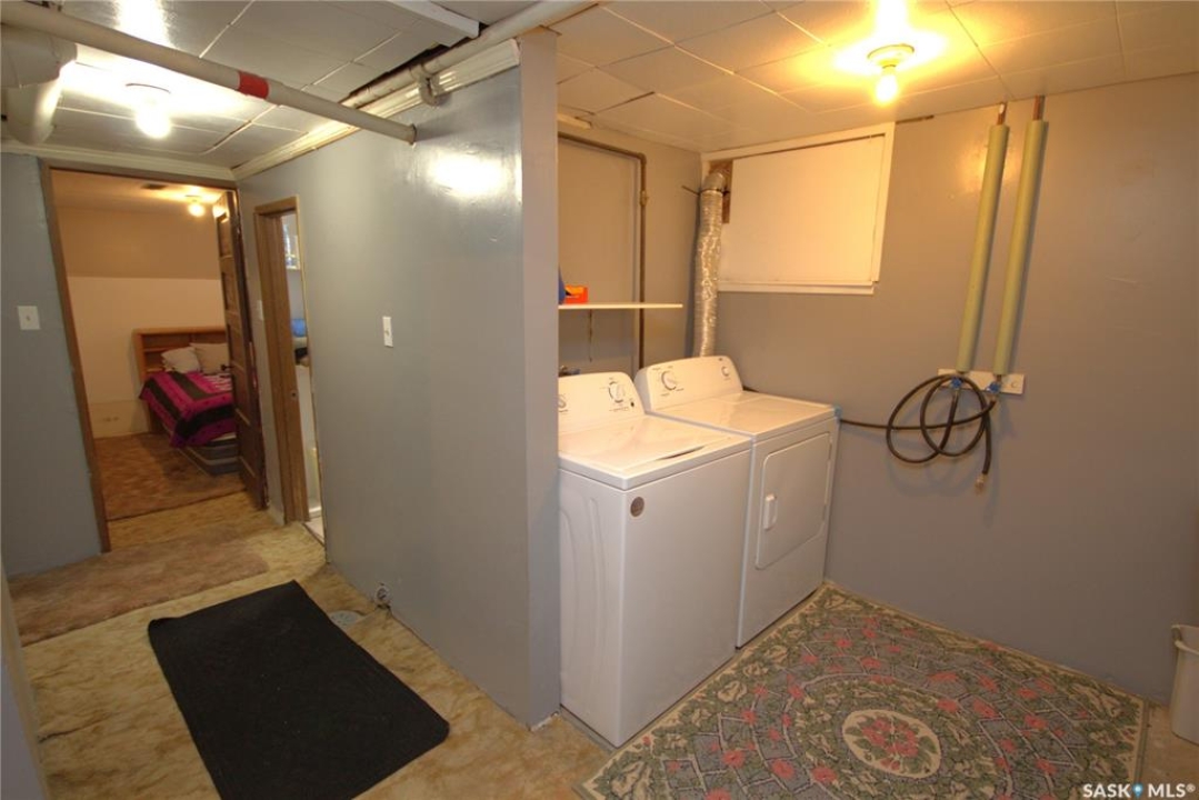 Ideal for first time home-buyers or a retired couple, this home is located in the picturesque town of Wilkie, SK. From the outside it is hard to see how much room this home has to offer! The original part of the home was built in 1905 then in 1987 an addition was added to give this home 1013 sqft of living space on the main level. The heated porch welcomes you and offers a place to hang your coat & put your footwear. Turn to go into the house & a beautiful wooden door with an oval glass window greets you as you walk into the house. Enjoy the extra large living room with 10ft ceilings & an abundance of natural light. The galley style kitchen with painted white cabinets offers lots of room to move around & prepare you favorite meals. The dining room at the back of the house shares a space that could double as an office space or sitting area which leads to the deck & the yard. Two bedrooms on the main floor & a 4pc bathroom with a freshly renovated tub, tub surround & fixtures. The lower level offers tons of storage & a rec room area that is partially developed so it can be finished anyway you like. The gas fireplace is in 'as is' condition. A bedroom & 3pc bathroom is perfect for guests. The laundry room houses a washer/dryer set that is about 1 yr old. You'll have plenty of hot water as this home has an electric & gas water heater. The furnace is mid efficient & there is a 100amp panel box. Enjoy the deck off the back of the home & the privacy offered by the mature trees, some fruit trees & a partially fenced yard. The 16x24 partially insulated garage is heated with an oil heater & does not disappoint! With working room while having your vehicle parked inside anyone who's a pro at tinkering or just beginning, will love this space! For additional parking & storage there's a metal 20x14 garage/shed & 2 additional sheds There is RV parking & additional parking for other vehicles such as cars, boats, etc. Sounds like home? Call today!