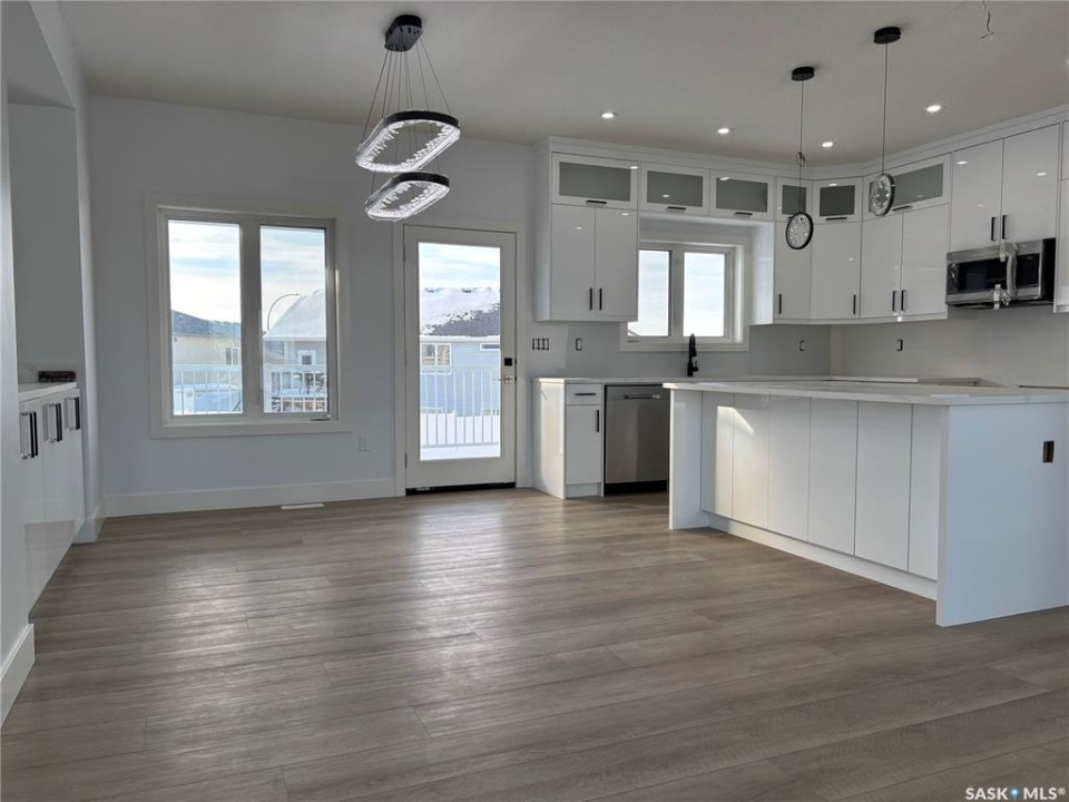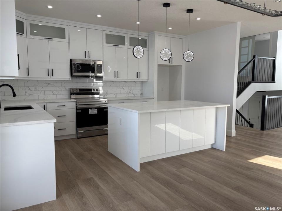 Modified bi-level home. Vinyl fence included! Great opportunity to live in the growing community of Warman close to the Legends Golf Course, Sports Centre, grocery stores and all other amenities. 1,735 sqft on 2 levels above grade. Spacious/open concept with extra high 9' ceilings up and 9' down giving it a light/bright/ modern feel. Main level is perfect for entertaining guests. Kitchen has pantry, tile backsplash, quartz countertops and ample cupboard storage. Massive primary bedroom on a separate level. You'll love the luxurious en-suite bathroom off the bedroom with double sink, soaker tub & beautiful custom tile shower. Lots of high-end finishings throughout with upgraded vinyl flooring, unique fixtures, and tile work. Other notable features include a gorgeous electric fireplace in the living room & a spacious deck (vinyl deck/ no stairs). Also has an insulated triple attached garage and a triple concrete driveway. Lovely street appeal. GST/PST included in the purchase price, rebate back to builder. Established local builder, Blanket New Home Warranty, call today!