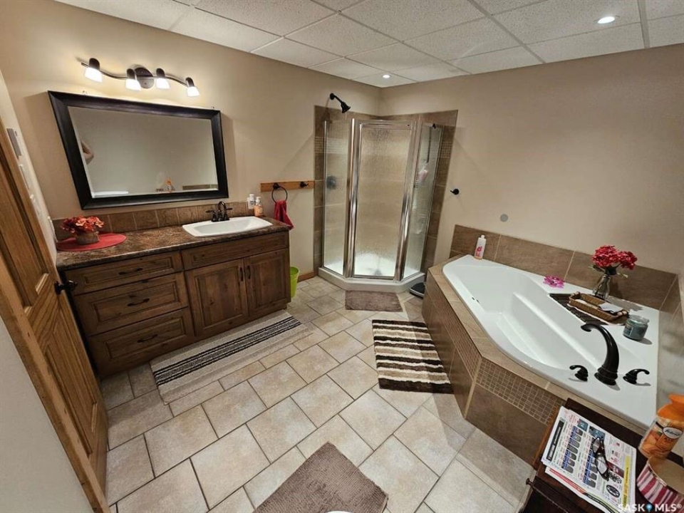 For more information, please click the "More Information" button. Stunning Acreage with Spectacular Views in the Qu'Appelle Valley! Incredible opportunity to own a beautiful acreage nestled in the Qu'Appelle Valley, just 3 minutes from Fort Qu'Appelle on the north hillside of Echo Lake. This spacious home sits on 1.69 acres with breathtaking panoramic views and sunsets. Offering over 1900 sq. ft. upstairs, this property features 5 bedrooms and 3 bathrooms, including a 4-piece ensuite. The layout includes 2 bedrooms upstairs, 3 large bedrooms downstairs, an upstairs laundry, and a bright office space. Enjoy a huge kitchen with eating bar for 6, a large dining area, and engineered hardwood floors. Cozy up to the wood-burning fireplace upstairs or the natural gas fireplace downstairs. Relax outdoors on the completely covered deck that wraps around the entire front of the house, perfect for enjoying the stunning views in any weather. The lower level features a large mechanical room with storage shelves, a boiler system for in-floor heat in both the downstairs and garage, a water softener, and a central vacuum system. Additional highlights include a 2,600 gallon septic tank, a private well with excellent water quality and quantity, solid pine doors and trim throughout, an attached 2-car garage, ample parking, beautifully landscaped yard, and an outbuilding for extra storage. This exceptional property offers space, comfort, and stunning scenery - all minutes from town amenities and 45 minutes from Regina. Don't miss your chance to call this incredible acreage home!