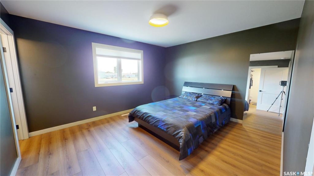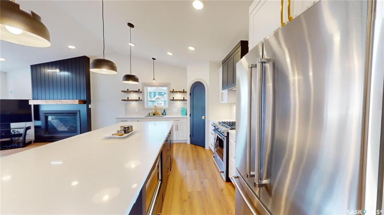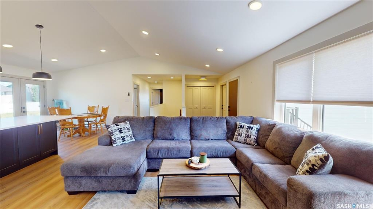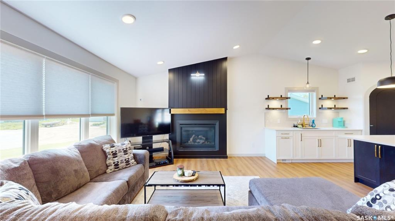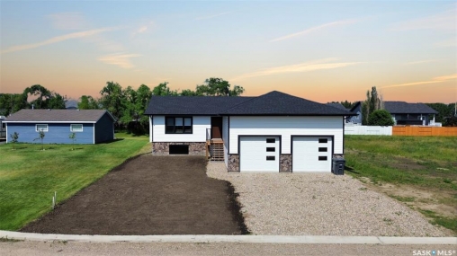Welcome to a more relaxed and enjoyable lifestyle in the wonderful and safe Town of Waldheim where this stunning raised bungalow on a 60'x140' lot with an attached garage awaits you. 2 bedrooms on the main floor allow for a wonderfully spacious open concept in this 1,241 square foot home with a gorgeous two-tone kitchen. High-end finishes such as quartz countertops with an eating ledge, an attractive tile backsplash, a gas range, and a stylish pot-filler will make meal prep and entertaining a pleasure. Vaulted ceilings float above the kitchen and living room where a warm gas fireplace will keep you warm. The primary bedroom has a beautiful 3pc ensuite with a large tiled shower and an oversized walk-in closet and laundry service. There's a head start on the basement development where a 3rd bedroom is almost complete and the outside walls are boarded. Large windows, and rough-ins for a 3rd bathroom and a 2nd laundry service provide loads of potential in the lower level. A huge double garage has direct entry to the home and high ceilings for additional storage options. Other extras include a corner kitchen pantry with custom round-top door, central air conditioning, front and back top-soil, a Heat Recovery Ventilation system for premium air quality, double garden doors to the future deck, and more. Call now for your own private viewing!