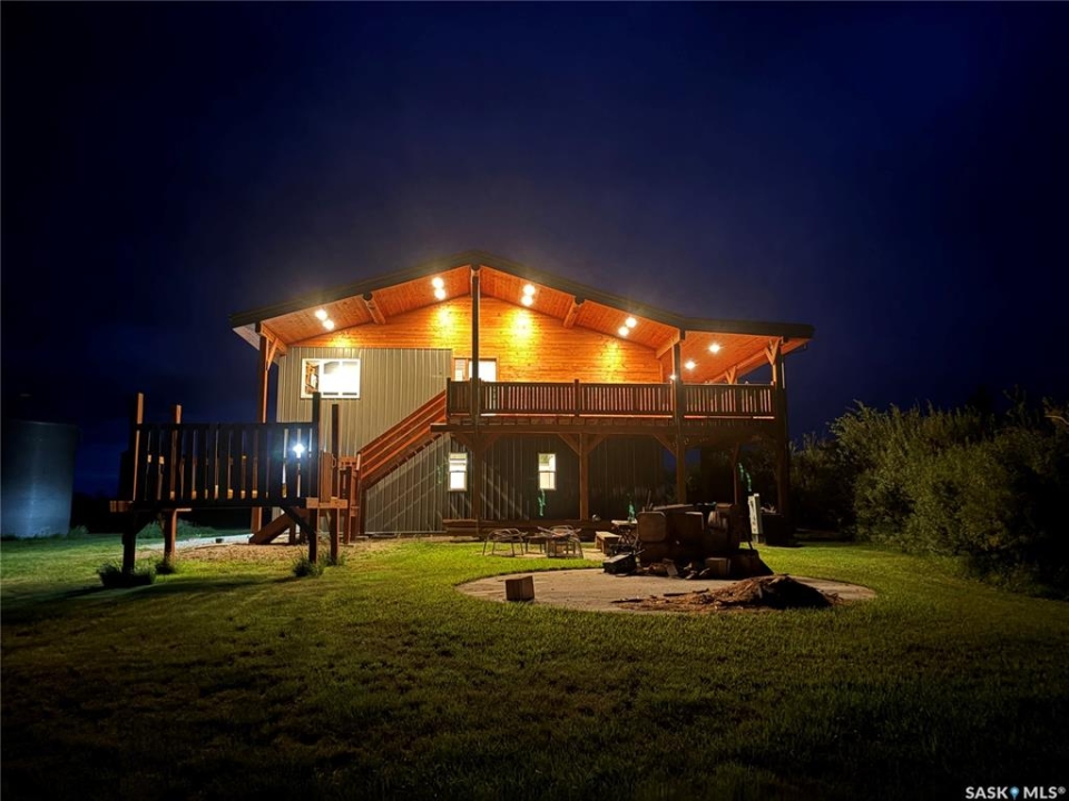 SE-13-28-24W3 just 16 km SW of Kindersley. A one of a kind Shouse! This shop with home addition on 9.9 acres is one to see! The craftmanship and work behind this property is outstanding. Entering through the home side, you will be welcomed with Douglas Fir beams and live edge Elm Wood in the recreation room. Endless opportunities for this space whether it be living space, converted to bedrooms or an entertainment room. Concrete floor with in floor heat. The utility room is just off this space. To the south is the attached shop. Continuing on through the home, there's the 4 piece bath with laundry. Tiled and in floor heat. Stunning claw-foot tub and separate walk in tiled shower. A beautiful staircase leads you up to the 2nd story right into the primary bedroom. Sliding patio doors will take you out to the wrap around deck, giving you the best prairie views and sunsets. The living area and kitchen are open concept, keeping it cozy with the wood burning stove. A bonus room and a 3 piece bath complete the 2nd level. Other features to this property include solid wood doors and trim throughout, metal roof on house and shop, large garden, mature yard, 11,000 total bushel storage in bins and more. Call today for more information and to schedule your private tour!