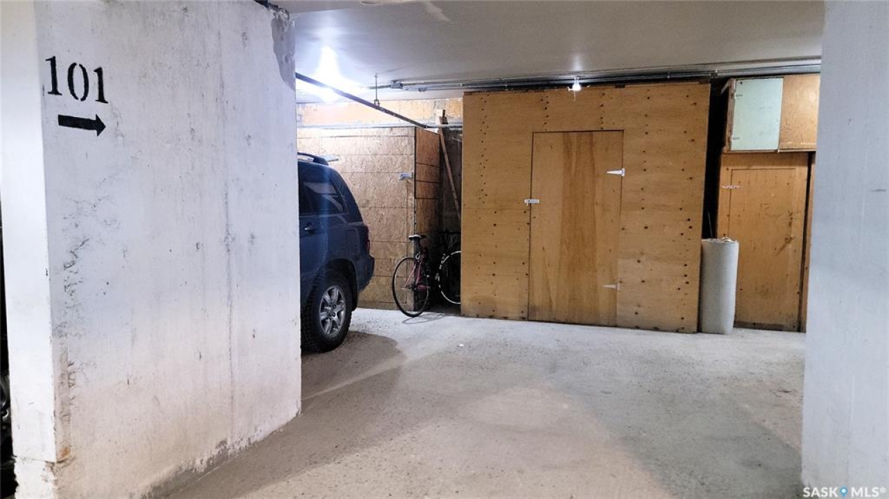 Spacious & Clean Varsity View Condo with Elevator & Underground Parking. Features 1020 Sq. Ft. with Large Kitchen / Dining, 2 Bedrooms, 2 Bathrooms (Walk in Closet & 2 Pc Ensuite off Master Bedroom). Spacious Entry into Unit & Lots of in Unit Storage space with Laundry room / Storage - plus multiple Closets. Includes Fridge, Stove, Washer, Dryer, Dishwasher. This Corner Unit offers many Windows & a Patio Door to wrap around South-West facing Deck. Surrounding trees give Balcony / Deck lots of Shade & Privacy. Great location for Students (easy travel to U of S) or Seniors (Spacious Living space close to many Amenities, 8th St. & Downtown). Bus stop only steps away from the front door. Heated Underground Parking + Storage & Visitor Parking on Main Street & at North end of the Building. Vacant Quick Possession available. Don't miss out, Great unit - Great Price for Varsity View!