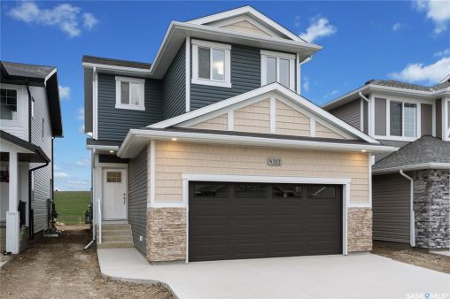 "NEW" Ehrenburg built - 1560 SF 2 Storey. *LEGAL SUITE OPTION* This home features - Durable wide Hydro plank flooring throughout the main floor, high quality shelving in all closets. Open Concept Design giving a fresh and modern feel. Superior Custom Cabinets, Quartz counter tops, Sit up Island, Open eating area. The 2nd level features 3 bedrooms, a 4-piece main bath and laundry area. The master bedroom showcases with a 4-piece ensuite (plus dual sinks) and walk-in closet. BONUS ROOM on the second level. This home also includes a heat recovery ventilation system, triple pane windows, and high efficient furnace, Central vac roughed in. Basement perimeter walls are framed, insulated and polyed. Double attached garage with concrete driveway and front landscaping. PST & GST included in purchase price with rebate to builder. Saskatchewan New Home Warranty. Projected JAN 2026 POSSESSION --- This home is currently UNDER CONSTRUCTION. ***Note*** Pictures are from a previously completed unit. Interior and Exterior specs vary between builds. Buy now and lock in your price.