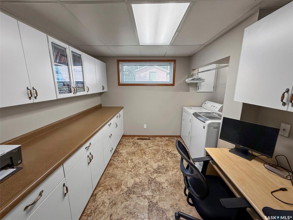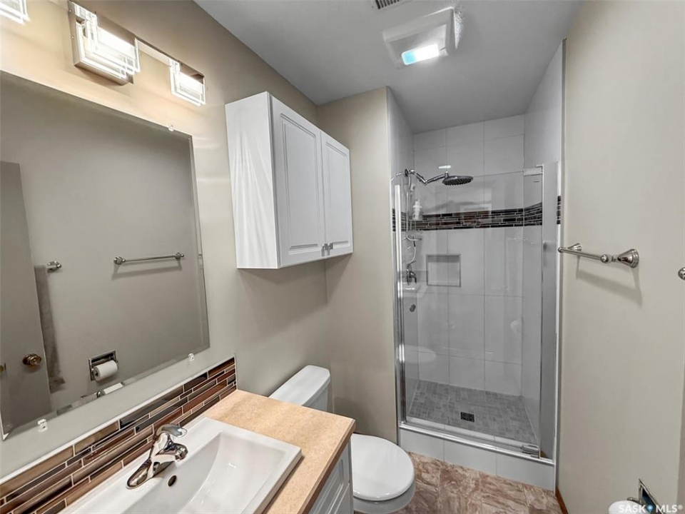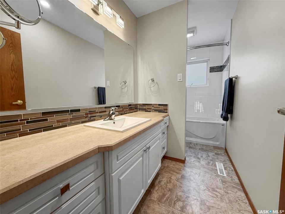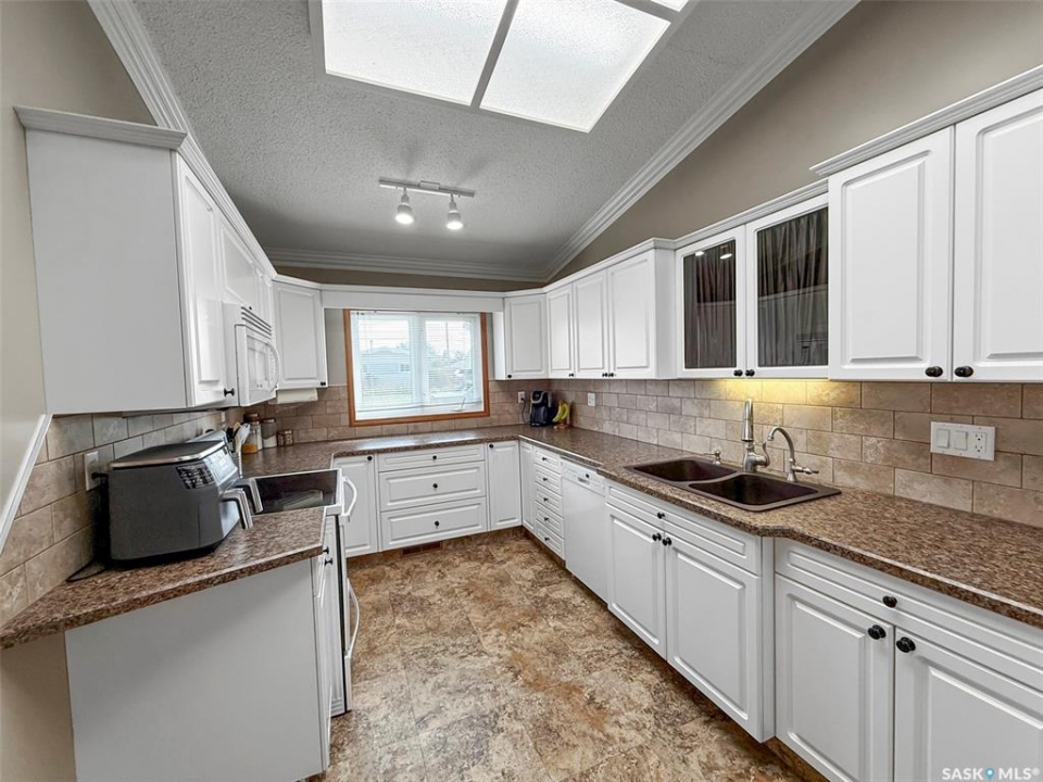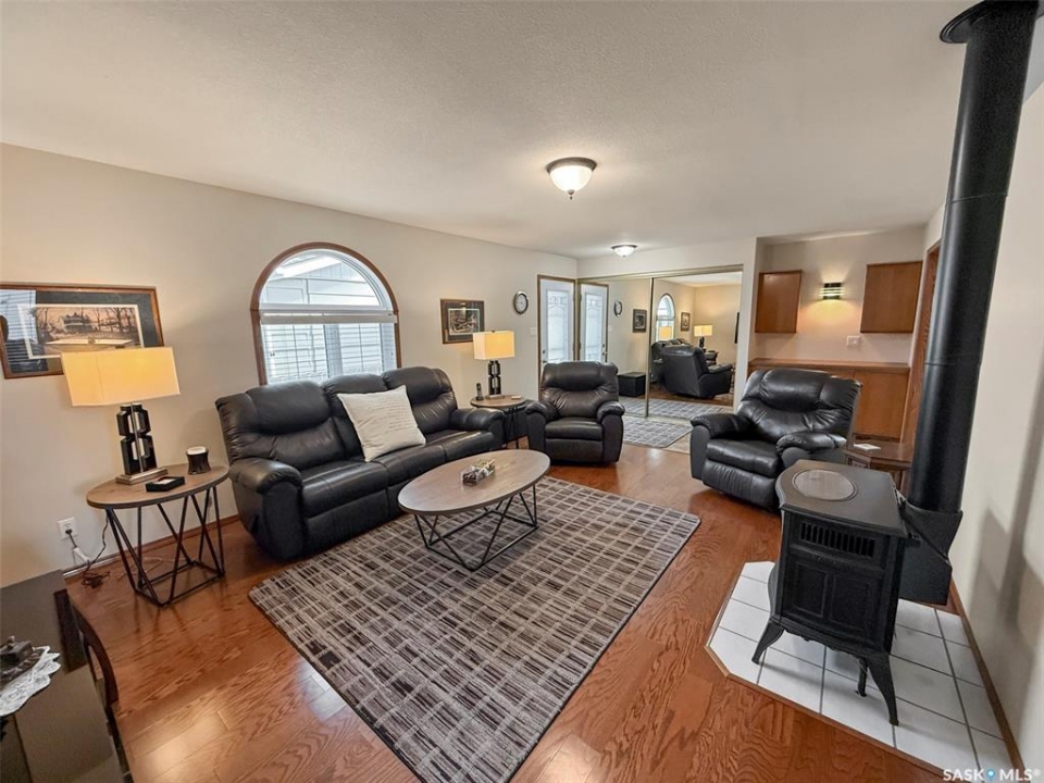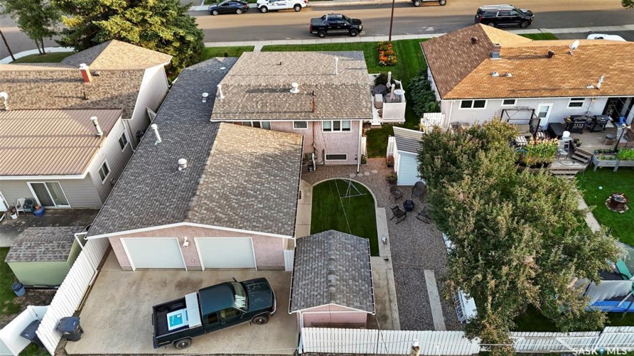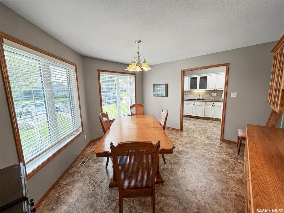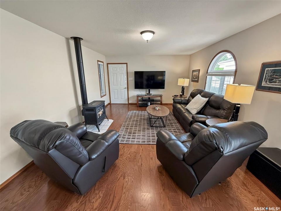 This pristine 3-level split offers move-in-ready comfort, thoughtful updates, and an unbeatable North Hill address—just steps from the Comprehensive High School, Irwin School, and minutes from Elmwood Golf Course. The main floor showcases a spacious family room with hardwood floors, a cozy gas stove, and direct access to the oversized 24' x 28' heated garage. The bright galley-style kitchen features vaulted ceilings, white cabinetry, and abundant prep space, while the adjoining dining area is enhanced by oak built-ins and sun-soaked south-facing windows. A second living room with vaulted ceilings, hardwood, and garden doors leads to the west-facing deck—perfect for evening relaxation. Up a few steps are two comfortable bedrooms, including the primary, alongside a stylishly updated 4-piece bathroom. The lower level is a pleasant surprise, featuring large PVC windows that brighten the additional bedroom, a recently redone 3-piece bathroom, an office/laundry area, and a crawlspace offering exceptional storage. Updates include: stucco exterior, PVC windows, shingles (2012), energy-efficient furnace (2021), water softener (2021), and hot water heater (2023). Outside, the home is just as immaculate, with RV parking at the rear and a beautifully maintained yard. With its combination of quality updates, spotless condition, and sought-after North Hill location, this home truly delivers the best of Swift Current living.