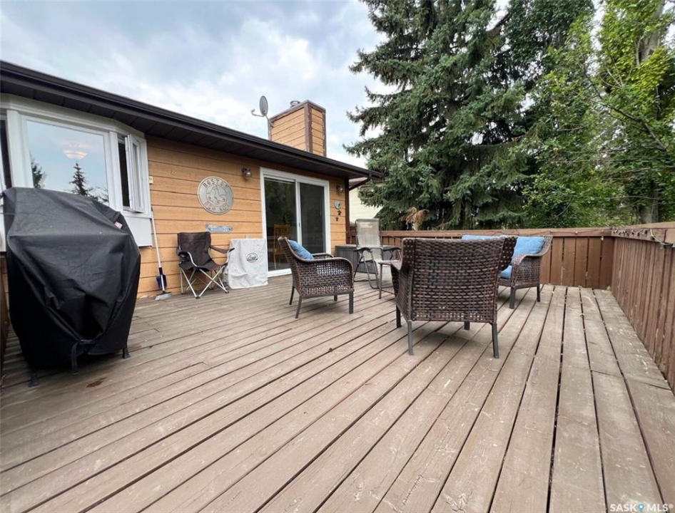 Outdoor: Deck, Fenced, Lawn Back, Lawn Front, Trees/shrubs