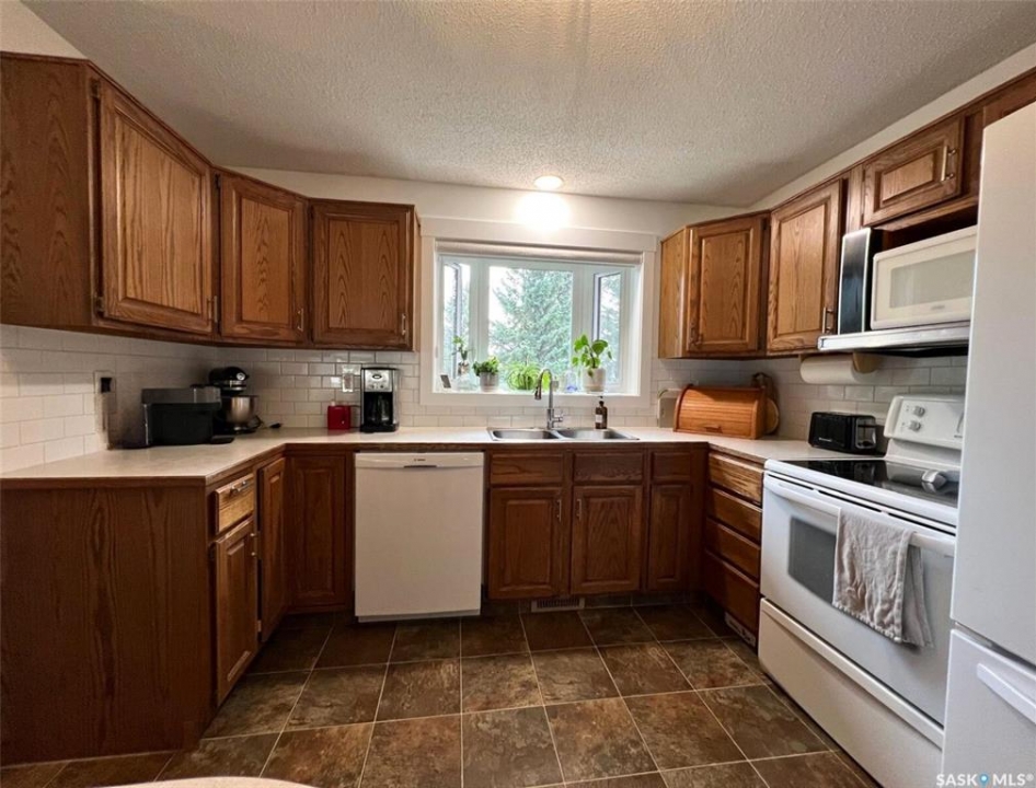 Tucked away on a quiet cul-de-sac, this inviting bi-level home presents classic brick & wood exterior along with tidy landscaping, creating great curb appeal. The attached double garage & extra driveway space provide ample parking, while the property backs onto open green space & park for added privacy & enjoyment. Inside, the main level welcomes you with a bright, spacious living room featuring hardwood floors, airy, white walls, & a large bay window, seamlessly connected to the dining area & kitchen. The dining room offers new patio doors leading to the back deck, while the kitchen hosts a sit-up island, modern subway-tile backsplash, automatic Hunter Douglas blinds, & a cozy bay window with sink overlooking the yard. The main floor hosts three bedrooms, including a large primary bedroom with double vertical windows & comfortable space for a king-size bed as well as & a private 3-piece ensuite. A spacious 4-piece bathroom, hallway pantry, and linen storage complete this level. All windows have been recently updated, adding to the clean, well-maintained feel. The fully finished lower level hosts above-ground windows & is designed for comfort, entertaining and functionality. The expansive family room features a cozy fireplace with built-ins, wet bar, games area & TV space. Two additional bedrooms include a generous one with laminate flooring, and there's a 3-piece bath, laundry room with extra pantry storage, & under-stair storage. Utility highlights include a high-efficiency furnace, water heater (2023), central vac, central air, & plenty of storage. The fenced backyard (new fence in 2021) offers a quiet retreat, while recent updates like the garage door (2021) add peace of mind. This home is the perfect blend of comfort, function, and location—move-in ready for its next owners. Call for more info or to book your own personal showing!