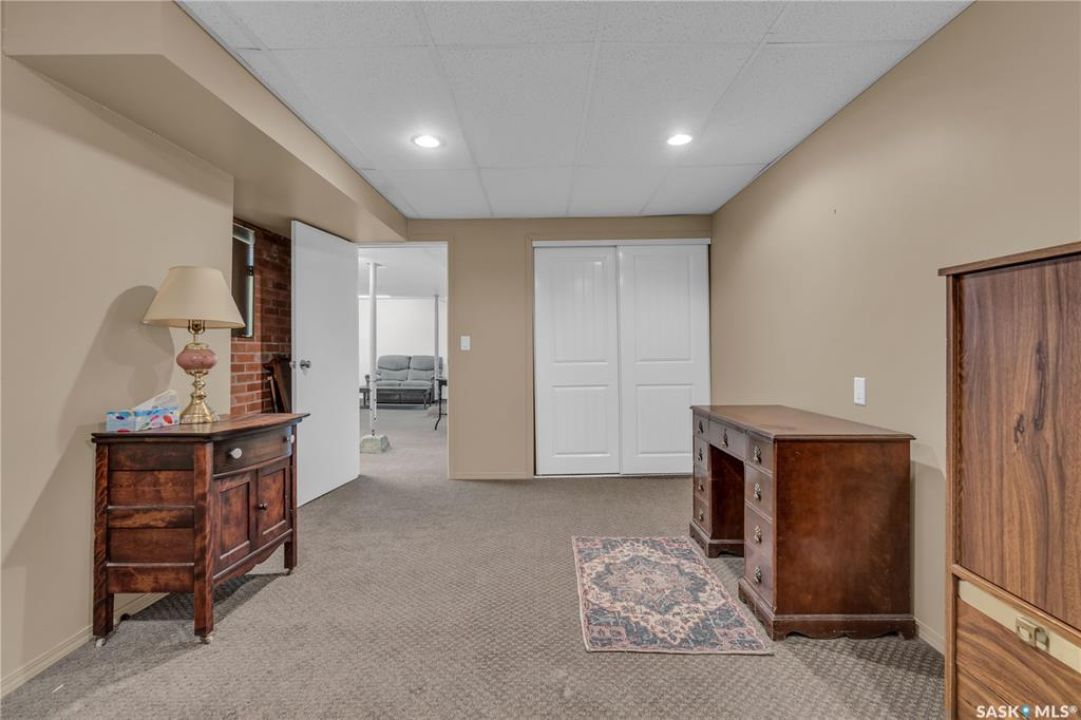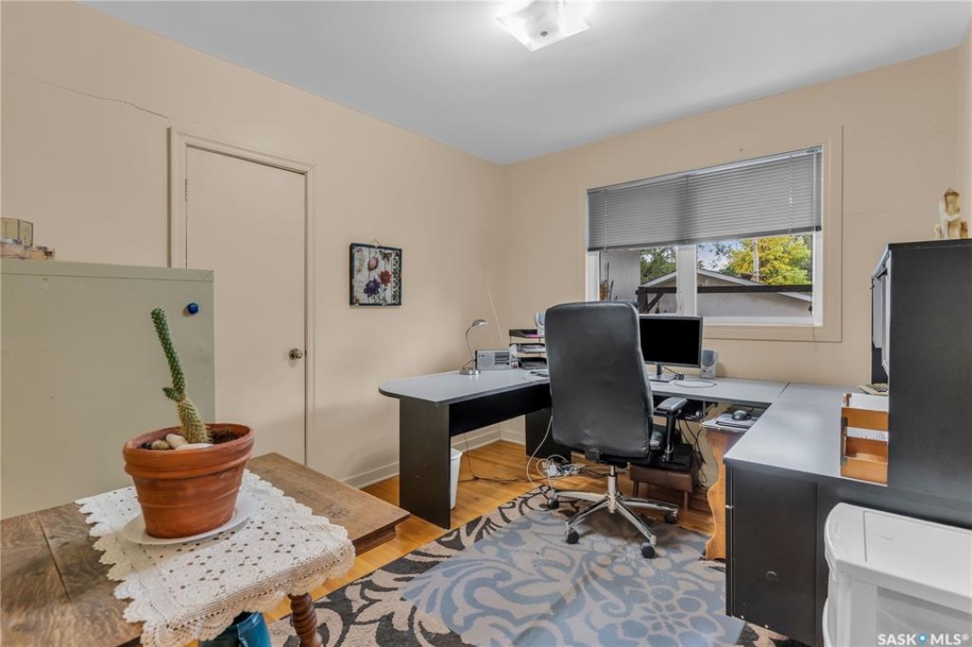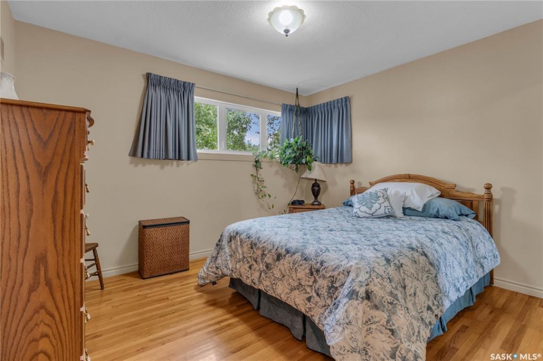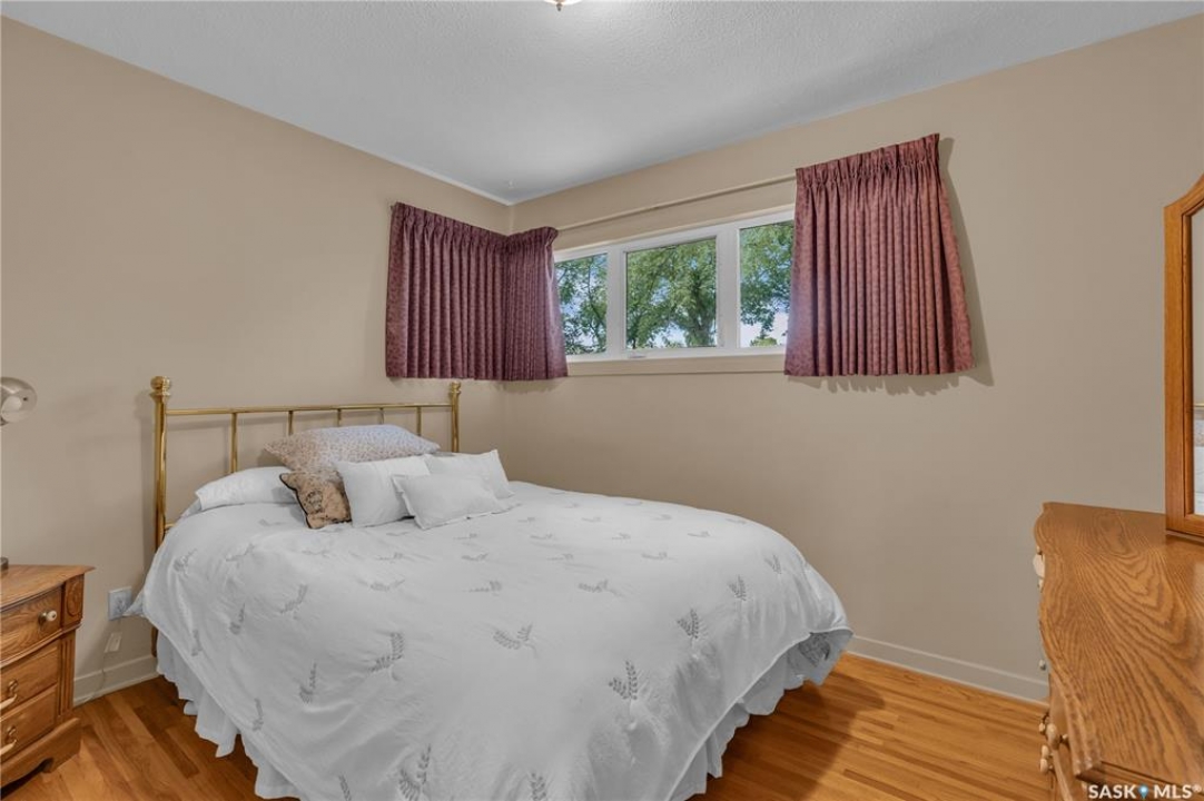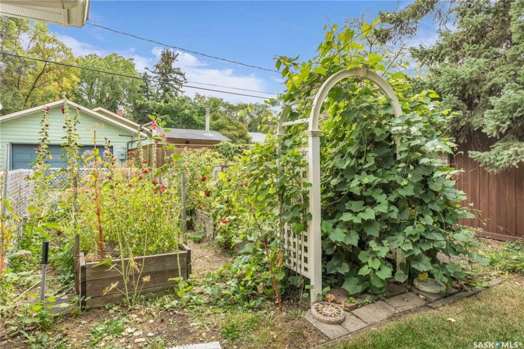 This 1,135 sq ft bungalow offers totally functional space in one of Regina's most sought-after neighbourhoods. Step inside and you're welcomed by the bright living room, featuring original hardwood flooring, a large picture window for plenty of natural light, and a cozy gas fireplace for winter evenings. The home also boasts a ginormous kitchen—complete with quartz countertops, mint-condition oak cabinetry, and enough space for a full-sized dining table. Rounding out the main floor are three spacious bedrooms (two with charming corner windows), the original hardwood carried throughout, a 4-piece bath, and a convenient mudroom leading to the backyard. The fully developed basement extends your living space with a huge rec room, a cozy nook perfect for hobbies or a reading area, a 5-piece bathroom, a den, plus a laundry/utility room with additional storage. Notable upgrades and features include: a brand-new air conditioner, underground sprinklers, hi-efficient furnace, and an upgraded sewer line. Outside, the backyard is full of character with a deck, adorable wooden pathways, a lawn, garden space, and the whimsical “hundred-acre tree.” To top it off, the oversized 32x24 double garage is a rare find—perfect for the handyman or DIYer. Don't miss this opportunity to own a home full of charm and character in a gorgeous Lakeview location!