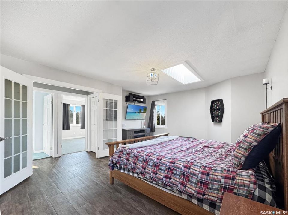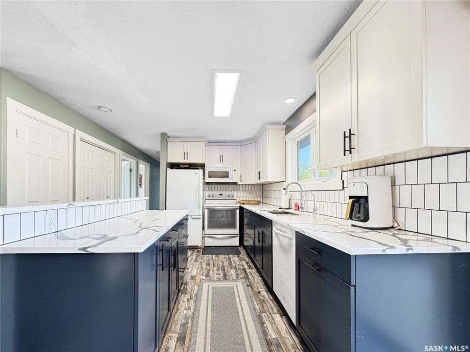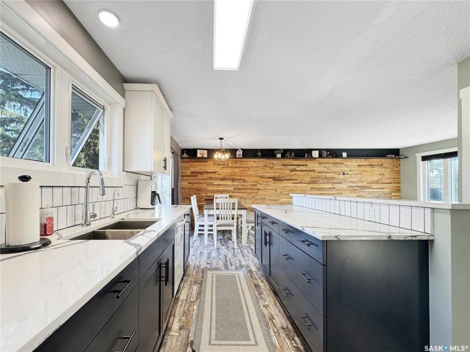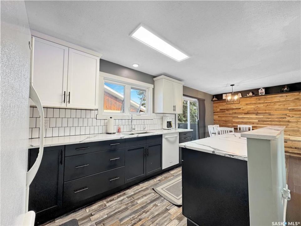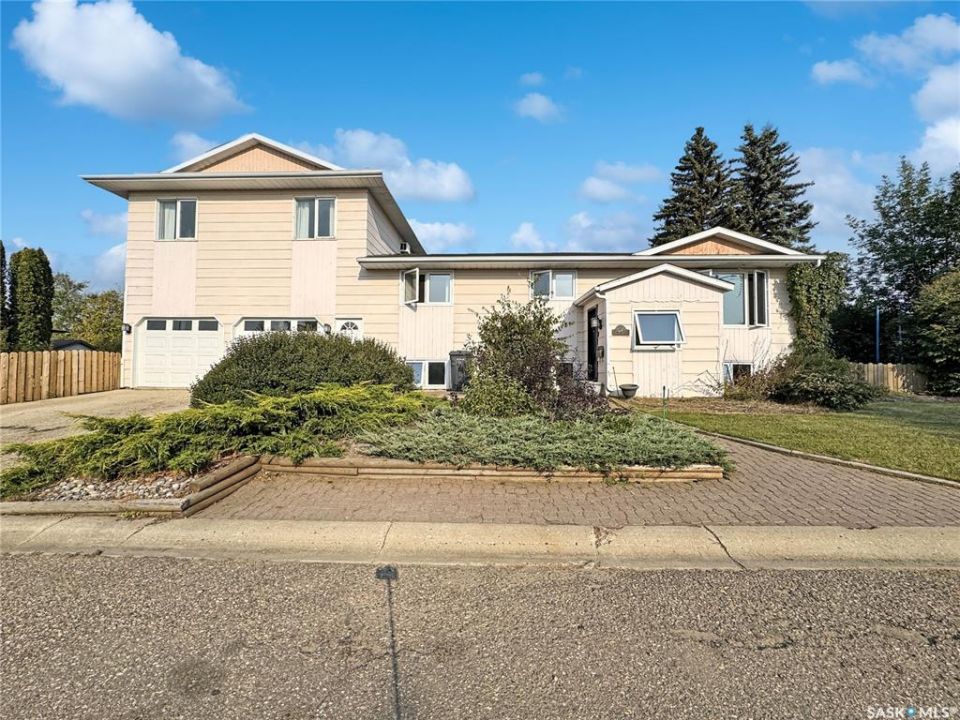 Welcome to this large family home perfectly situated on a desirable corner lot in the beautiful Centennial neighborhood. Originally built in 1979, with additional living quarters added in 1991, this home offers plenty of room for your family to grow and enjoy. Step inside to a welcoming foyer with heated floors that lead into the open-concept kitchen, dining, and living room. The remodeled kitchen was completed in 2021 featuring quartz countertops and tiled backsplash. With the kitchen open to the dining area, your space is fully extended with beautiful garden doors to your private back deck, perfect for entertaining. Main floor offers a unique flex space for potentially an office, playroom, or even a cozy reading nook. Main floor laundry with an abundance of storage space adds everyday convenience. This floor is completed with a fully remodelled main bathroom and a bedroom. Upstairs, the huge master bedroom is a true retreat, greeted with french doors, a walk-in closet and a three-piece en suite with a skylight flooding the space with natural light. Two additional spacious bedrooms complete this level. The basement is designed for family fun with two large recreation/living areas and a handy kitchenette—great for hosting gatherings. Direct access to the double attached garage (insulated and drywalled) adds practicality. More recent updates include the lower-level shingles (2024), windows lower side of home and front door (2021) fresh paint and some flooring. This location can't be beat! Just steps across the road, you'll find green space and a playground, plus Centennial Park is a short walk away offering a track, natural playground, splash pad, skate park, and outdoor rink. If you're looking for a spacious, well-kept family home in a sought-after neighborhood—this is the one! Call today for your own exclusive tour!