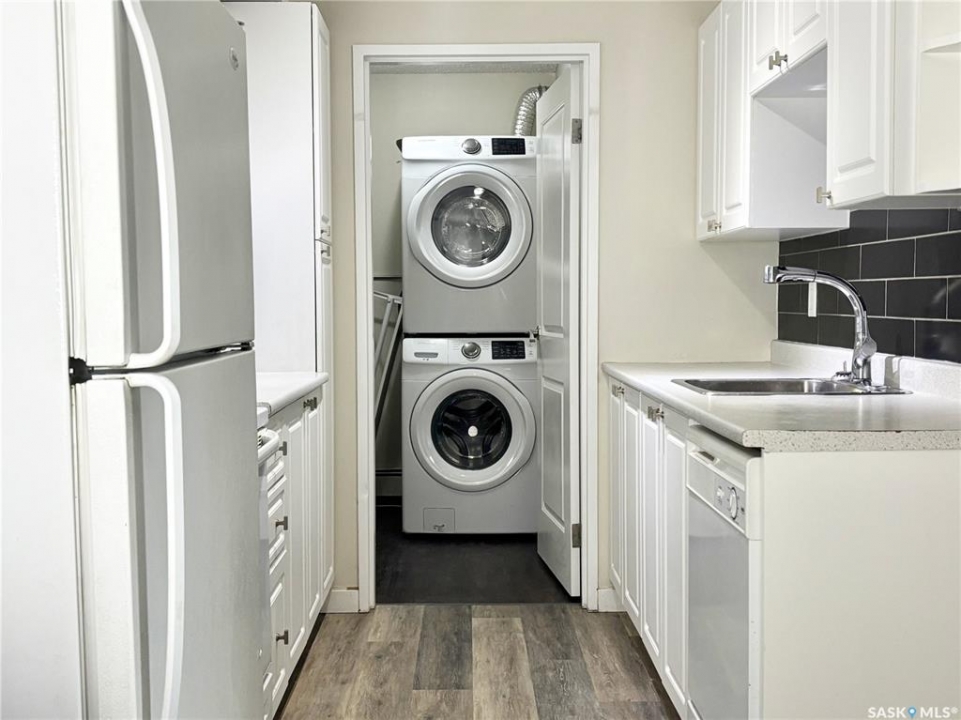 Affordable East Side Living at Its Best! Welcome to this beautifully maintained ground-floor, 2-bedroom, 1-bathroom condo in the highly sought-after Lakeview neighborhood. Step inside to a bright, open-concept living space featuring stylish vinyl plank flooring. The kitchen boasts a sleek tile backsplash and plenty of storage—ideal for cooking and entertaining. Enjoy the convenience of in-unit laundry, making daily living a breeze. This ground-floor unit opens directly to an inviting green space with a patio-style deck, perfect for relaxing outdoors. A dedicated electrified parking stall adds even more ease to your lifestyle. Situated close to public transit, schools, parks, and all essential amenities, this condo truly has it all. Combining comfort, convenience, and modern style, this home is perfect for first-time buyers, young professionals, or anyone looking to enjoy the vibrant community vibe. Don't miss your chance to own a piece of Lakeview—schedule your showing today!