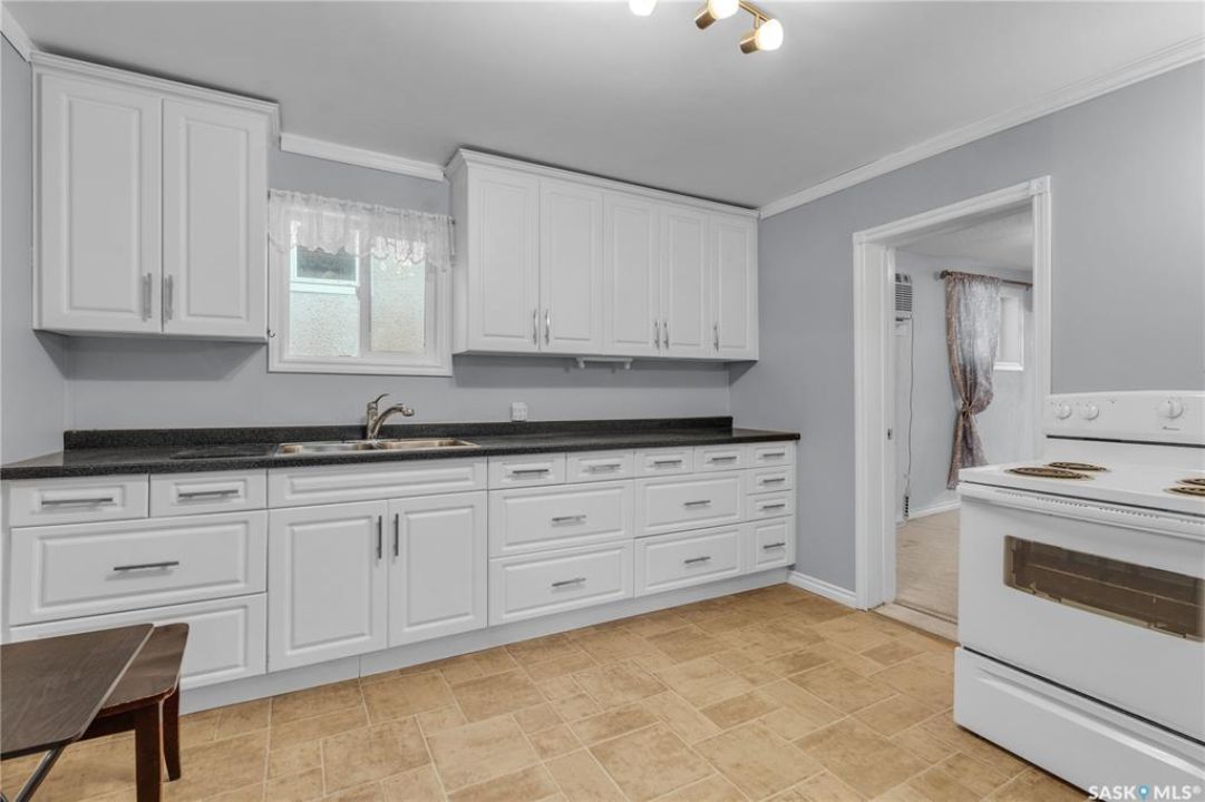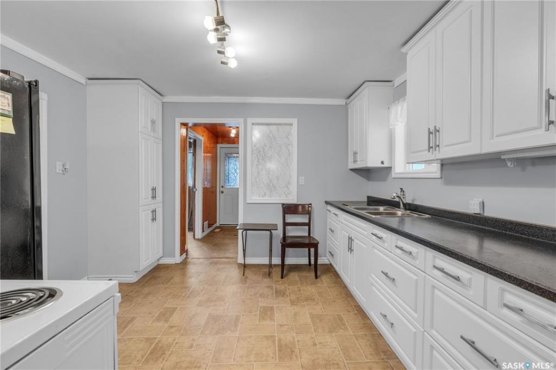 Excellent starter home or revenue property in the Al Ritchie/Broders Annex Neighbourhood. Steps away from schools, the Al Ritchie arena and playground. Neat and clean 3 bedroom bungalow features a bright open living room and dining area. The upgraded modern kitchen whas tons of cabinet space and pull out pot drawers. 3 good sized bedrooms and 2 full bathrooms! House is in a partial crawl space with two access points. Private backyard with patio area and single detached garage. Don't miss out on this great home!