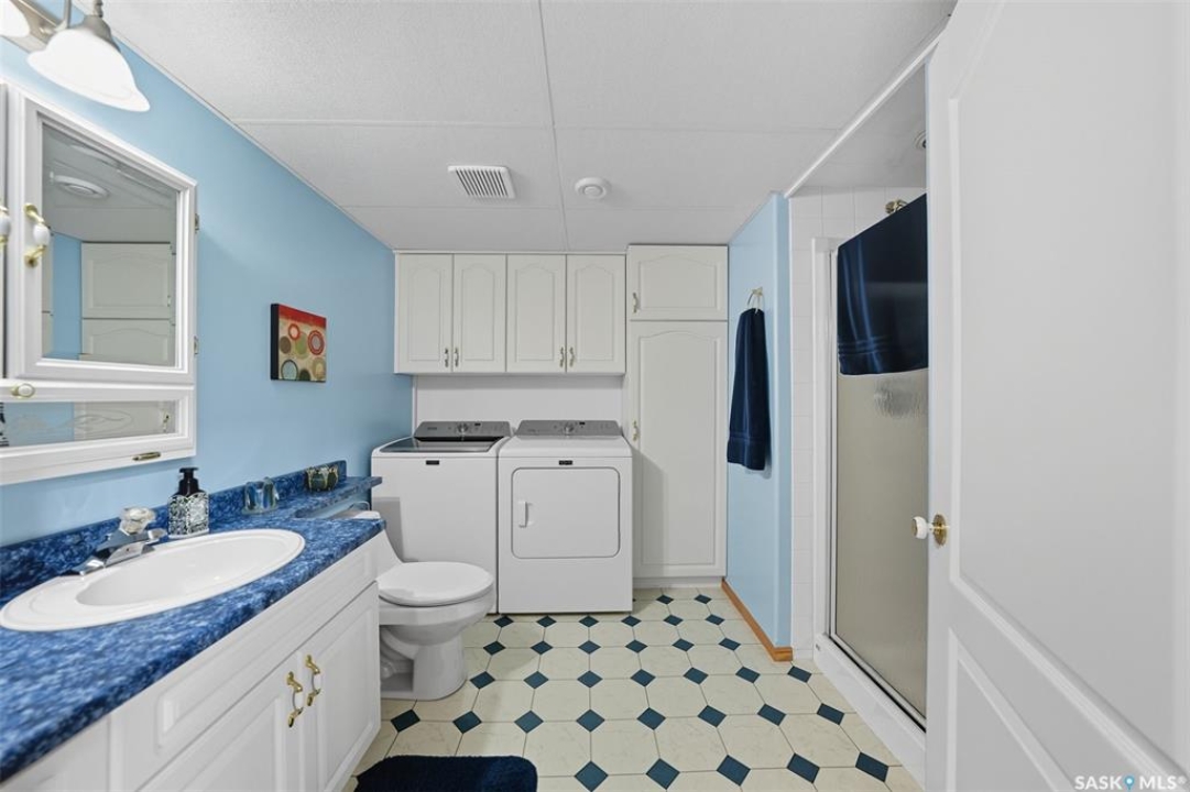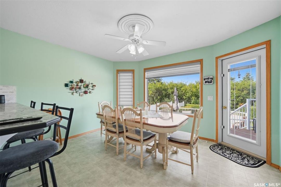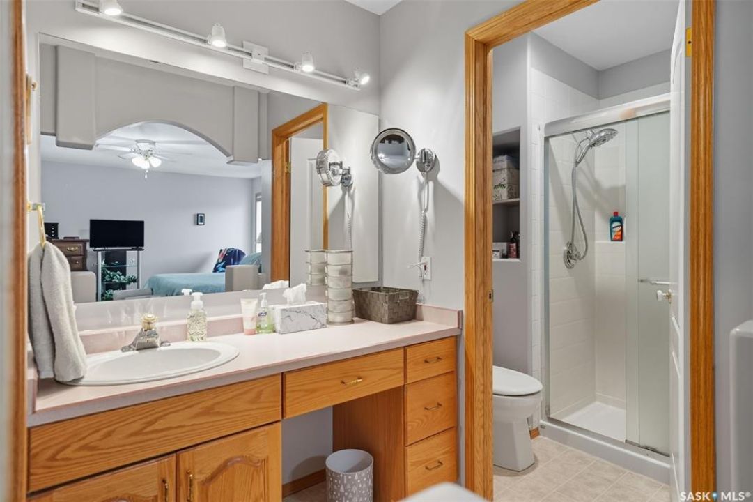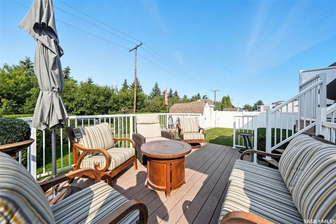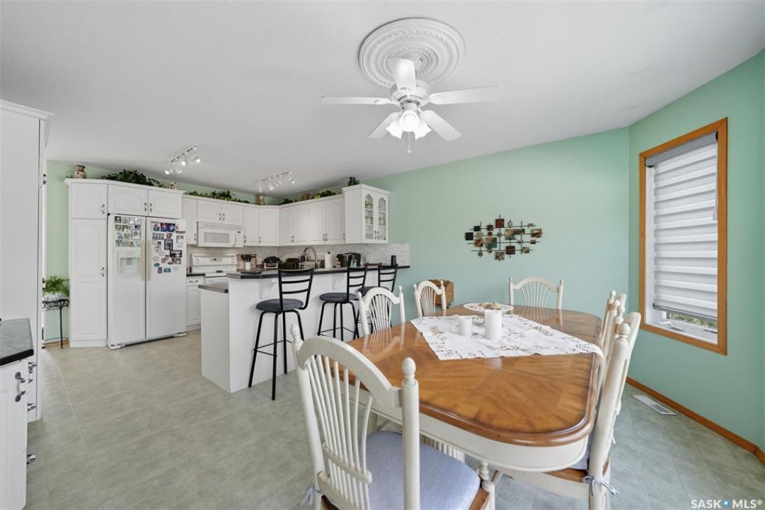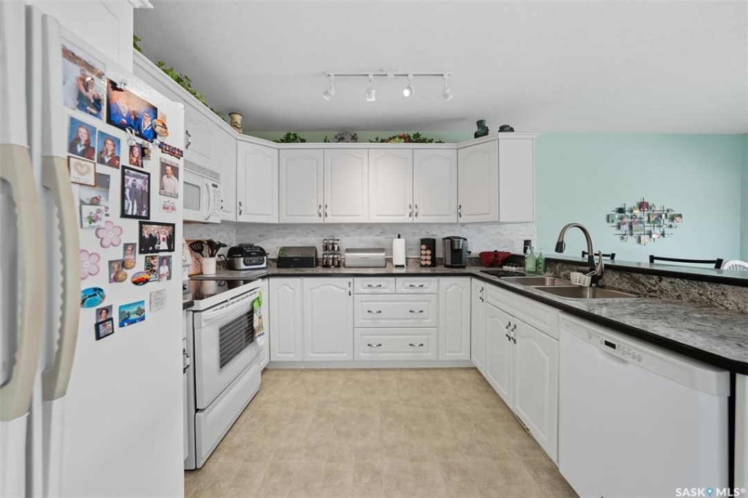 Welcome to this immaculate bi-level home, perfectly situated in a highly desirable neighborhood near the Uniplex, and a variety of amenities. Backing a peaceful tree line with open prairie views, this property offers a rare combination of privacy and convenience. Step into a bright and inviting main level, where soaring ceilings and floor-to-ceiling windows in the front foyer and living room create an impressive sense of space. Decorative niches and ledges add character and style as you move into the heart of the home. The well-designed kitchen features an abundance of white cabinetry, seamlessly connected to the dining area with access to a maintenance-free, two-tiered deck—perfect for entertaining or simply enjoying the outdoors. The main floor is complete with a luxurious primary bedroom with a 3-piece ensuite, an additional bedroom, and a 4-piece bathroom. The lower level continues to impress with a stunning decorative glass feature overlooking the main living room, a spacious family room with a cozy natural gas fireplace, two additional bedrooms (including one with a walk-in closet), and a 3-piece bath/laundry room with plenty of built-in cabinetry. Car enthusiasts and hobbyists will love the garage, outfitted with cabinets and Handiwall slatwall systems for exceptional organization. Outside, the beautifully landscaped yard showcases mature trees, shrubs, hedges, flower beds, fire pit area, storage shed, and a fully fenced design that backs onto green space. This property truly shines inside and out—showing 10/10 with pride of ownership throughout!
