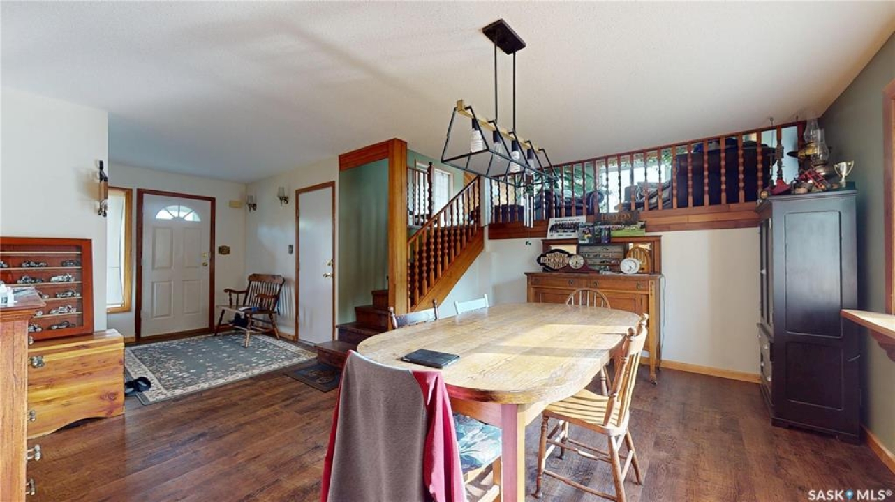 Welcome to your own private oasis just 5 minutes from Regina's southwest corner. This incredible 12.75-acre property combines the peace and privacy of acreage living with the convenience of city amenities — the best of both worlds. Originally built in 1960 and thoughtfully expanded in 1977, this spacious home offers plenty of room for family and entertaining. The addition includes a double attached garage with direct entry and a stunning living room above, creating a warm and inviting space to relax. Recent updates make this home move-in ready: • High-efficiency furnace • PVC windows • Durable tin roof • Modern vinyl plank flooring The finished, heated double garage is perfect for keeping vehicles warm in winter or doubling as a workshop. Step outside and enjoy everything this mature property with plenty of trees has to offer. Whether you're an outdoor enthusiast, hobby farmer, or nature lover, this land has something for everyone: • Orchard with Saskatoons, cherries, sea buckthorn, and buffalo berry • Three ponds, including the largest in the area — approx. 66,000 cubic meters and nearly 40 feet deep • Smaller ponds connected by a culvert system, fed from the main pond, rain, or spring runoff • 50' x 38' Quonset with a 10-foot heated woodworking shop • Single detached garage (14' x 22') • 80-foot well for reliable water • Septic system with an additional lagoon This property is truly one of a kind — a private, serene escape just minutes from the city. Imagine summer evenings by the pond, picking fruit from your own orchard, and enjoying space and freedom while still being close to schools, shopping, and everything Regina has to offer. Whether you're looking for a quiet retreat, a place to grow your hobbies, or an outdoor playground for the whole family, this acreage delivers it all. This is more than a home — it's a lifestyle. Don't miss your chance to make this 12.75-acre paradise yours.