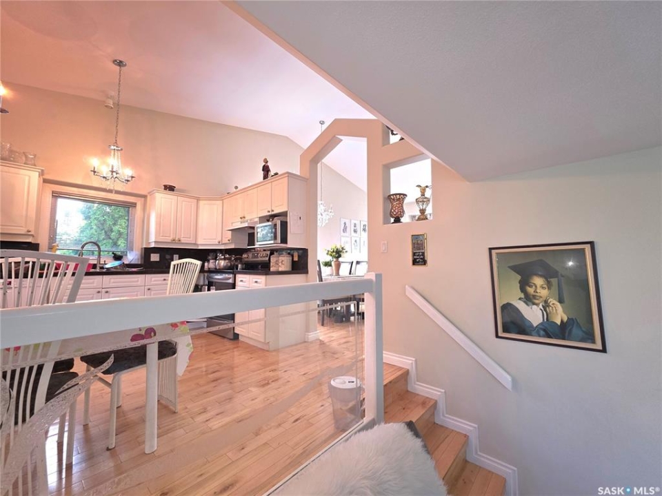 2-storey split located in Briarwood. This home features vaulted ceilings over the kitchen, dining room, and living room, as well as a large family room with a gas fireplace, a main floor den, and laundry. The large basement games room, with a vast storage area, provides ample space for your needs, ensuring a sense of security and organization—hardwood flooring throughout the main and upper levels. Enjoy the outdoors with this beautiful covered deck, featuring a newer furnace, water heater, and kitchen appliances.