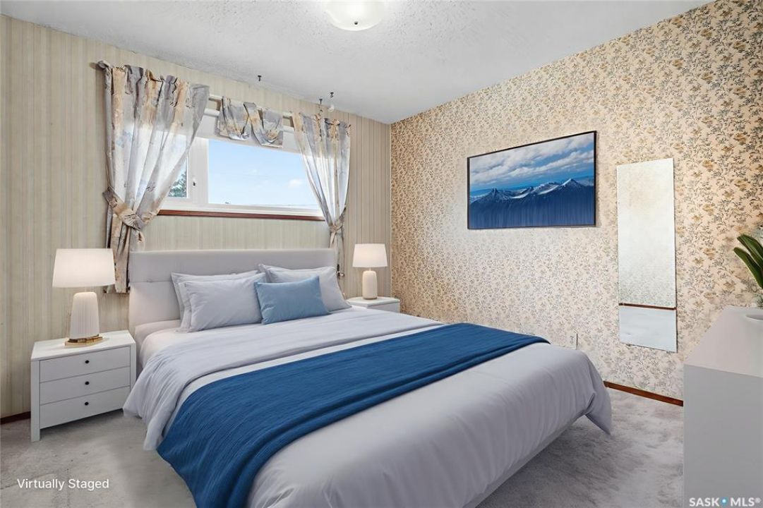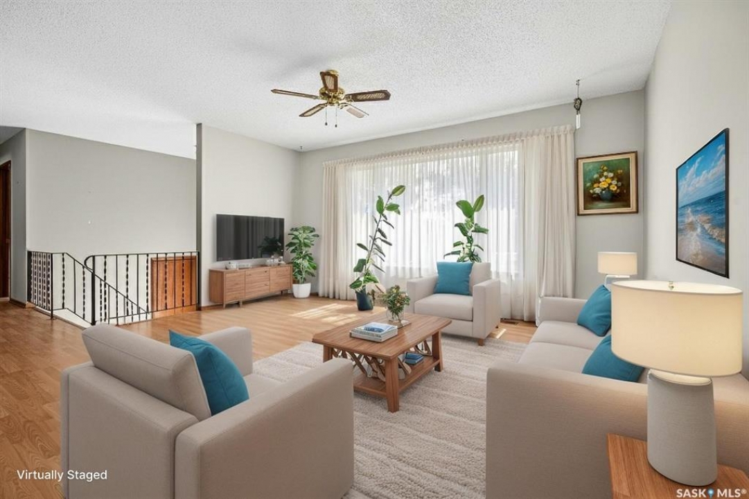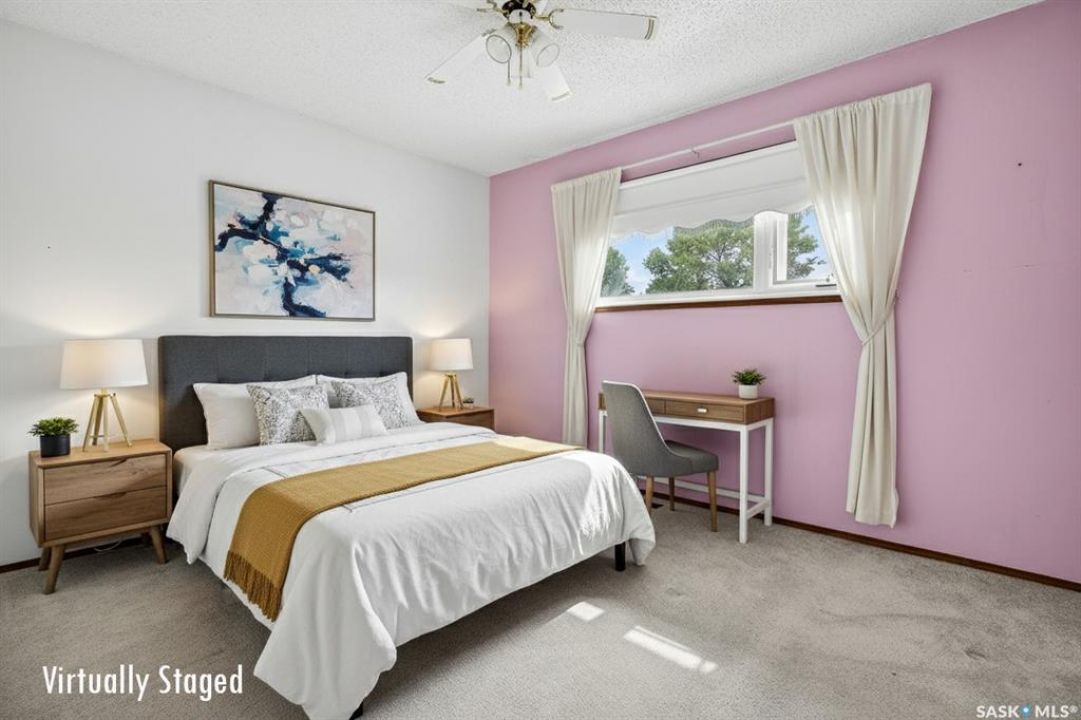 This well-cared-for 1970s bi-level has been lovingly maintained by the same owner since it was built – a rare find that truly showcases pride of ownership inside and out. Featuring updated triple-pane PVC windows, fiberglass shingles, and durable vinyl siding with aluminum soffit, fascia, and troughing, this home offers peace of mind with quality upgrades already in place. The driveway is finished with recycled rubber, adding both function and curb appeal. Step inside to a bright living room, a functional kitchen with linoleum flooring (appliances included), and a dining area that leads to the enclosed sun room for added living space perfect for entertaining or relaxing while overlooking the landscaped backyard. The main level includes two comfortable bedrooms with carpet and a four-piece bathroom featuring a Bathfitter tub, storage closet, and lino. Downstairs you'll find a spacious family room with wood wall paneling, built-in bar shelving, and an additional three-piece bathroom with a stand-up shower. A third bedroom, large laundry room with soft water system, complete the lower level. Outside, the backyard offers both green space and privacy with PVC and wood fencing. The single garage (27.5 x 18) provides room for parking plus a work area, and includes an automatic garage door opener. Additional features include: • Central air conditioning • Composite deck & covered sunroom area • Updated triple-pane PVC windows throughout • Pride of ownership – one owner since new! If you're looking for a home that has been carefully maintained and thoughtfully updated by the original owner, this property is ready to welcome its next chapter. *please not some photos are digitally staged and ultered.