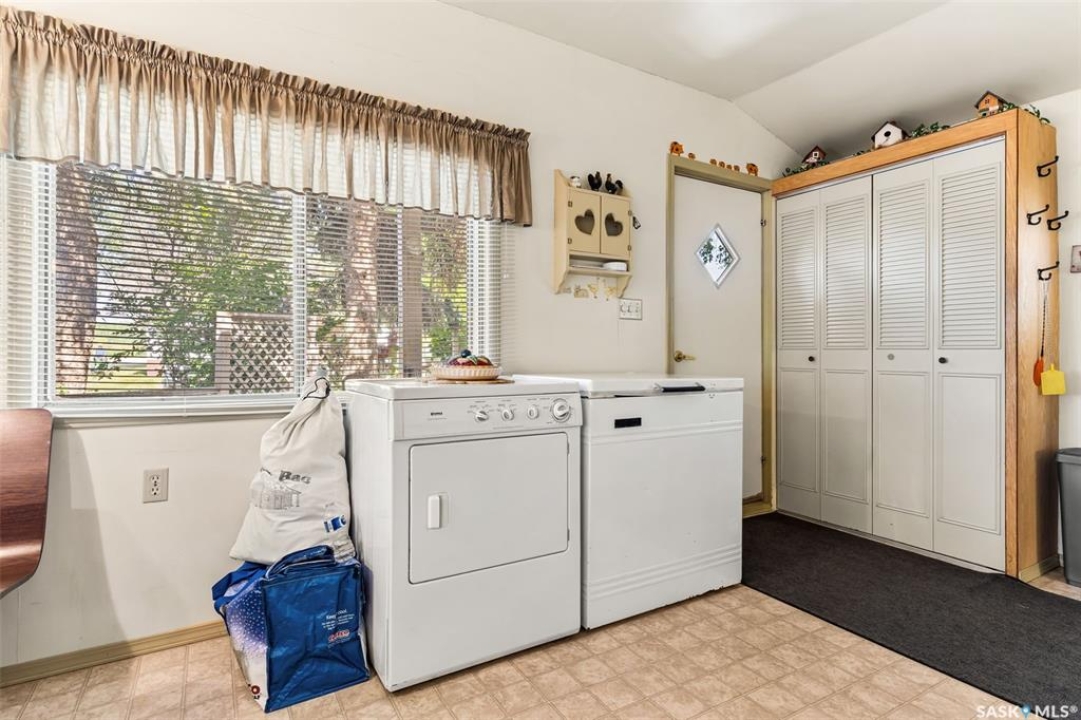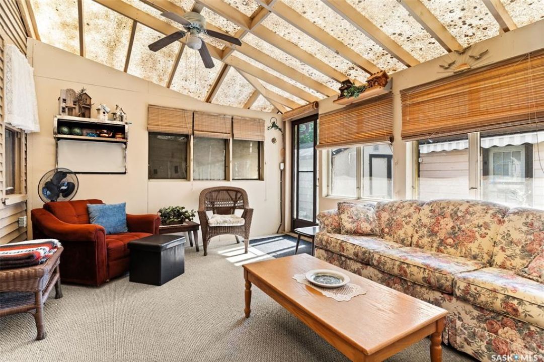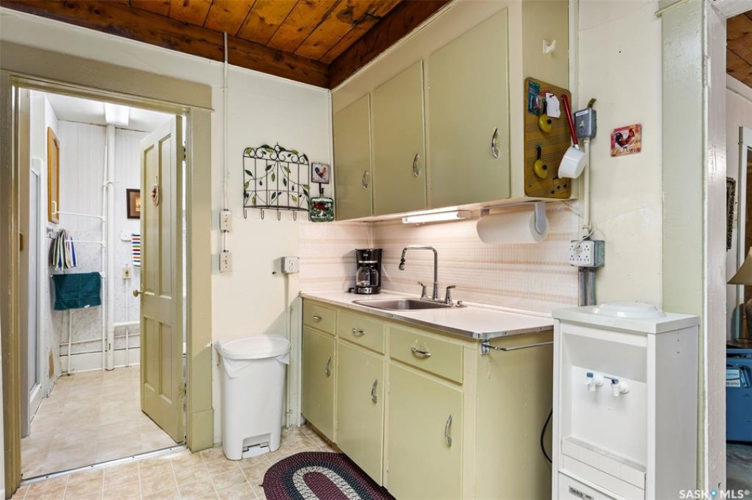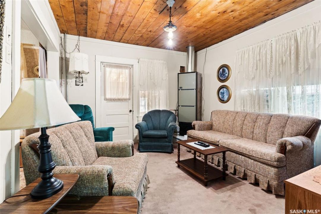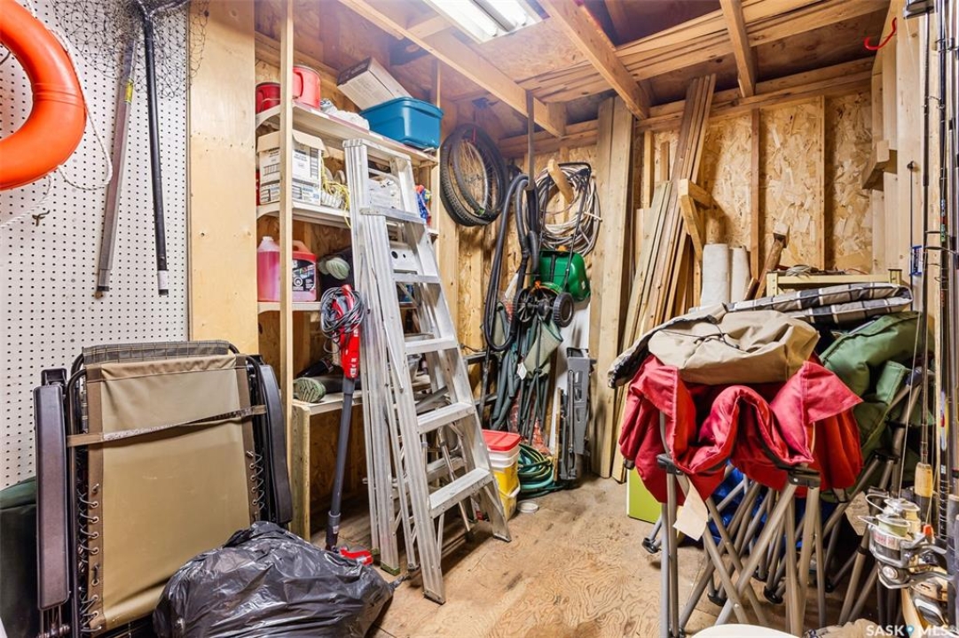 Welcome to your seasonal retreat at Etters Beach on Last Mountain Lake! Cherished by the same family for 31 wonderful years, this cottage is ready for new owners to create their own lasting lake memories. Perfectly positioned on a beautiful corner lot, the property offers privacy with mature trees and shrubs, a partially fenced yard, and thoughtfully designed outdoor spaces. Picture summer evenings around the firepit, afternoons on the patio under the power awning, or weekend gatherings in the detached garage—currently set up as a lively space for game days and entertaining. Multiple sheds provide room for wood, tools, and all your lake toys. Step inside and you'll feel instantly welcomed. The spacious dining area with built-in benches is made for family meals and card games after a day at the beach. The functional kitchen is fully equipped for everything from quick lakeside lunches to hearty family suppers. A cozy living room, main floor bedroom, den (ideal for guests), and a 3-pc bathroom ensure plenty of space for everyone. The 210 sq ft covered sunroom is a highlight—perfect for morning coffees, reading, or evening conversations. Upstairs, you'll find a generous second bedroom that easily fits two beds and makes for the ultimate kids' hangout loft. The cottage is on the community water system (May–October), has its own 600-gal septic tank, and is equipped with a propane furnace to extend your lake season into the fall. Best of all, the main beach and park are just a short walk away, so you can enjoy everything Last Mountain Lake has to offer—sun, sand, and endless fun. Offered fully furnished (yes, Weber BBQ included!), this cottage is truly turnkey and waiting for its next family to love it as much as the last. If you've been searching for a getaway on the north shore of Last Mountain Lake, this one is a must-see!