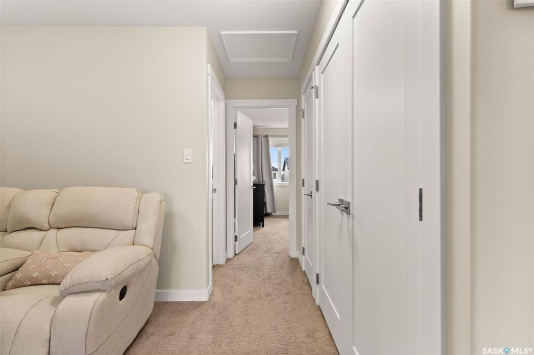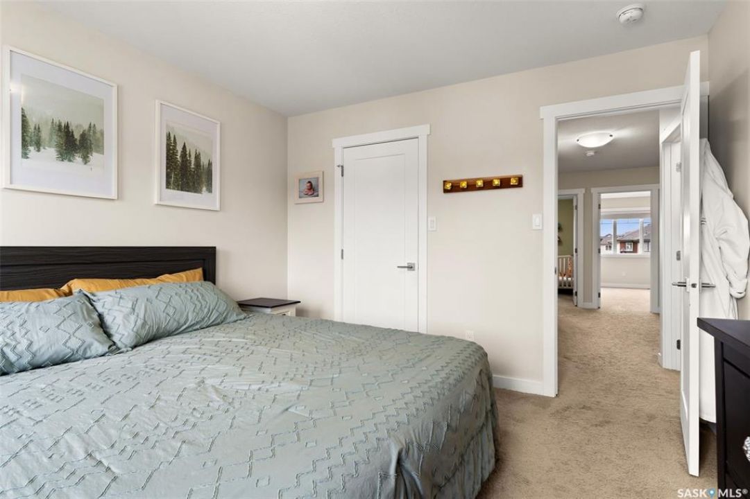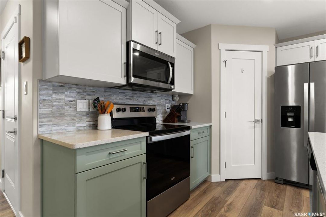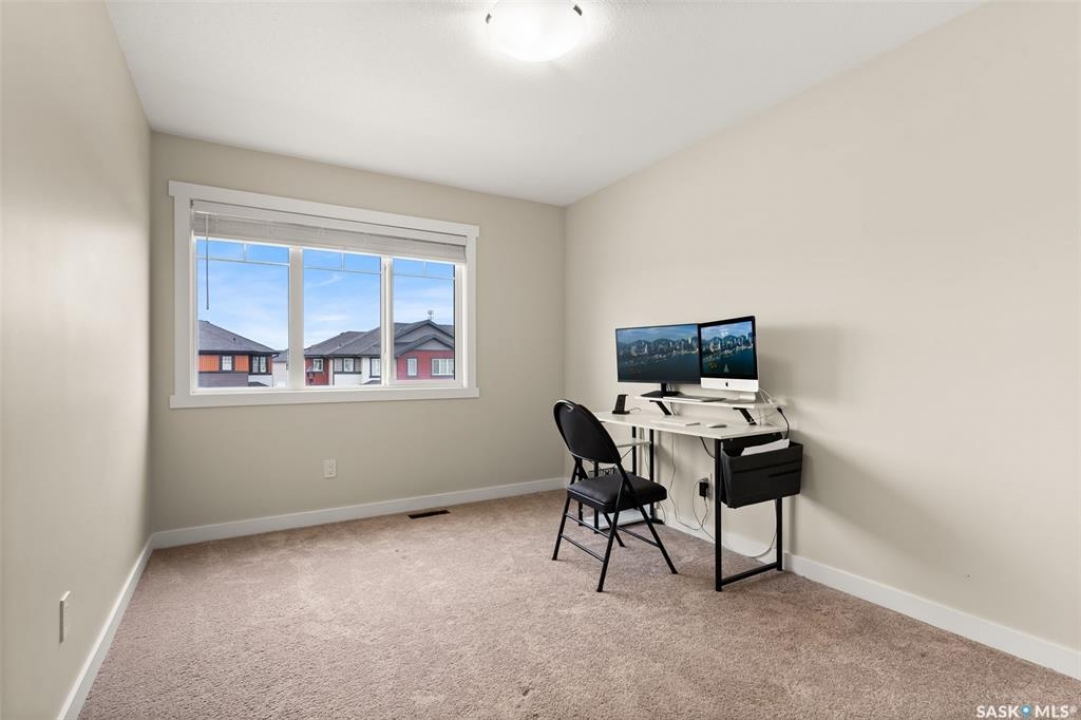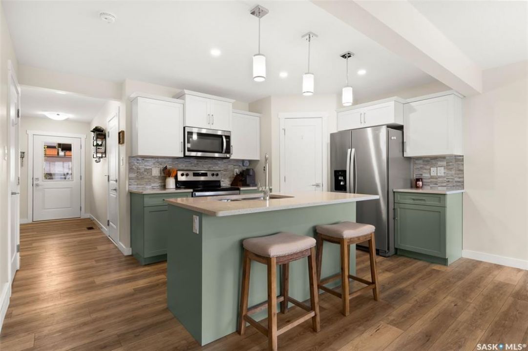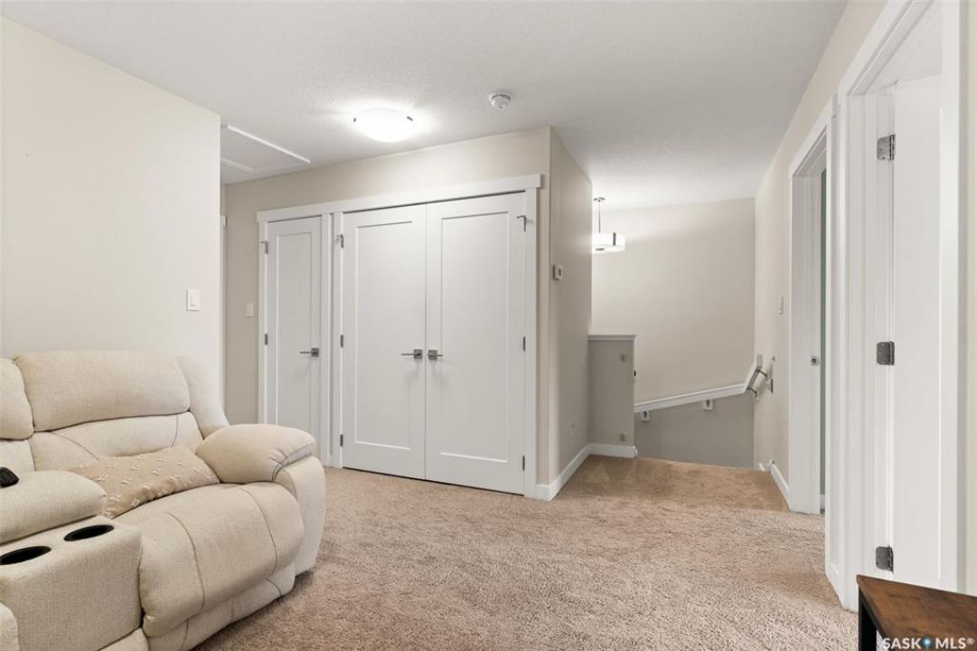Welcome to 4705 Mutrie Crescent E, a beautifully finished multi-level townhouse in the growing community of The Towns, Regina. Built in 2021, this home offers 1,428 sq. ft. of stylish living space designed for comfort and functionality. Step inside to a bright, open-concept main floor featuring vinyl plank flooring, recessed lighting, and large windows that flood the space with natural light. The inviting living room flows seamlessly into the dining area and a modern kitchen complete with quartz countertops, tile backsplash, stainless steel appliances, two-tone cabinetry, and a large island with seating — perfect for casual meals or entertaining. A convenient 2-piece bath completes this level. Upstairs, you'll find a spacious bonus room, a well-equipped laundry area, and three comfortable bedrooms. The primary suite includes a walk-in closet and private 4-piece ensuite, while two additional bedrooms share another full bath. Plush carpeting adds warmth and comfort throughout the second level. The lower level is open for future development, offering plenty of potential to create a rec room, home gym, or guest space. Outside, enjoy a fully fenced and landscaped backyard with the deck featuring a privacy wall for added comfort, with a private gazebo — perfect for summer evenings. The single attached garage and driveway provide secure parking and extra storage. With its modern design, low-maintenance lifestyle, and prime location near schools, parks, and east-end amenities, this home is ideal for families, professionals, or downsizers. Don't miss out, 4705 Mutrie Crescent E is waiting for you!