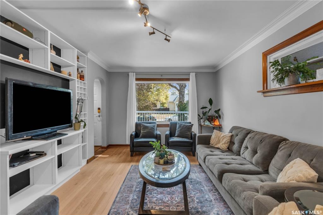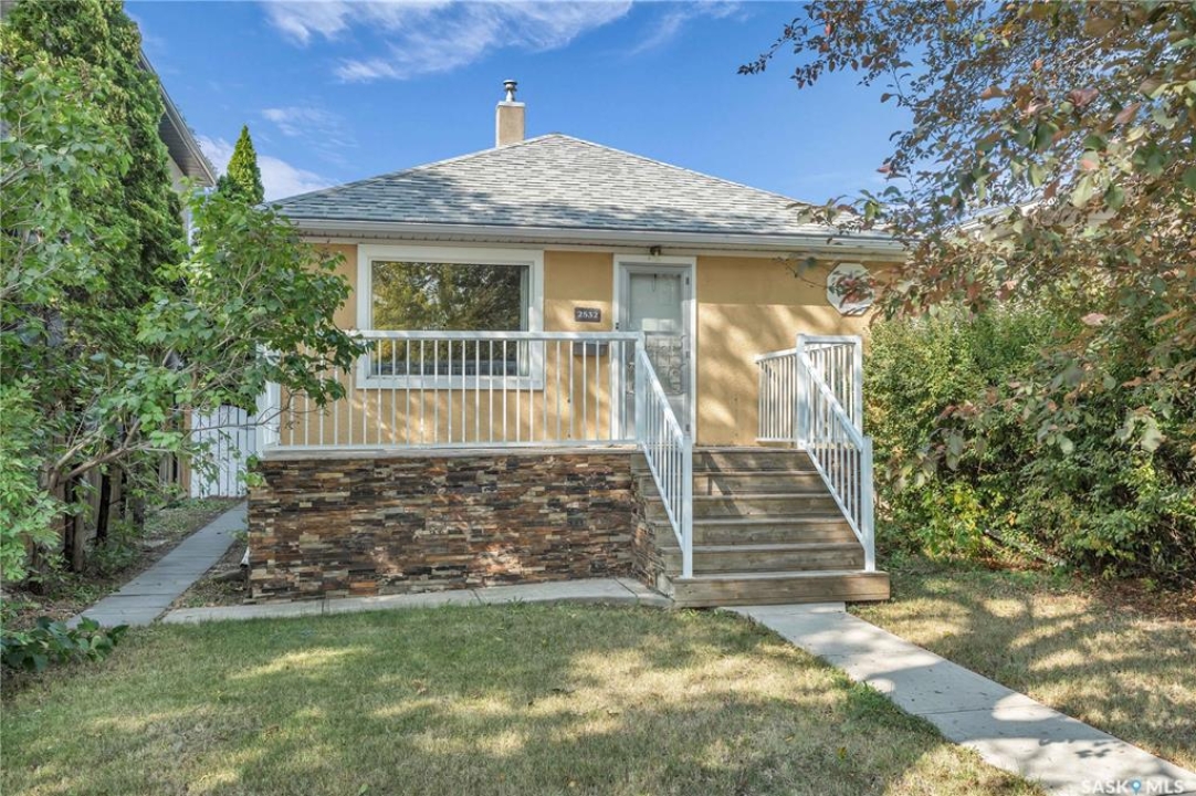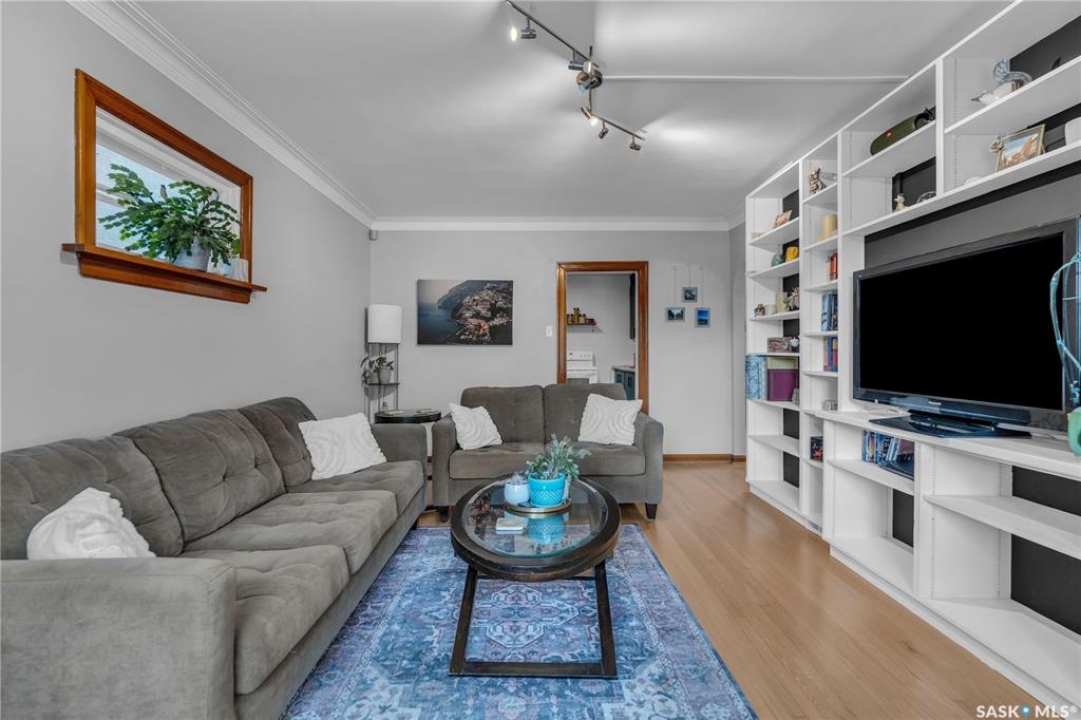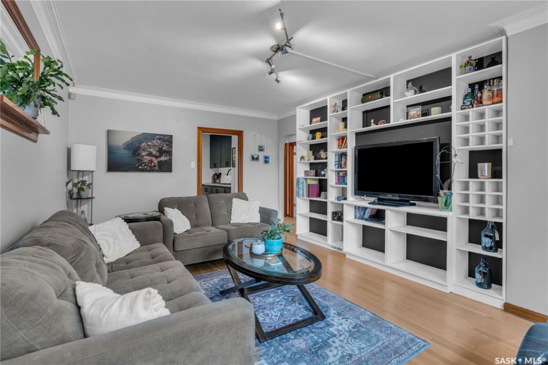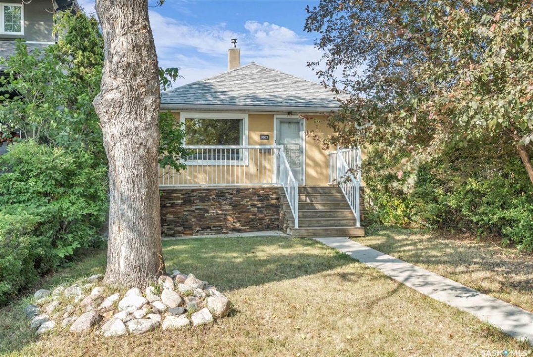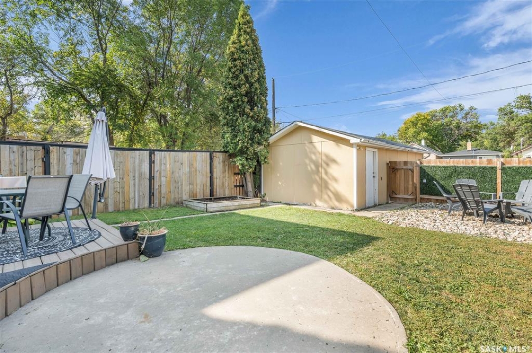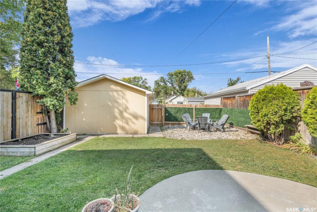 Welcome to 816 sq ft of charm and comfort in Regina's desirable Arnhem Place neighbourhood. Ideally situated just steps from Wascana Park, Candy Cane Park, elementary and high schools, and only minutes to downtown, this home offers the perfect blend of convenience and lifestyle. This bright and cheerful yellow bungalow offers fantastic curb appeal and thoughtful interior details. Inside, you're greeted by arched walkways and a spacious living room featuring large picture windows and built-in bookshelves surrounding the TV—perfect for cozy evenings or entertaining guests. The eat-in kitchen has been tastefully updated with striking forest green cabinetry and gold hardware creating a warm and stylish hub for the home. The original hardwood flooring runs throughout the living room and continues into two comfortable bedrooms and a renovated 4-piece bathroom nestled between them. The fully developed basement includes a third bedroom, a 3-piece bathroom, and a large rec room, offering excellent space for guests, hobbies, or family time. Step outside to enjoy the beautiful backyard, ideal for summer relaxation and gatherings. A single detached garage, accessible via the back alley, offers convenient parking along with additional parking space beside it. Don't miss your opportunity to own this well-maintained, character-filled home in one of Regina's most sought-after neighbourhoods!