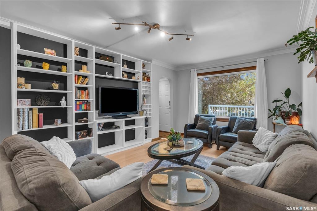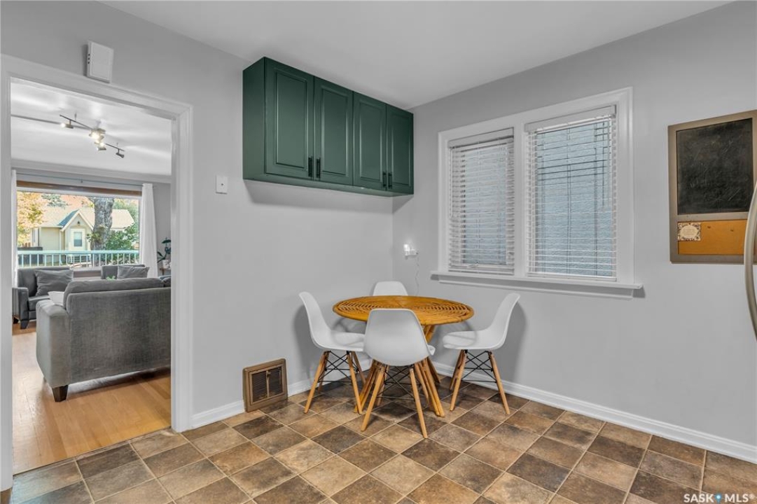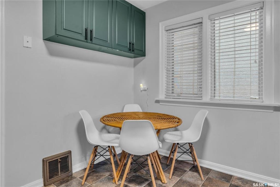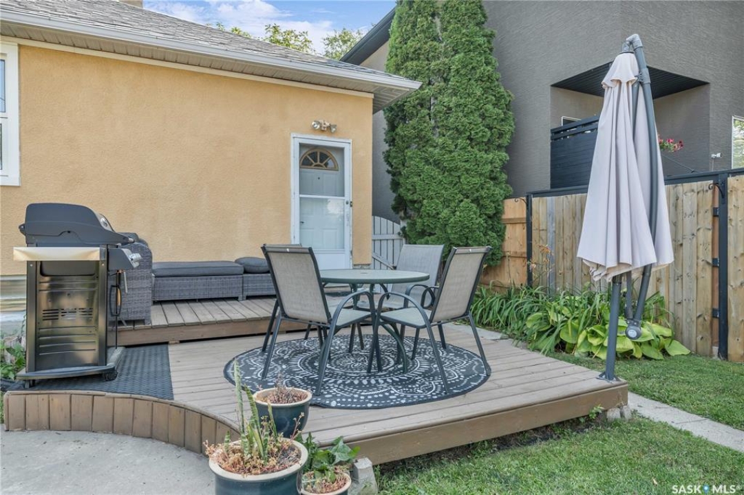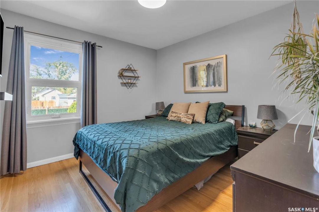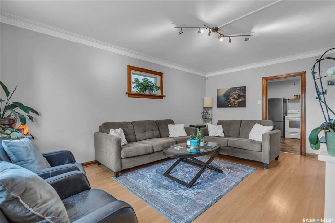 Welcome to 816 sq ft of charm and comfort in Regina's desirable Arnhem Place neighbourhood. Ideally situated just steps from Wascana Park, Candy Cane Park, elementary and high schools, and only minutes to downtown, this home offers the perfect blend of convenience and lifestyle. This bright and cheerful yellow bungalow offers fantastic curb appeal and thoughtful interior details. Inside, you're greeted by arched walkways and a spacious living room featuring large picture windows and built-in bookshelves surrounding the TV—perfect for cozy evenings or entertaining guests. The eat-in kitchen has been tastefully updated with striking forest green cabinetry and gold hardware creating a warm and stylish hub for the home. The original hardwood flooring runs throughout the living room and continues into two comfortable bedrooms and a renovated 4-piece bathroom nestled between them. The fully developed basement includes a third bedroom, a 3-piece bathroom, and a large rec room, offering excellent space for guests, hobbies, or family time. Step outside to enjoy the beautiful backyard, ideal for summer relaxation and gatherings. A single detached garage, accessible via the back alley, offers convenient parking along with additional parking space beside it. Don't miss your opportunity to own this well-maintained, character-filled home in one of Regina's most sought-after neighbourhoods!