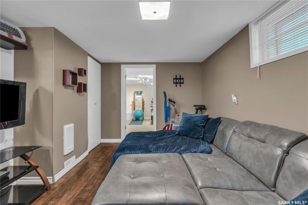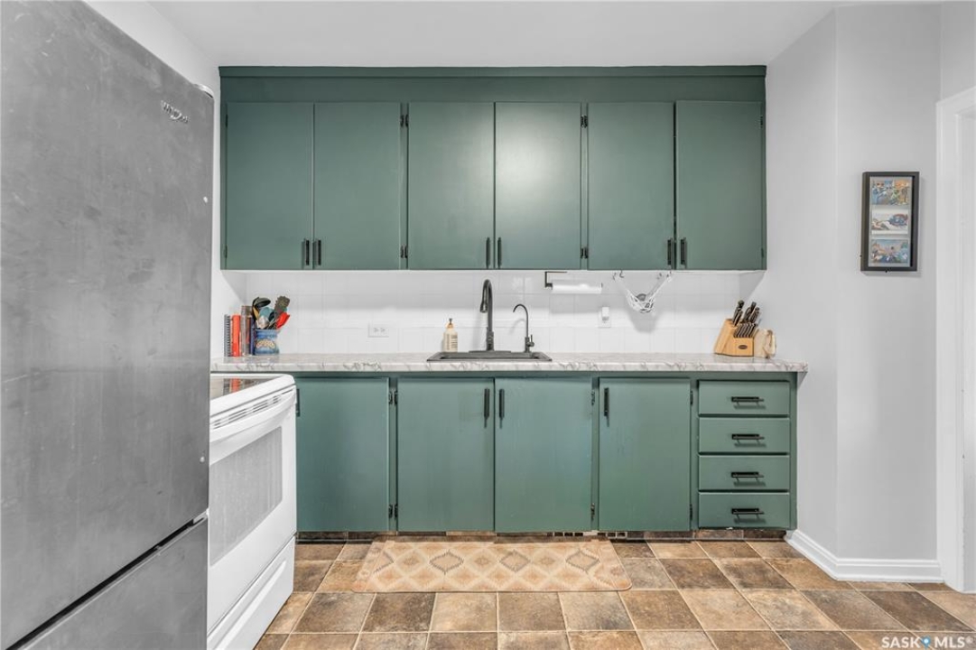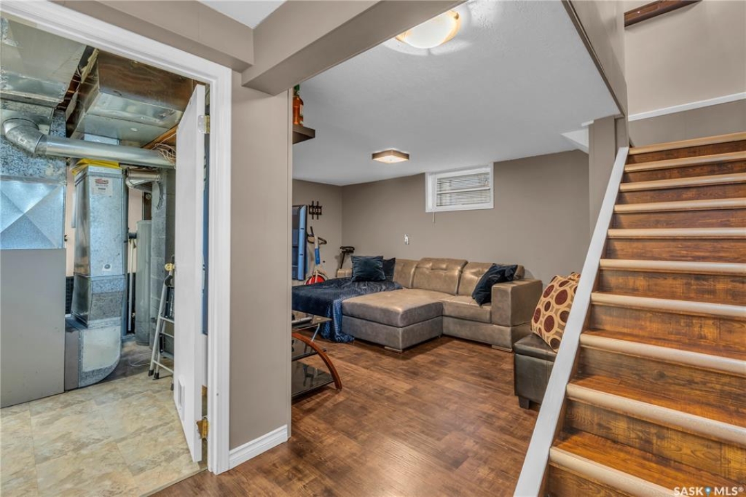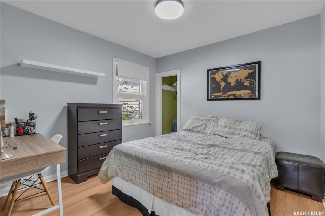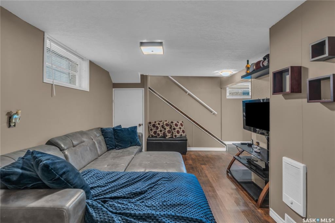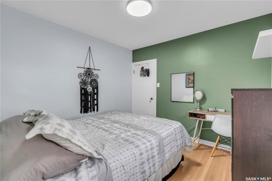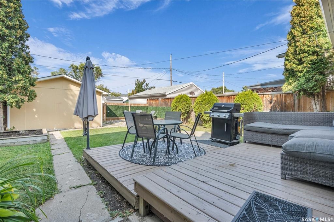 Welcome to 816 sq ft of charm and comfort in Regina's desirable Arnhem Place neighbourhood. Ideally situated just steps from Wascana Park, Candy Cane Park, elementary and high schools, and only minutes to downtown, this home offers the perfect blend of convenience and lifestyle. This bright and cheerful yellow bungalow offers fantastic curb appeal and thoughtful interior details. Inside, you're greeted by arched walkways and a spacious living room featuring large picture windows and built-in bookshelves surrounding the TV—perfect for cozy evenings or entertaining guests. The eat-in kitchen has been tastefully updated with striking forest green cabinetry and gold hardware creating a warm and stylish hub for the home. The original hardwood flooring runs throughout the living room and continues into two comfortable bedrooms and a renovated 4-piece bathroom nestled between them. The fully developed basement includes a third bedroom, a 3-piece bathroom, and a large rec room, offering excellent space for guests, hobbies, or family time. Step outside to enjoy the beautiful backyard, ideal for summer relaxation and gatherings. A single detached garage, accessible via the back alley, offers convenient parking along with additional parking space beside it. Don't miss your opportunity to own this well-maintained, character-filled home in one of Regina's most sought-after neighbourhoods!