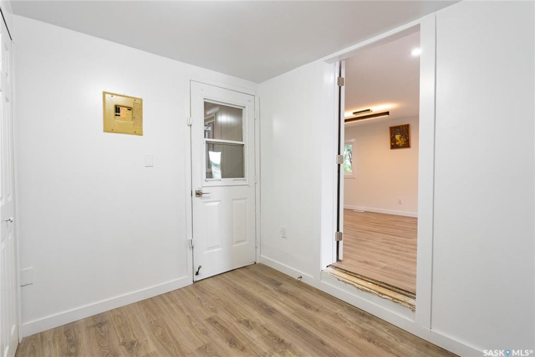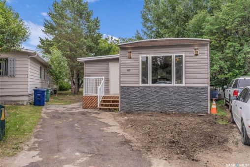 Completely renovated and move-in ready, this stunning mobile home offers over 1,200 square feet of beautifully updated living space on an absolutely massive lot backing green space—an incredible find on the east side of Saskatoon for under $200,000! Located in a quiet, well-kept park, this home features a brand-new furnace, air conditioning, and windows for year-round comfort and efficiency. Step inside to a bright, modern interior showcasing quartz countertops, tile backsplash, soft-close cabinets, stainless steel appliances and pot lights throughout. The open-concept layout is finished with luxury vinyl plank flooring and features an electric fireplace for added charm. Bonus room for extra space for kids or an office. You'll love the dual sinks in the bathroom, the feature wall in the primary bedroom, and the thoughtful touches throughout. Enjoy two new outdoor decks—one in the front and one in the back—perfect for morning coffee or evening entertaining. Lot fees include: water, sewer, snow removal, garbage pick-up, park maintenance and that expansive yard. Whether you're downsizing, buying your first home, or simply looking for turn-key living in a peaceful east-end location, this home delivers exceptional value and style.