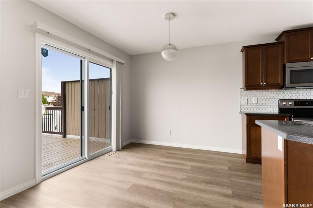Welcome to 5436 Aerial Crescent, a modern two-storey in the heart of Harbour Landing—one of Regina's most vibrant and family-friendly neighbourhoods. Built in 2012, this 1,439 sq. ft. home impresses with its smart design, 4 bedrooms, 4 bathrooms, and a fully finished basement with separate entry. The main floor is bright and inviting, featuring a spacious living room with large picture windows, an open dining area with garden doors to the deck, and a stylish kitchen showcasing rich wood cabinetry, stainless steel appliances, tiled backsplash, and a walk-in pantry. A convenient powder room and main floor laundry complete this level with everyday functionality. Upstairs, the private primary suite boasts a walk-in closet and 4-piece ensuite, accompanied by two additional bedrooms and a full bath. The lower level expands your living space with a versatile rec room, a wet bar, a fourth bedroom, and a full bath—ideal for guests, teens, or potential suite options. Step outside to a fully fenced yard that backs onto expansive green space—perfect for kids, pets, and backyard gatherings. A spacious deck makes summer entertaining a breeze, while the double attached garage and exposed aggregate driveway add both curb appeal and extra parking. With central air, updated vinyl plank flooring, included appliances, and a location close to schools, parks, shopping, and all Harbour Landing amenities, this home checks all the boxes. Move-in ready and waiting for you to enjoy!