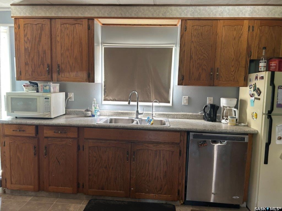 1588 sqft mobile home built in 1978 located on a 8125 sqft lot in Eatonia. Front entrance opens to a living room that opens to kitchen and dining room area. 2 bedrooms at one end of the mobile with a 4-piece bath, master bedroom has a 3-piece ensuite. Addition at the back of the mobile has a bedroom, games room and porch with storage. Features: 4 bedrooms, 2 bathrooms, good rental property with good renters. 16' x 20' deck, newer furnace, hot water tank is 1 year old and metal room. Shed is included. call to book your showing today!