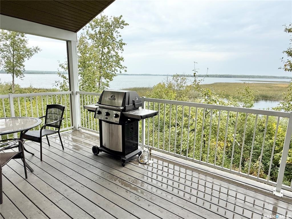 Built in 2014, this lovely 4-season lakefront cottage offers over 2,000 sq ft of living space with 6 bedrooms and 2 bathrooms, perfect for family gatherings or hosting guests. The main floor features vaulted pine ceilings, low-maintenance lino flooring, a natural gas fireplace, and an open kitchen with deck access and a natural gas BBQ. The spacious covered wrap-around deck and lower-level custom brick patio with fire pit area provide multiple spots to soak in the beautiful lake views while maintaining your privacy. The walkout basement includes 3 of the bedrooms (one unfinished), a 3pc bath/laundry, and a cozy electric fireplace. Enjoy year-round comfort with natural gas forced air heat plus electric baseboard backup. Extra items of note include a 1250-gallon fresh water tank, concrete septic holding tank, lake water intake for yard use, large shed with overhead door, and wheelchair accessibility. With a hard, sandy shoreline just steps away you can enjoy the lake to the fullest! Aspen Ridge Development is on the southwest side of Big Shell Lake—only 1 hour 20 minutes from Saskatoon—this move-in ready, furnished property is an ideal getaway for fishing, water sports, or simply relaxing at the lake. Set on a large lot - there is opportunity for you to build a garage as well. Enjoy Saskatoon Berry bushes and Chokecherries right in your front yard! Reach out for more information!
