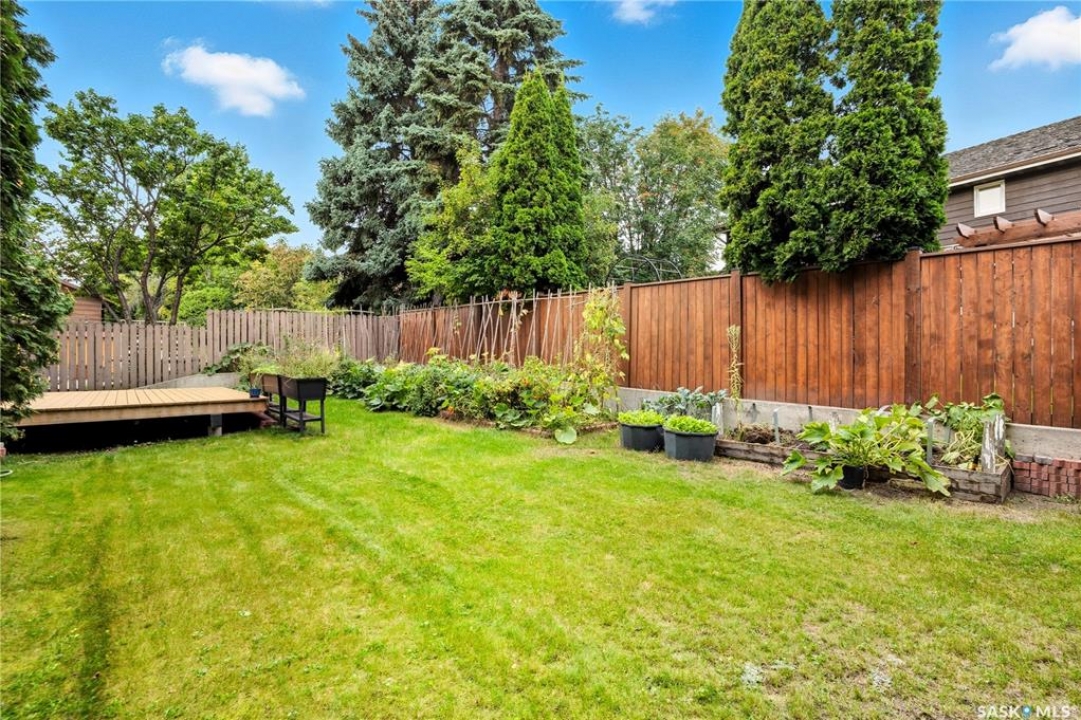Outdoor: Deck, Fenced, Garden Area, Lawn Back, Lawn Front, Trees/shrubs