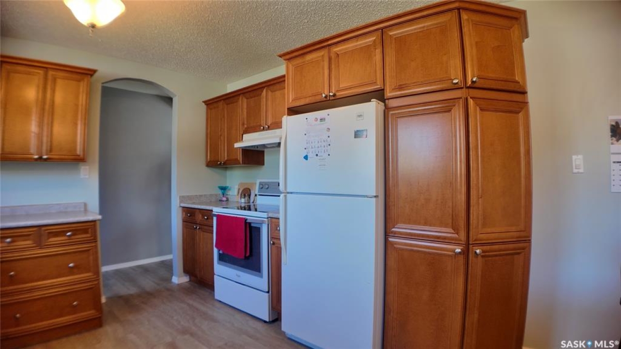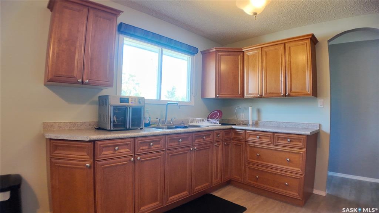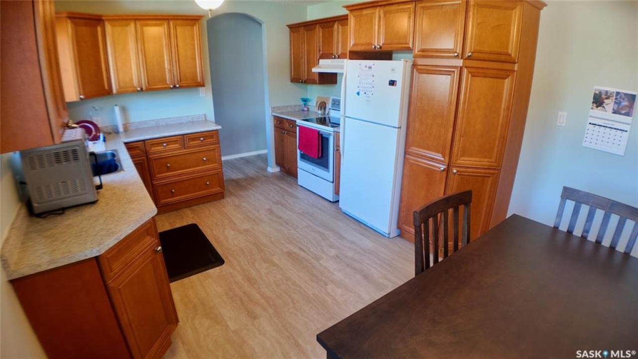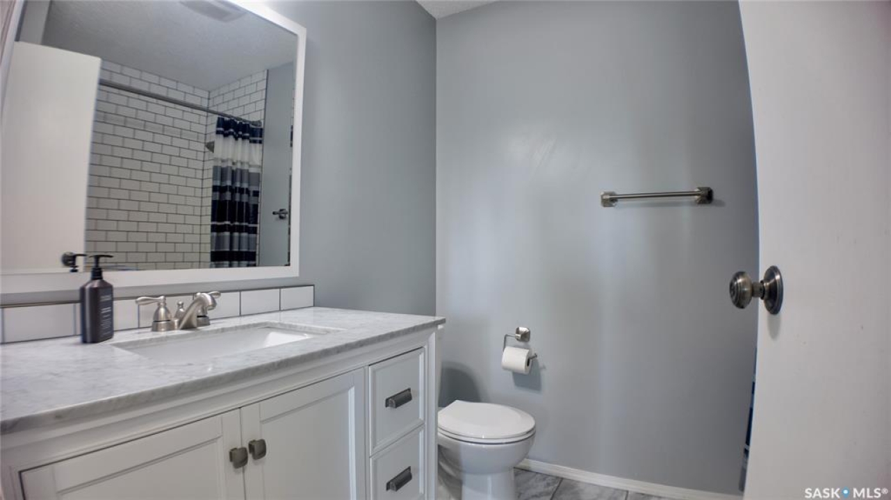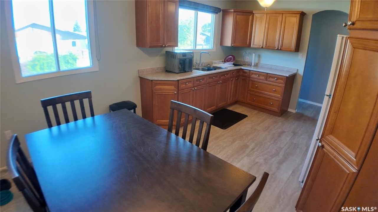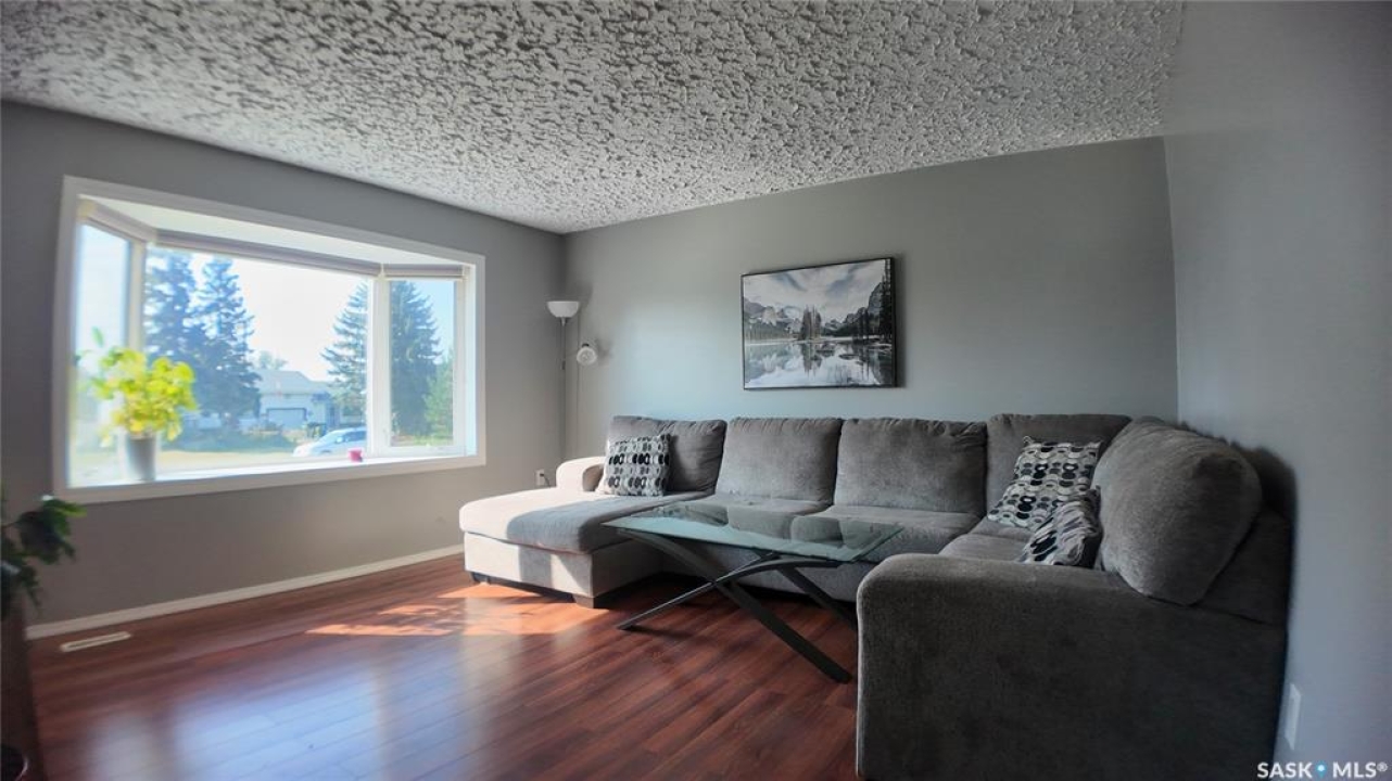The Town of Battleford continues to be one of the most popular places to call home, and this 5-bedroom, 3-bathroom property is a wonderful opportunity to be part of it. The main floor offers a spacious living room, an updated kitchen and dining area, three bedrooms, and two bathrooms—including a convenient 2-piece ensuite off the primary bedroom. Tasteful flooring and tiled finishes bring a modern feel to the main level. The lower level provides plenty of extra space with a bright family room, cozy carpet, and a wet bar that makes entertaining easy. Two more bedrooms, including one oversized room, plus a full bathroom with a walk-in shower, add flexibility for family, guests, or hobbies. Outside, the fully fenced yard includes a garden area, single garage, and storage shed—giving you both function and privacy. Thoughtful improvements, such as shingles and attic insulation, add to the home's comfort and efficiency. Living in Battleford means enjoying the charm of a smaller community with schools, parks, and amenities nearby, while still being only minutes from everything North Battleford has to offer. This home combines space, updates, and affordability in one inviting package. Don't miss your chance to see the value this Battleford property has to offer.