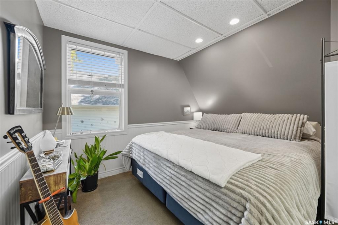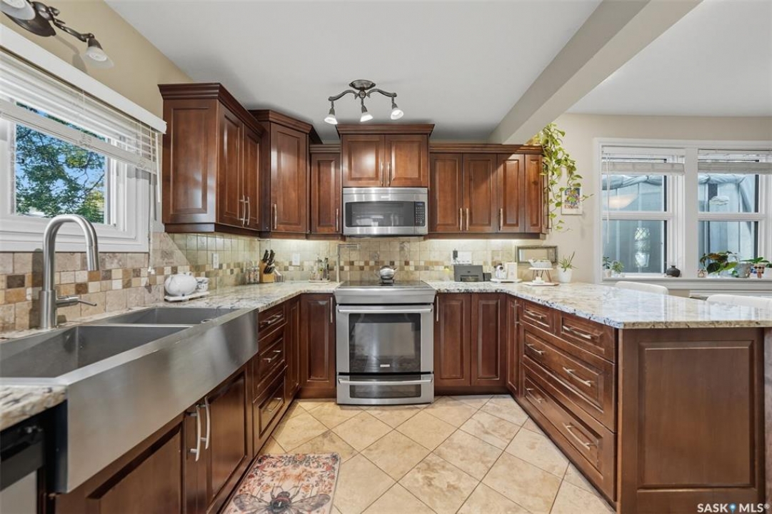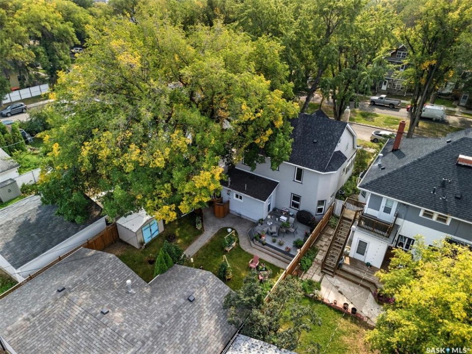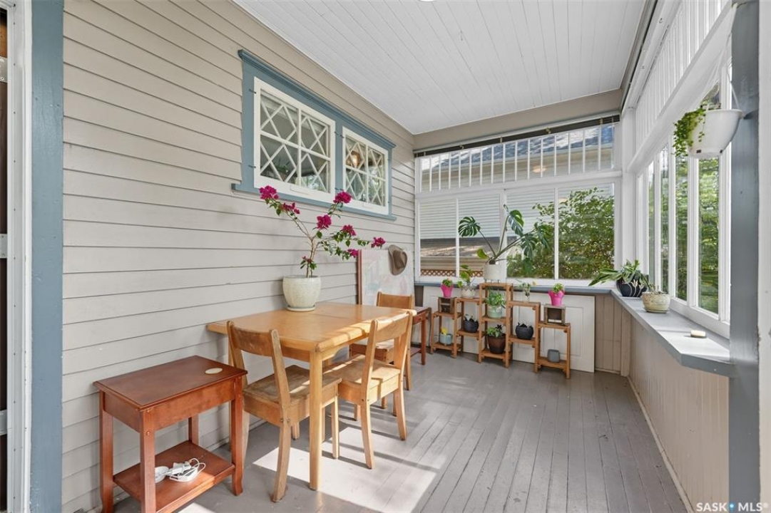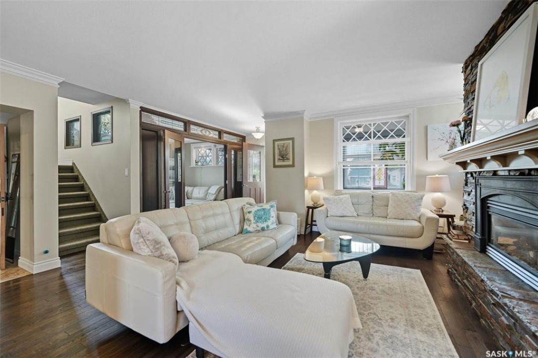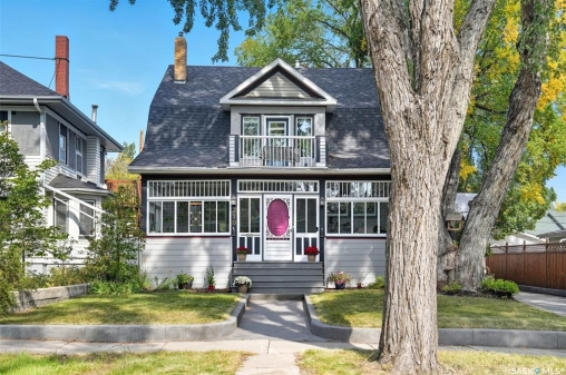 This beautifully maintained 2 � storey character home offers 2,310 sq. ft. on three levels, blending timeless charm with modern upgrades in the heart of Caswell Hill. A welcoming front veranda (27' x 9') sets the stage before entering a den with glass French doors, stained-glass accents, and built-in shelving — perfect as a home office or TV space. The main floor features hardwood floors, a living room with gas fireplace and stone mantle, and a spacious formal dining room with a wet bar and custom desk area. The updated kitchen includes maple cabinetry, granite countertops, stainless steel farmhouse sink, pot filler, stone backsplash, in-floor heat, and appliances, with a built-in seating nook that provides a cozy spot for casual meals. Upstairs offers 3 bedrooms in total: two on the second level including a master with private veranda, plus a flexible third-level bedroom or studio. The second-floor bath features a jet tub and freestanding shower. The fully developed basement adds versatility with a bedroom, refreshed bath, and a new wet bar with cabinetry, sink, fridge, dishwasher, and heated porcelain tile flooring — ideal for entertaining or guest use, with a separate side entrance enhancing convenience. Outdoor spaces include a three-season sunroom, backyard deck (15'11” x 15'10”) with gas BBQ hookup, stamped concrete, perennial landscaping, and RV parking. A highlight of the property is the 42' x 30' heated detached garage, offering abundant space for vehicles, hobbies, or a year-round workshop. High-efficiency furnace, air conditioner, and water heater (2011). Complete with central vac, shed, and appliances included, this Caswell Hill gem is listed at $539,900 (MLS �).