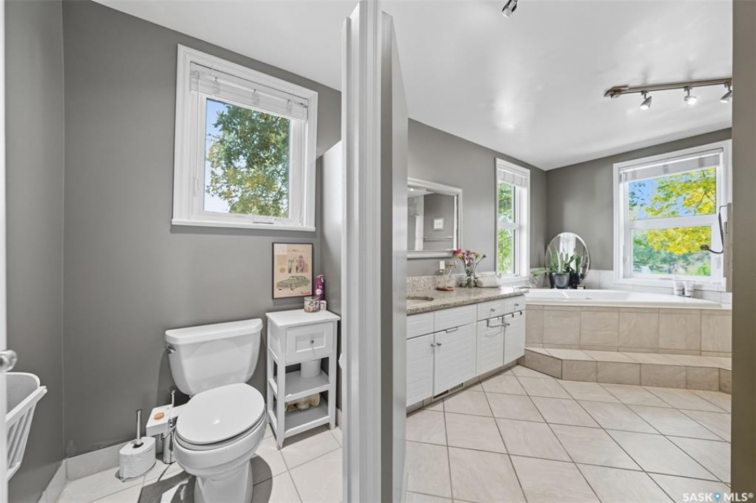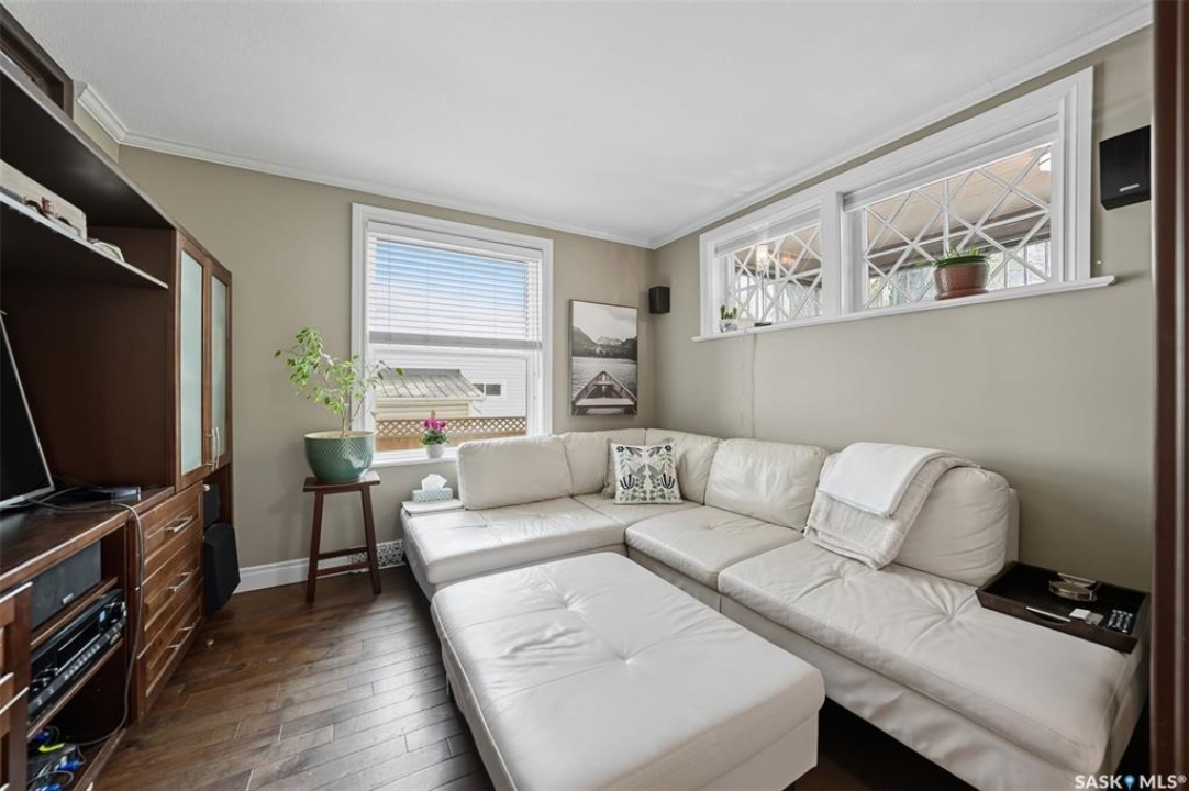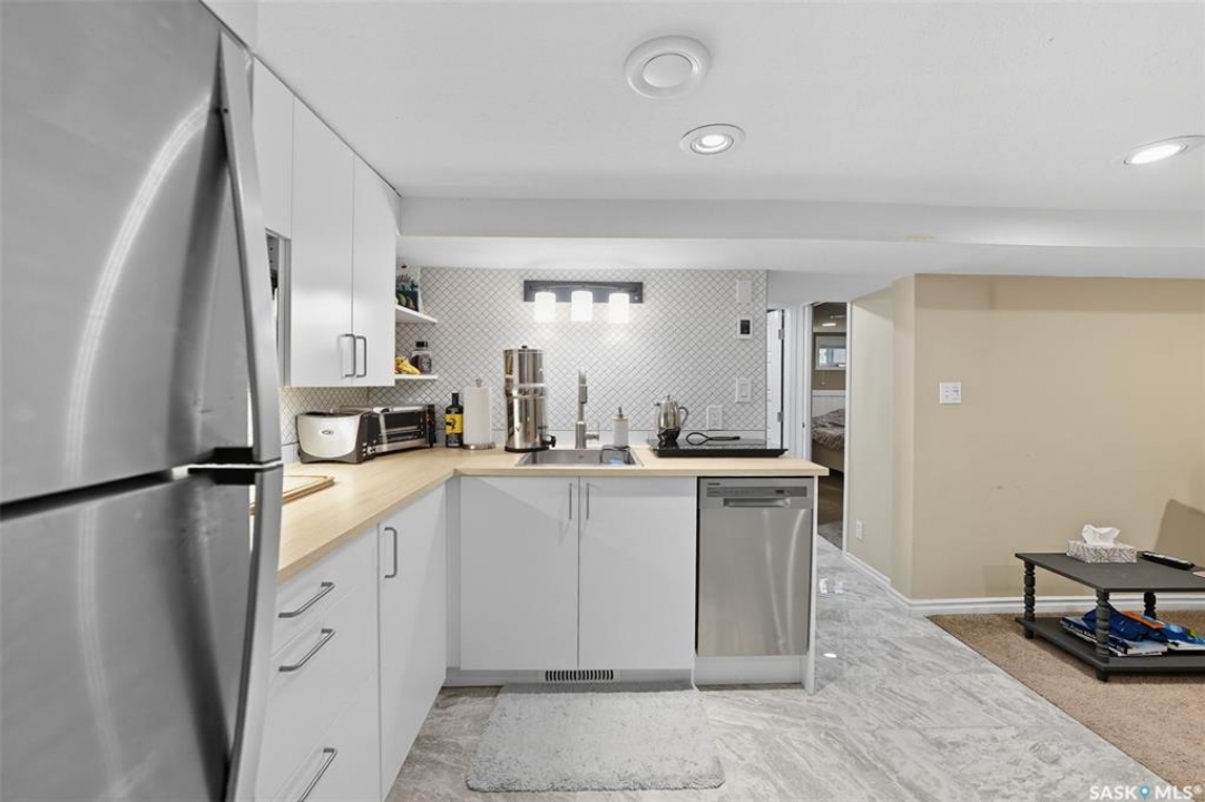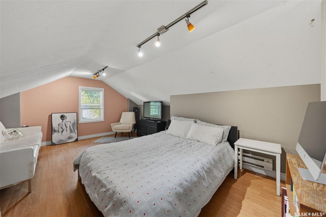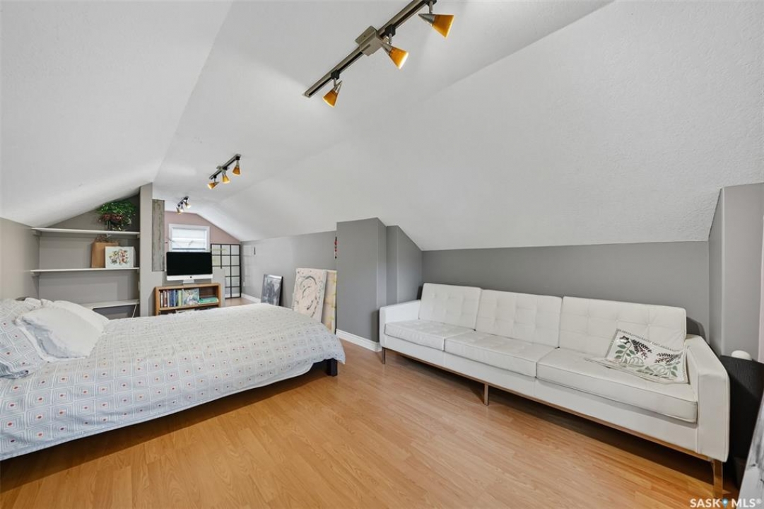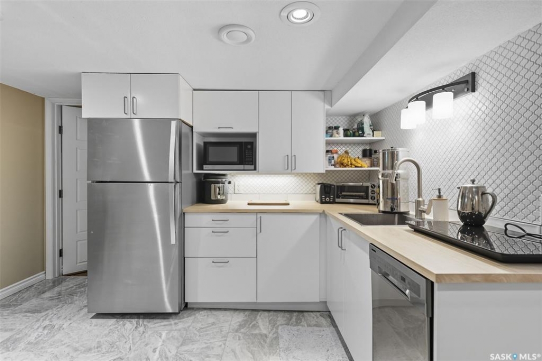 This beautifully maintained 2 � storey character home offers 2,310 sq. ft. on three levels, blending timeless charm with modern upgrades in the heart of Caswell Hill. A welcoming front veranda (27' x 9') sets the stage before entering a den with glass French doors, stained-glass accents, and built-in shelving — perfect as a home office or TV space. The main floor features hardwood floors, a living room with gas fireplace and stone mantle, and a spacious formal dining room with a wet bar and custom desk area. The updated kitchen includes maple cabinetry, granite countertops, stainless steel farmhouse sink, pot filler, stone backsplash, in-floor heat, and appliances, with a built-in seating nook that provides a cozy spot for casual meals. Upstairs offers 3 bedrooms in total: two on the second level including a master with private veranda, plus a flexible third-level bedroom or studio. The second-floor bath features a jet tub and freestanding shower. The fully developed basement adds versatility with a bedroom, refreshed bath, and a new wet bar with cabinetry, sink, fridge, dishwasher, and heated porcelain tile flooring — ideal for entertaining or guest use, with a separate side entrance enhancing convenience. Outdoor spaces include a three-season sunroom, backyard deck (15'11” x 15'10”) with gas BBQ hookup, stamped concrete, perennial landscaping, and RV parking. A highlight of the property is the 42' x 30' heated detached garage, offering abundant space for vehicles, hobbies, or a year-round workshop. High-efficiency furnace, air conditioner, and water heater (2011). Complete with central vac, shed, and appliances included, this Caswell Hill gem is listed at $539,900 (MLS �).