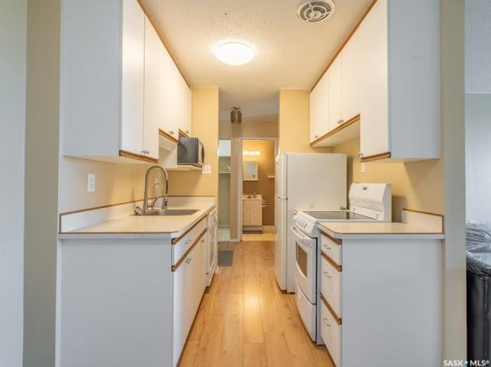 Welcome to 606-4555 Rae Street, a bright and functional top-floor condo in the highly sought-after Elmcrest building. Nestled in the vibrant Albert Park neighborhood, you're just steps from parks, gourmet grocery stores, eclectic restaurants, and boutique shopping. This west-facing unit is bathed in beautiful sun set, which you can enjoy from your spacious private balcony—the perfect spot for your relaxing coffee time. Inside, discover an efficient and well-designed layout featuring one bedroom, a modern four-piece bathroom, a separate dining room, and additional storage. Building amenities include secure visitor parking, a convenient elevator, and wheelchair accessibility. This is a rare opportunity to own a sunny, well-located home in one of the city's most desirable communities.