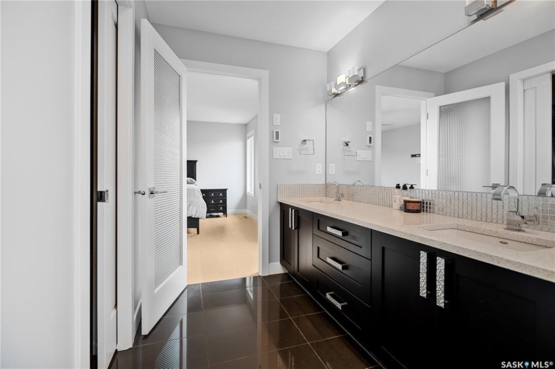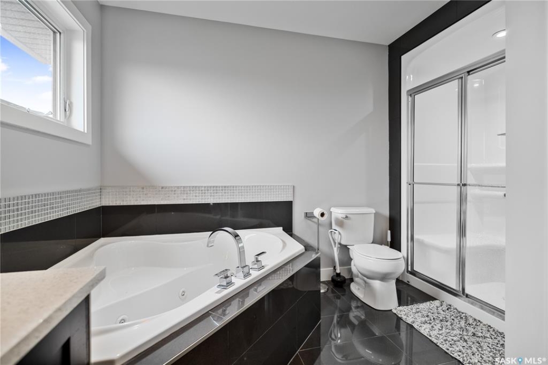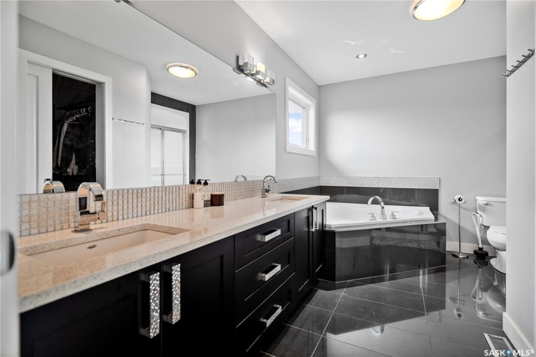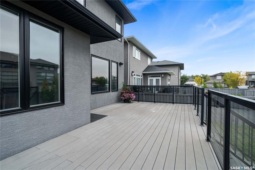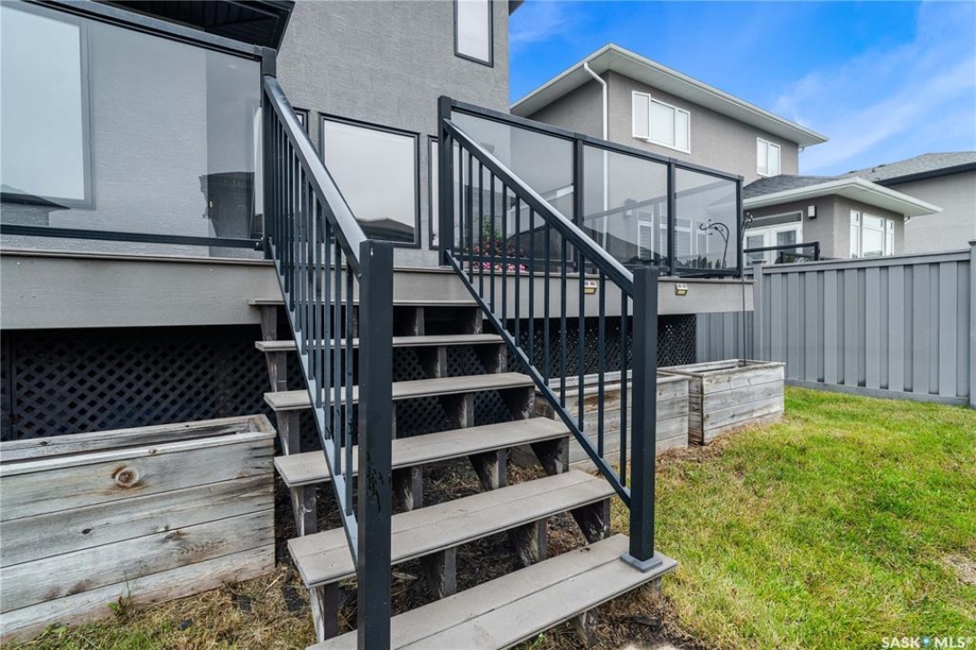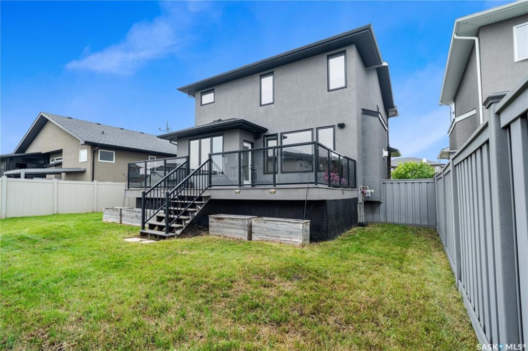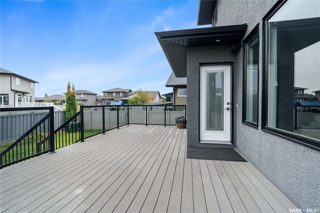 Built by Kratz, the recently updated 5-bedroom, 3.5-bathroom home in the Creeks combines modern finishes with everyday comfort(no carpet throughout). The spacious foyer opens to an inviting main floor with 9' ceilings and engineered hardwood flooring with a gas fireplace. The kitchen features dark maple cabinetry with soft-close drawers, quartz countertops, a granite sink, a glass backsplash, stainless steel appliances, and direct garage-to-pantry access for easy unloading groceries. Tiled bathrooms and laundry complete this main space. The bright and spacious living area flows into a 25 by 14 oversized deck, featuring a glass railing & built-in garden/flower boxes (as is a condition). This space is perfect for entertaining, with professionally installed in-ceiling speakers in the main living area and on the deck. The fence is TREX/PVC, which is low-maintenance & long-lasting, a landscaped yard with vibrant perennials, and a garden shed complete the outdoor area. The open glass and engineered wood staircase leads to a large bonus room on the second floor. The bonus room is pre-wired for surround speakers(speakers not included). The bonus room is ideal for an office, media, or family space. The luxurious primary suite offers a walk-in closet and spa-style ensuite with heated flooring, dual sinks, a jetted tub, and an oversized shower. There are two more spacious bedrooms and a full bath to complete this level. The builder-developed basement boasts a spacious Theatre rec room with a built-in projector screen ideal for family movie nights or entertaining guests, 2 additional bedrooms, a walk-in/ storage, and a � bath completes the basement. The partially heated triple-garage with one one-bay partition wall has a rear overhead door to the yard; this can serve as a good space for a home business. Additional features include Central air conditioning, a central vacuum, motion light sensors & dimmers. Book your view with your agent.