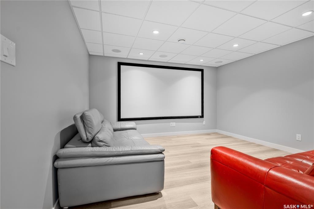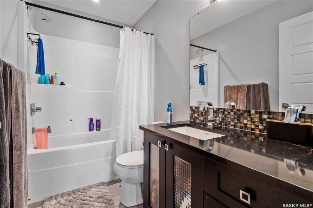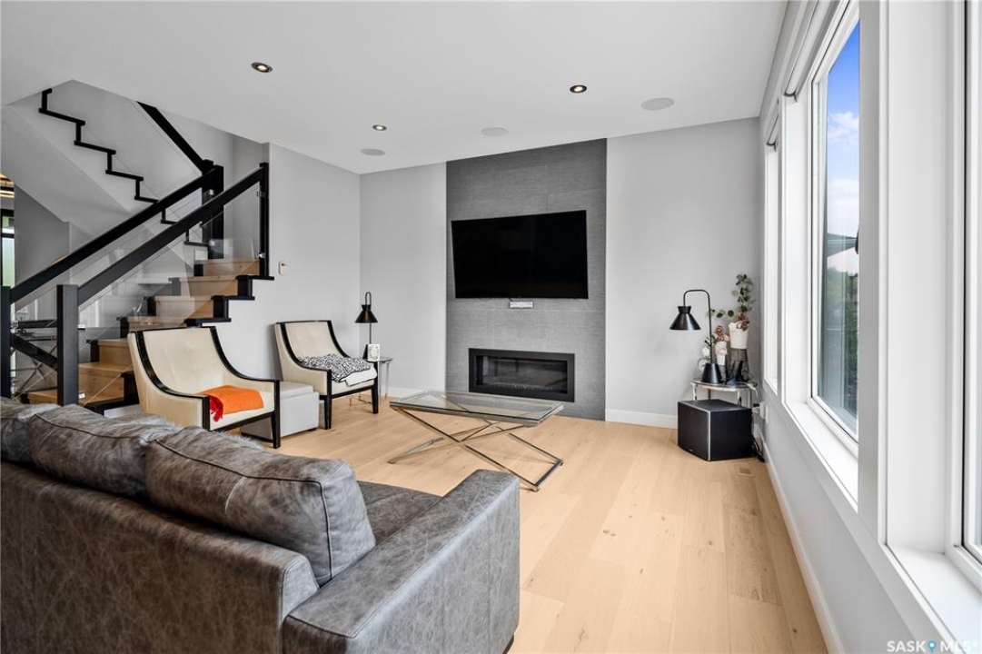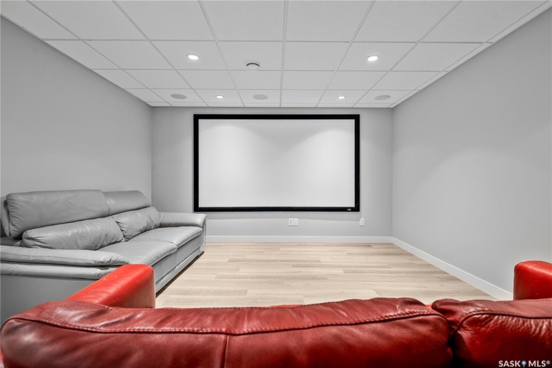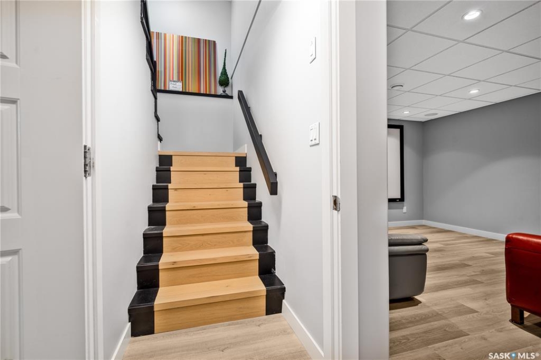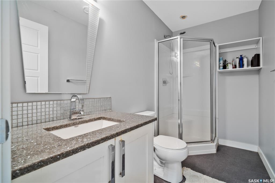 Built by Kratz, the recently updated 5-bedroom, 3.5-bathroom home in the Creeks combines modern finishes with everyday comfort(no carpet throughout). The spacious foyer opens to an inviting main floor with 9' ceilings and engineered hardwood flooring with a gas fireplace. The kitchen features dark maple cabinetry with soft-close drawers, quartz countertops, a granite sink, a glass backsplash, stainless steel appliances, and direct garage-to-pantry access for easy unloading groceries. Tiled bathrooms and laundry complete this main space. The bright and spacious living area flows into a 25 by 14 oversized deck, featuring a glass railing & built-in garden/flower boxes (as is a condition). This space is perfect for entertaining, with professionally installed in-ceiling speakers in the main living area and on the deck. The fence is TREX/PVC, which is low-maintenance & long-lasting, a landscaped yard with vibrant perennials, and a garden shed complete the outdoor area. The open glass and engineered wood staircase leads to a large bonus room on the second floor. The bonus room is pre-wired for surround speakers(speakers not included). The bonus room is ideal for an office, media, or family space. The luxurious primary suite offers a walk-in closet and spa-style ensuite with heated flooring, dual sinks, a jetted tub, and an oversized shower. There are two more spacious bedrooms and a full bath to complete this level. The builder-developed basement boasts a spacious Theatre rec room with a built-in projector screen ideal for family movie nights or entertaining guests, 2 additional bedrooms, a walk-in/ storage, and a � bath completes the basement. The partially heated triple-garage with one one-bay partition wall has a rear overhead door to the yard; this can serve as a good space for a home business. Additional features include Central air conditioning, a central vacuum, motion light sensors & dimmers. Book your view with your agent.
