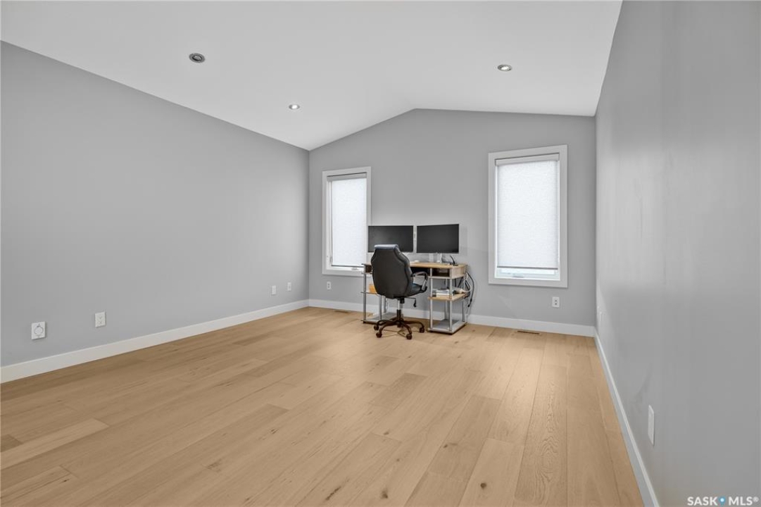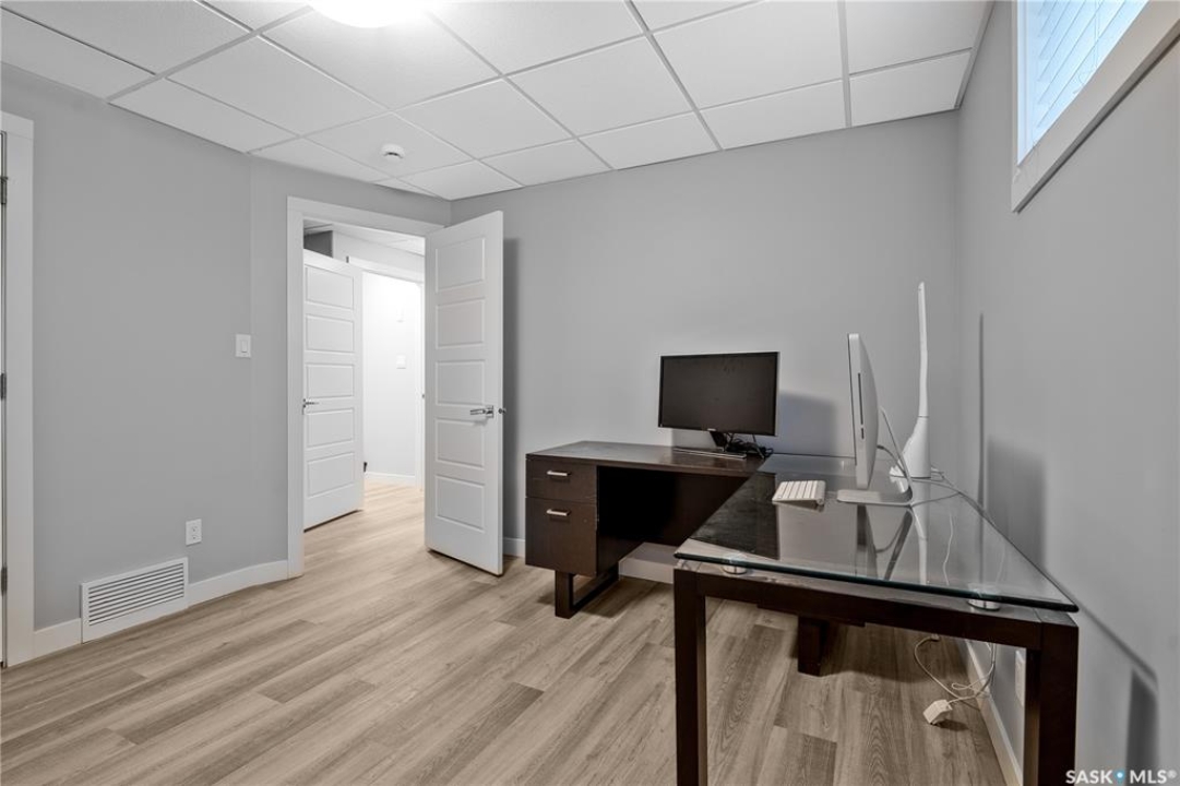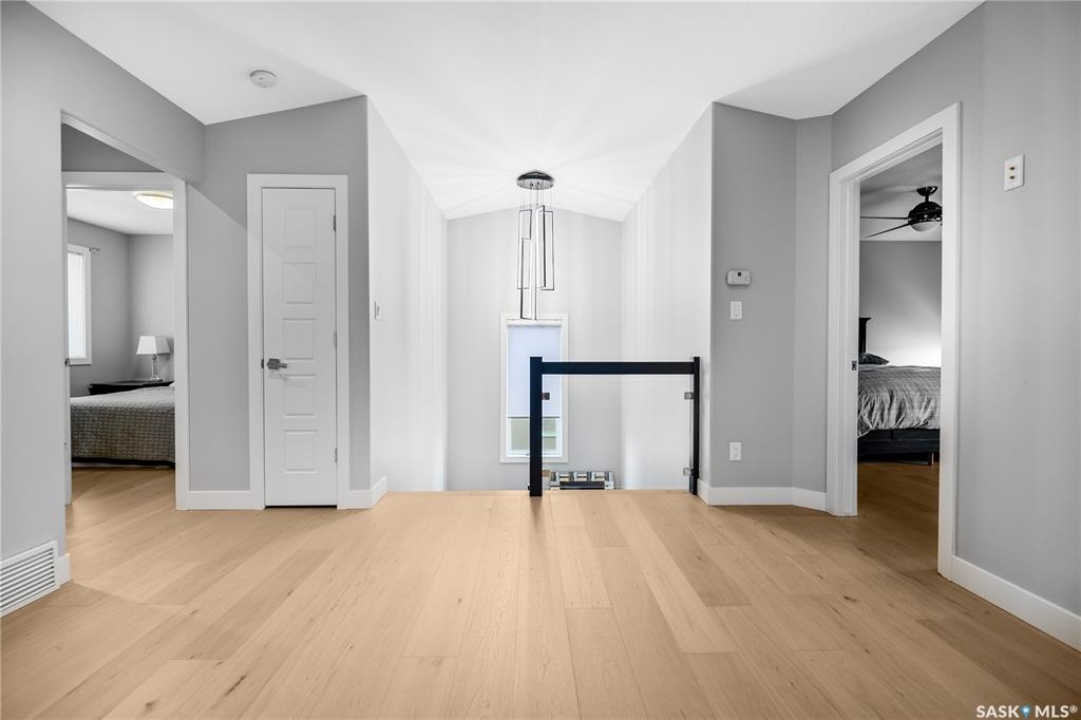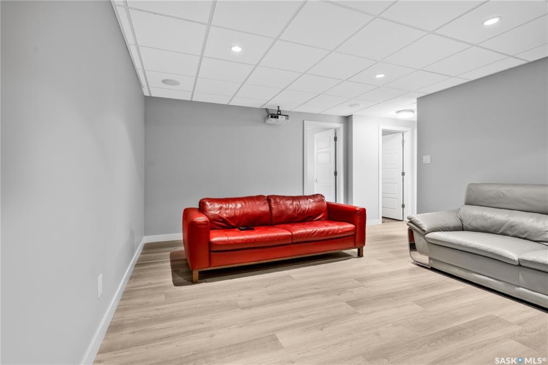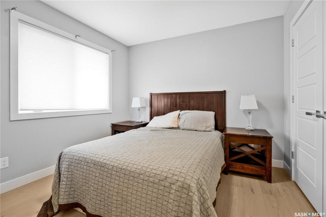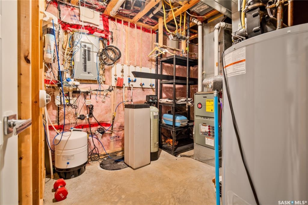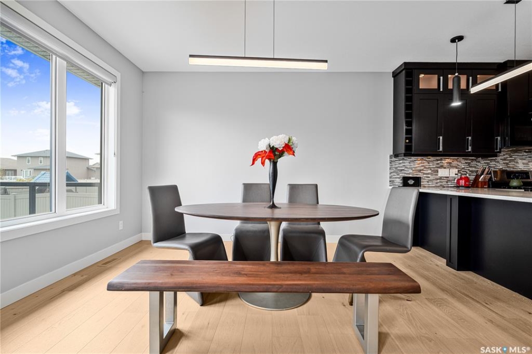 Built by Kratz, the recently updated 5-bedroom, 3.5-bathroom home in the Creeks combines modern finishes with everyday comfort(no carpet throughout). The spacious foyer opens to an inviting main floor with 9' ceilings and engineered hardwood flooring with a gas fireplace. The kitchen features dark maple cabinetry with soft-close drawers, quartz countertops, a granite sink, a glass backsplash, stainless steel appliances, and direct garage-to-pantry access for easy unloading groceries. Tiled bathrooms and laundry complete this main space. The bright and spacious living area flows into a 25 by 14 oversized deck, featuring a glass railing & built-in garden/flower boxes (as is a condition). This space is perfect for entertaining, with professionally installed in-ceiling speakers in the main living area and on the deck. The fence is TREX/PVC, which is low-maintenance & long-lasting, a landscaped yard with vibrant perennials, and a garden shed complete the outdoor area. The open glass and engineered wood staircase leads to a large bonus room on the second floor. The bonus room is pre-wired for surround speakers(speakers not included). The bonus room is ideal for an office, media, or family space. The luxurious primary suite offers a walk-in closet and spa-style ensuite with heated flooring, dual sinks, a jetted tub, and an oversized shower. There are two more spacious bedrooms and a full bath to complete this level. The builder-developed basement boasts a spacious Theatre rec room with a built-in projector screen ideal for family movie nights or entertaining guests, 2 additional bedrooms, a walk-in/ storage, and a � bath completes the basement. The partially heated triple-garage with one one-bay partition wall has a rear overhead door to the yard; this can serve as a good space for a home business. Additional features include Central air conditioning, a central vacuum, motion light sensors & dimmers. Book your view with your agent.