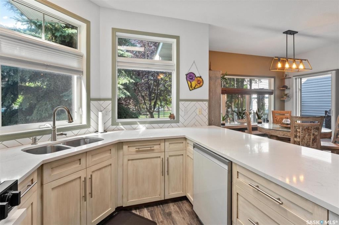Welcome to #103–825 Heritage Green — a rare and exclusive residence offering both elegance and privacy with extensive renovations and attention to detail. One of only four unique floor plans in the Heritage Green development, this executive two-storey townhouse 1506 sq ft with 2 bedroom+ bonus room and 4 bathrooms is designed for discerning buyers who appreciate luxury details and a thoughtful, bright and open layout. Most windows, as well as deck, and green space are West facing adding beautiful sunlight into the living spaces. Second floor fully independent of shared walls, this home truly feels like a private retreat. The main level is defined by soaring 10' ceilings, newer flooring, fresh designer paint, and expansive East-facing windows that flood the space with natural light. The living room showcases a vaulted ceiling and a cozy gas fireplace, while the chef's inspired kitchen with all new appliances, garburator and a view that impresses with whitewash maple cabinetry, quartz countertops, a custom herringbone backsplash, walk-in pantry, and peninsula seating — a perfect space for entertaining. A stylish powder room, full laundry with cabinetry, and direct access to the insulated double garage. Upstairs, a versatile bonus room offers space for an office or lounge, while the luxurious primary suite features vaulted ceilings, a walk-in closet, and a spa-inspired 4-piece ensuite. A second large bedroom and full bath provide comfort for family or guests. The fully developed basement expands the living space with a family room, additional bath, and generous storage. Recent upgrades include a new water heater (2020) and an oversized composite deck (2020) with natural gas BBQ hookup overlooking private greenspace & walking paths. Central air and central vac. With upscale finishes, a rare floor plan, and a prime location, this executive townhouse offers perfect blend of style, comfort, and exclusivity. Simply move in and enjoy. Pets with approval 1 Dog or 1 Cat