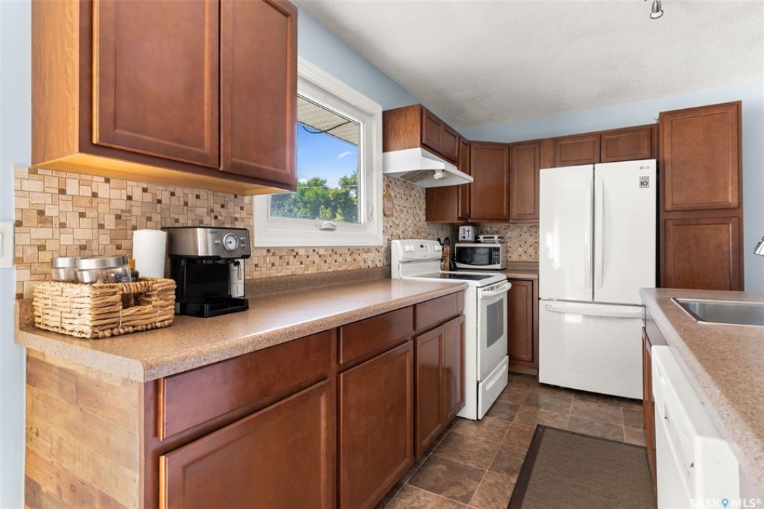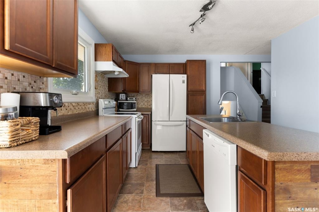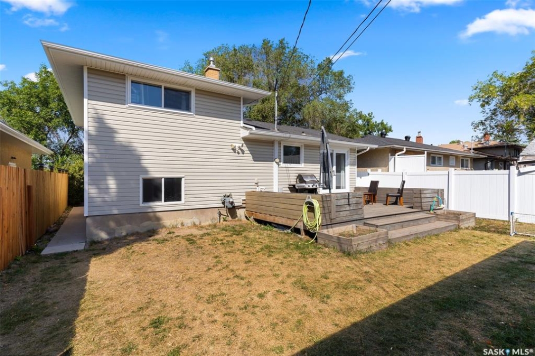 Welcome to this four-level split offering 1,318 sq ft of living space on a 4,451 sq ft lot. The main floor features a bright living room with newer flooring and fresh paint, and an open kitchen/dining area with a large island and direct access to the deck. Upstairs are two spacious bedrooms and an updated 4-piece bathroom. The lower level adds two more bedrooms and a second bathroom, while the basement provides a large rec room and utility/laundry area. The current owners have made many updates including new windows, flooring, paint, a new back fence, and freshly insulated garage. Other recent improvements include shingles (3 years), furnace, south wall bracing, updated electrical, bathroom vanities and shower. Outside you'll find a good-sized deck, garden space, and a double detached garage with new insulated overhead door. The home is conveniently located across from École Monseigneur de Laval High School with bus pickup out front for Elsie Mironuck and St. Gregory schools. Close to shopping and bus routes, this move-in-ready property is a solid option for families looking for space and updates already done.