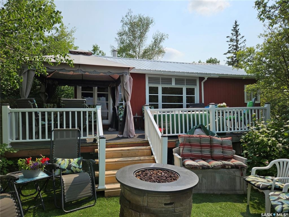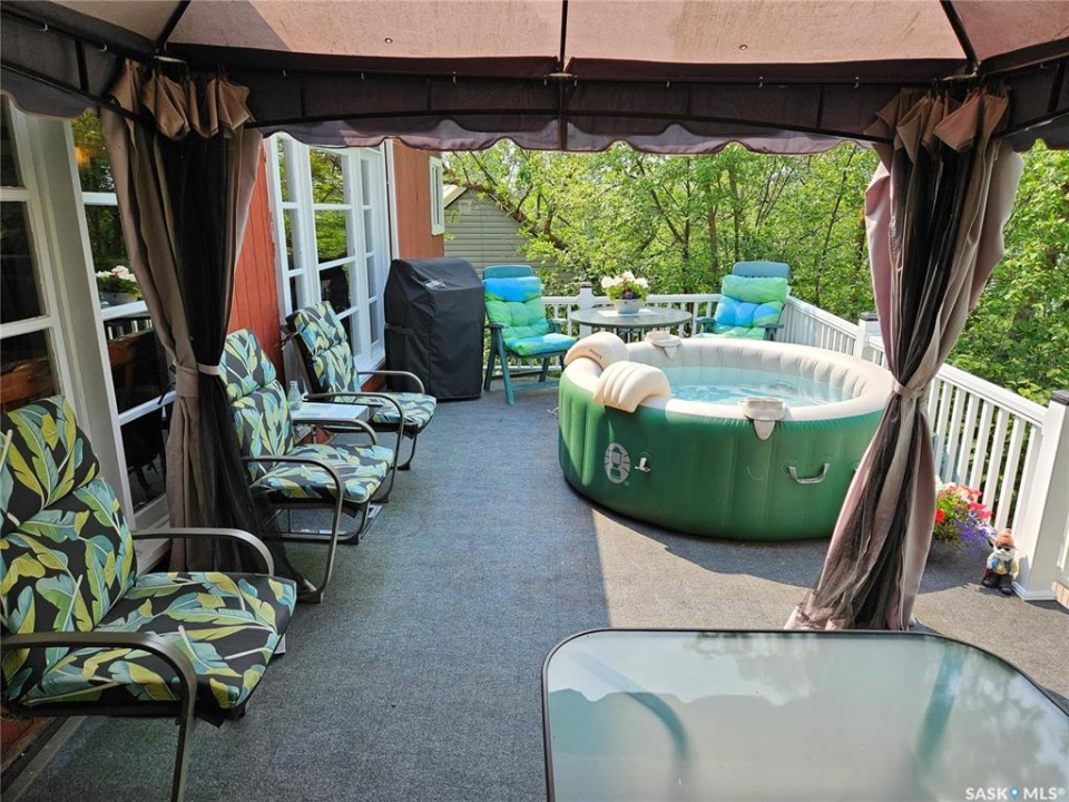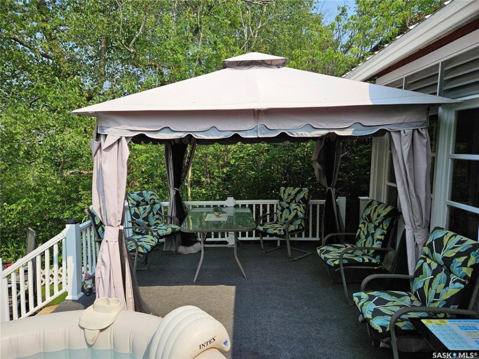 Charming turn key Lake View Retreat with Stunning Outdoor Living. 742 Lakeside Avenue. Experience the ultimate in lakeside relaxation with this enchanting White Bear Lake home, designed for those who crave both comfort and beauty. Situated on a picturesque lot, this well-maintained 720 sq. ft. home, complemented by a 110 sq. ft. sunroom, offers a total of 830 sq. ft. of inviting living space, as well as room for a guest house. Enjoy the breath taking views of White Bear Lake from your expansive 20'x12' deck. The back is an entertainer's dream, featuring a spacious deck with ample seating, a charming gazebo with a heater, and a cozy fire pit area for those quintessential lake life evenings. Gather around the fire pit and savor the tranquil ambiance of lakeside living. Unwind in the included hot tub after a long day, perfect for relaxation and rejuvenation. The deck boasts PVC railings with solar lights, adding both style and safety to your outdoor experience. The backyard is accessible from both the house and a wrap-around walking area from the front. The open concept living and dining areas are designed for seamless conversation and enjoyment, featuring a cozy electric fireplace and numerous windows that flood the space with natural light while showcasing stunning lake views. Cook in style with high-end appliances, ample cupboard space, a tasteful backsplash, and a convenient cut-out that allows for interaction with guests in the living room. The home includes two generously sized bedrooms for restful nights. The four-piece bathroom features a granite countertop, newer fixtures, and a rain shower head for a spa-like experience. Washer/Dryer are Conveniently tucked away in their own dedicated area. Equipped with a 1000-gallon water tank and a 1000-gallon septic tank. This idyllic retreat promises a serene escape with all the comforts of home. Walking distance to the beach!. Don't miss the opportunity to own this lakeview gem and to enjoy white Bear Lake.