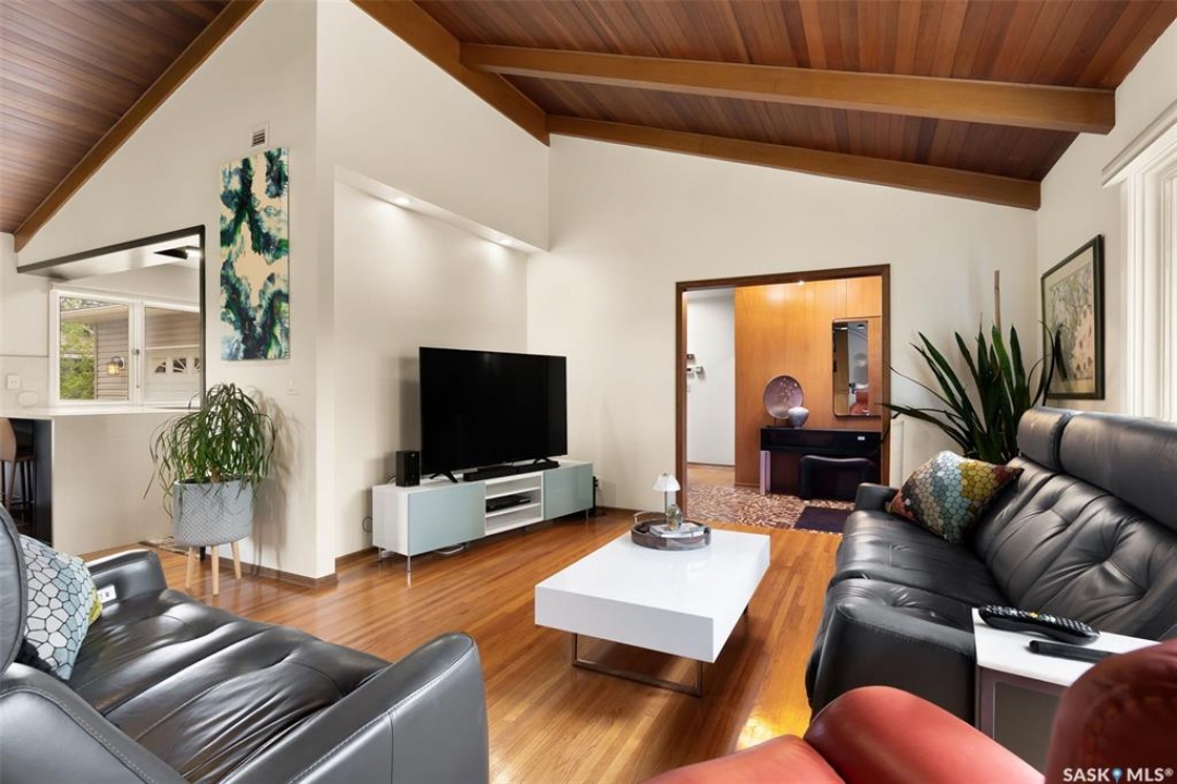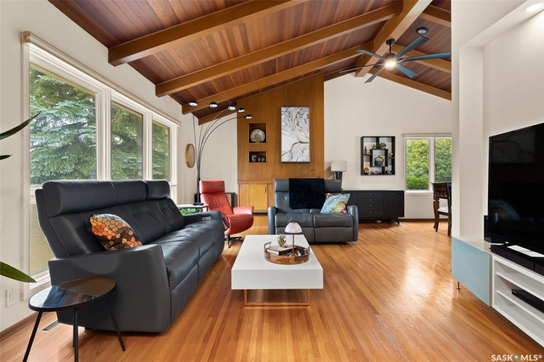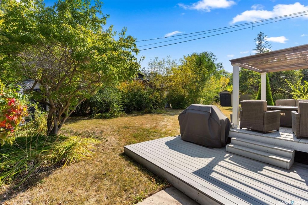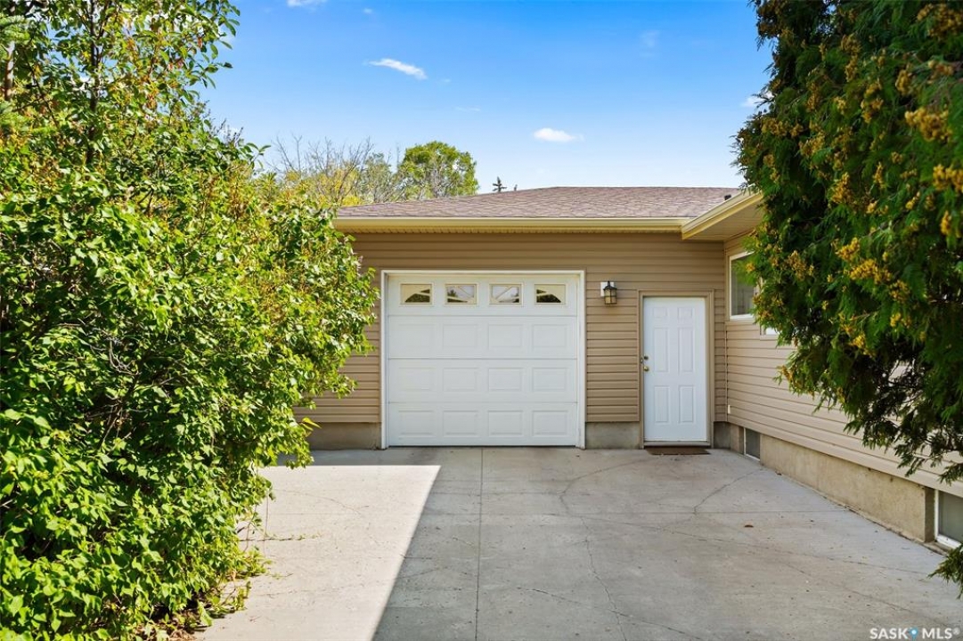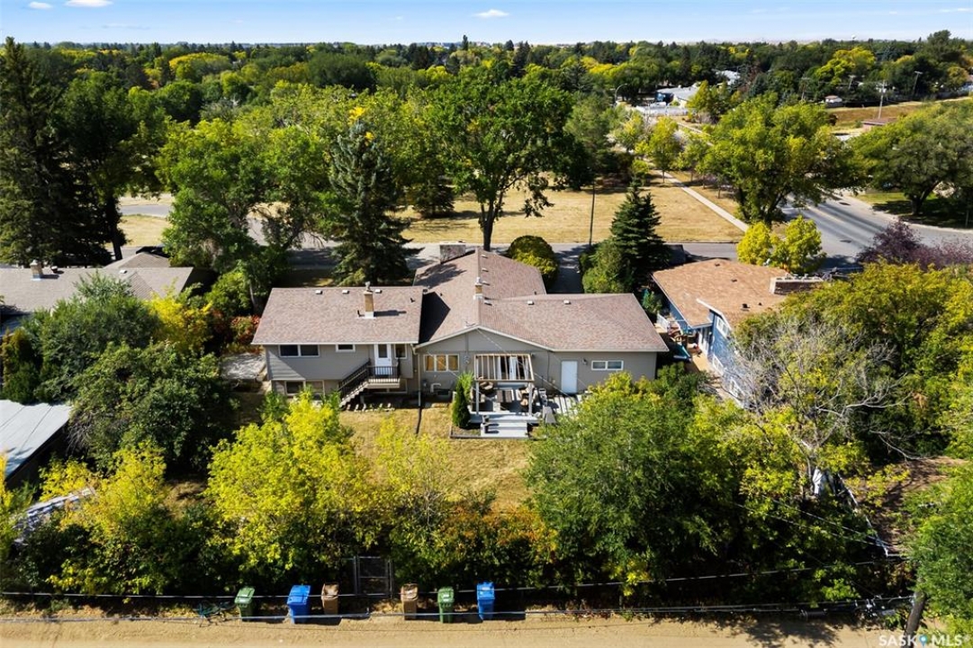 Welcome to a truly unique opportunity in the heart of South Regina. Tucked away on a quiet cul-de-sac overlooking green space, this home offers both privacy and convenience in a prime location. Originally designed as a single residence, the layout now provides a rare opportunity for families in need of an attached nanny suite or multi-generational living. The main home showcases stunning cathedral ceilings that create a bright and open feel, complimented by a series of thoughtful updates in recent years. The refreshed kitchen features stone counters with a waterfall edge, glass tile backsplash, updated flooring, and newer appliances. The primary bedroom is spacious and can double as an exercise space or reading nook. Here garden doors lead to a two-tiered composite deck with pergola and view of the east-facing backyard. Down the hall, a recently remodelled 3-piece bathroom with stylish shower and off the kitchen is access to an attached and heated (20'x26') garage. The fully finished basement adds to the living space with a 2nd bedroom, a den, 4-piece bathroom and laundry. Additional upgrades include modern lighting, a newer furnace, shingles and eaves all within the last 10 years. The second home offers more of the original 60's charm with its own private entrance. Here you will find a cozy space with a galley kitchen and an additional 3 bedrooms and 2 bathrooms. Paved walking paths right out your front door will take you to Kinsmen Park or watch your kids cross the street to school with the recently completed joint-use École St. Pius & Argyle Elementary Schools just a few steps away. Set on an impressive 100ft frontage (with 4 x 25ft lots), this property offers exceptional space and flexibility in one of the city's most desirable neighbourhoods. With its unique configuration, sought-after location, and blend of updates mixed with original charm this home presents an incredible opportunity you won't find anywhere else.