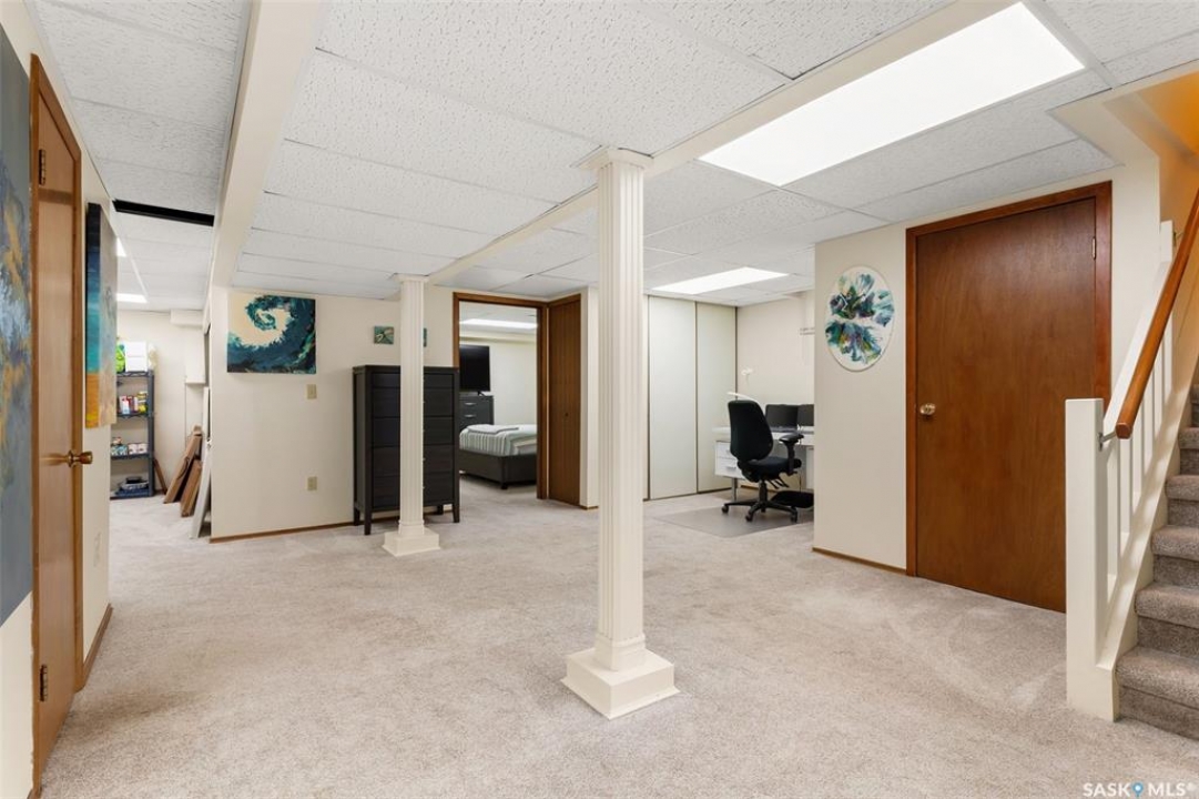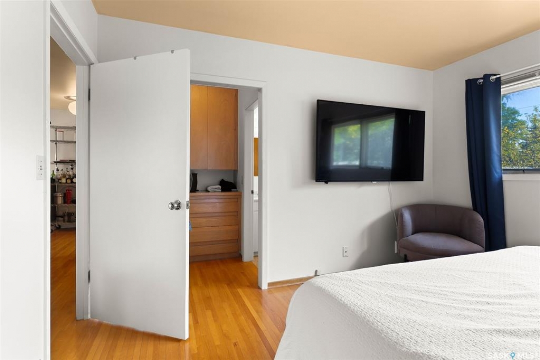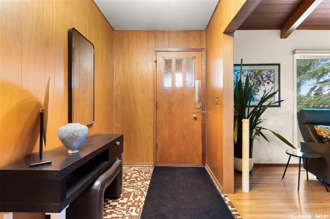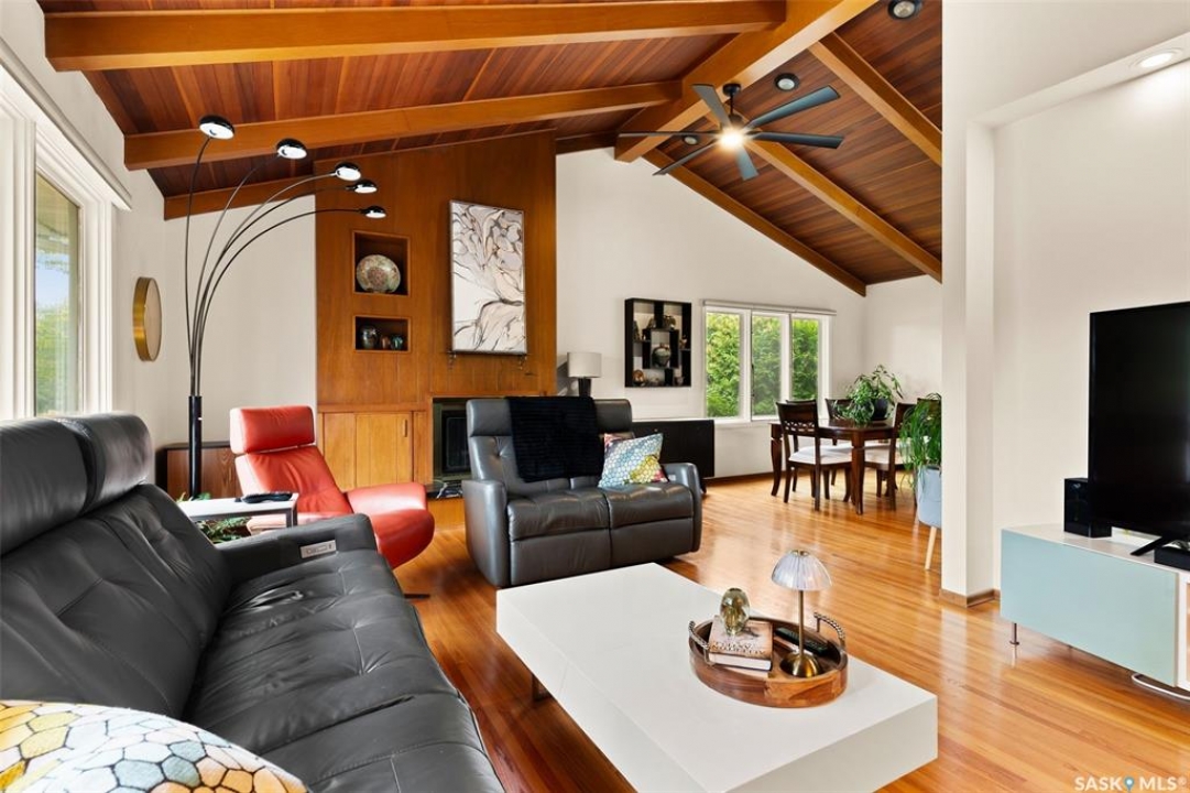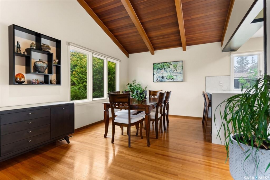 Welcome to a truly unique opportunity in the heart of South Regina. Tucked away on a quiet cul-de-sac overlooking green space, this home offers both privacy and convenience in a prime location. Originally designed as a single residence, the layout now provides a rare opportunity for families in need of an attached nanny suite or multi-generational living. The main home showcases stunning cathedral ceilings that create a bright and open feel, complimented by a series of thoughtful updates in recent years. The refreshed kitchen features stone counters with a waterfall edge, glass tile backsplash, updated flooring, and newer appliances. The primary bedroom is spacious and can double as an exercise space or reading nook. Here garden doors lead to a two-tiered composite deck with pergola and view of the east-facing backyard. Down the hall, a recently remodelled 3-piece bathroom with stylish shower and off the kitchen is access to an attached and heated (20'x26') garage. The fully finished basement adds to the living space with a 2nd bedroom, a den, 4-piece bathroom and laundry. Additional upgrades include modern lighting, a newer furnace, shingles and eaves all within the last 10 years. The second home offers more of the original 60's charm with its own private entrance. Here you will find a cozy space with a galley kitchen and an additional 3 bedrooms and 2 bathrooms. Paved walking paths right out your front door will take you to Kinsmen Park or watch your kids cross the street to school with the recently completed joint-use École St. Pius & Argyle Elementary Schools just a few steps away. Set on an impressive 100ft frontage (with 4 x 25ft lots), this property offers exceptional space and flexibility in one of the city's most desirable neighbourhoods. With its unique configuration, sought-after location, and blend of updates mixed with original charm this home presents an incredible opportunity you won't find anywhere else.