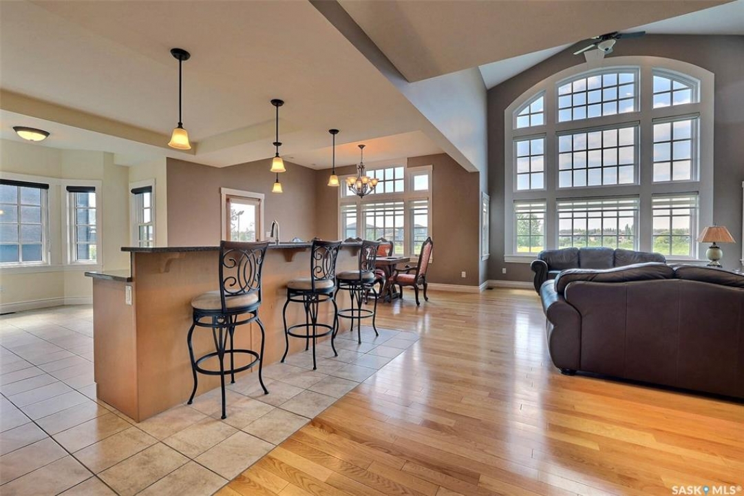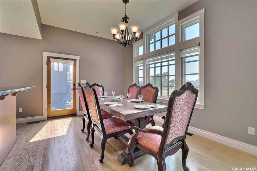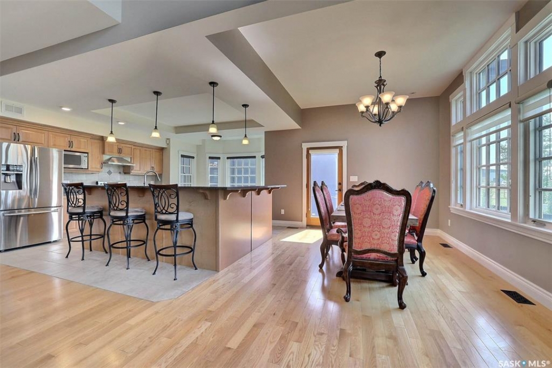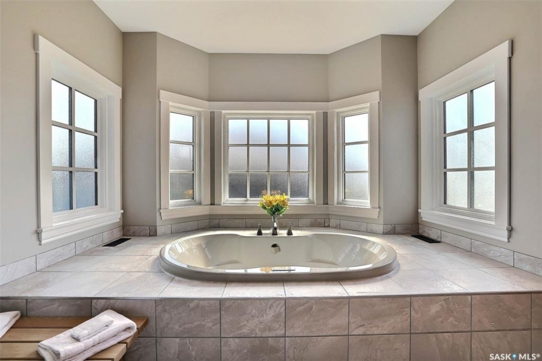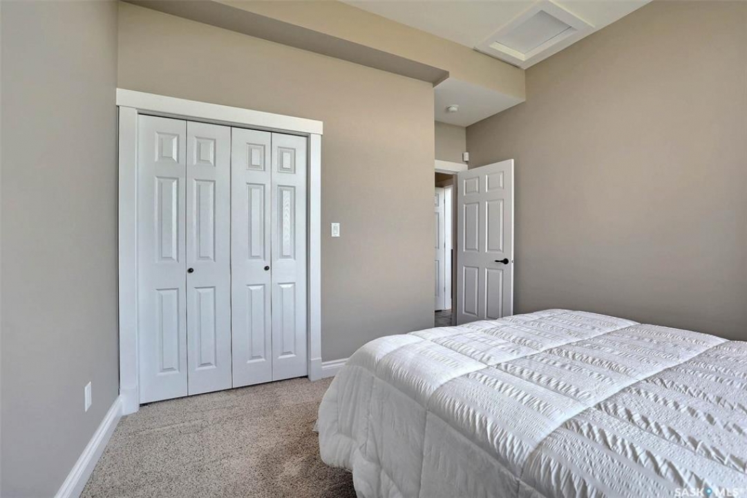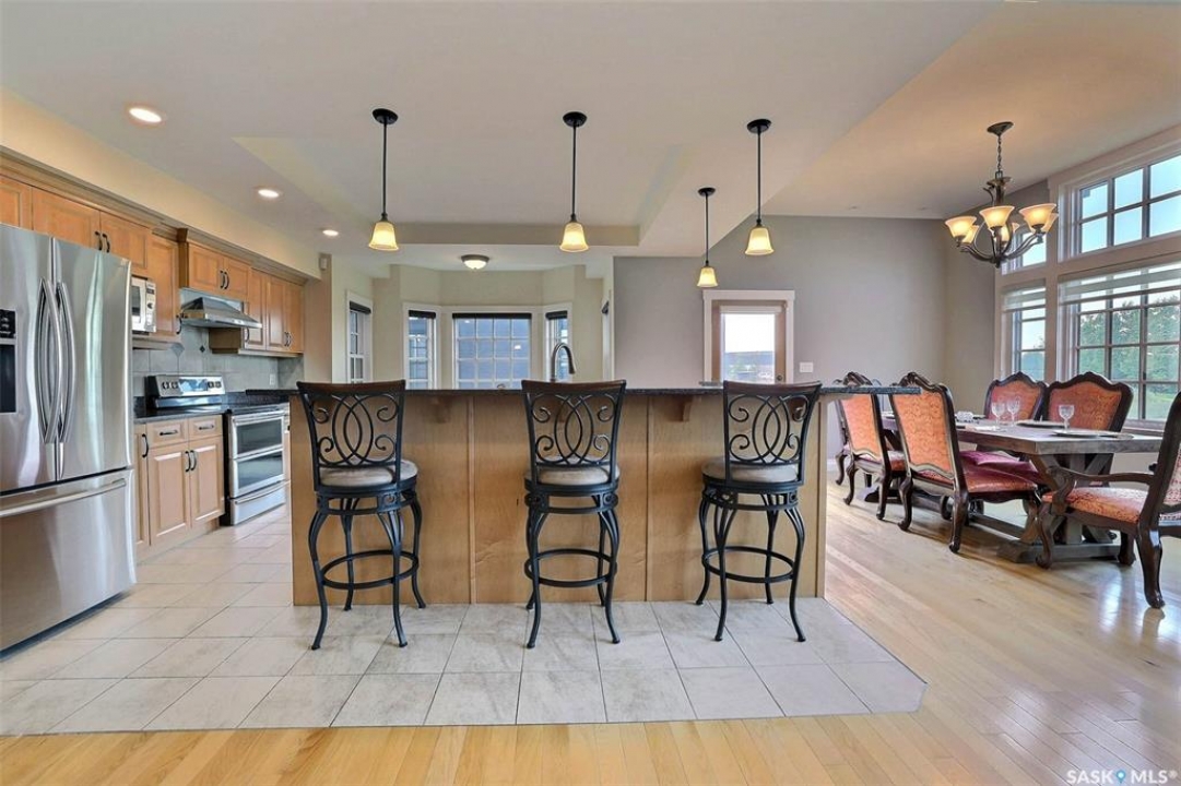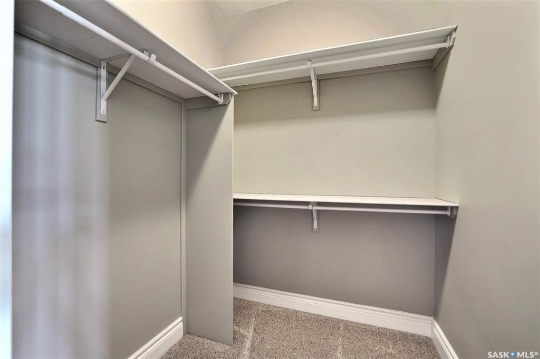 Stunning 2 storey on huge quarter acre lot backing neighbourhood greenspace in desirable White City. Custom built by original owner this 2700+ sq ft home offers superior construction and top quality materials and design throughout with impressive street appeal. Large foyer with beautiful stone flooring and very handy adjacent office/den with fireplace leads to main living area featuring large kitchen with an abundance of cabinets and stone counters, large eating bar and spacious dining area. Spectacular 2 storey ceiling height living room with impressive full wall height fireplace feature with original stone detail. 3 levels of windows overlook the huge greenspace backing rear yard and wide open prairie sky sunset views. Very convenient main floor bedroom and full 4pc bath, large mudroom, main floor laundry and direct entry to large double attached insulated and heated garage. 2nd level is accessed by statement hardwood staircase leading to balcony area overlooking the main floor living area and providing an elevated view of the prairie beyond. Massive primary suite with large walk-in closet, huge ensuite featuring separate soaker jet tub and large tiled shower and double vanity. 2 additional generous sized bedrooms and full bath. Basement has exterior insulated walls and some interior framing (building materials in bsmt included) Top quality Hunter Douglas window coverings (some with remotes), soft close drawers. White City is very desirable established community 10mins from the city but offering all necessary services, schools, shopping, restaurant, parks and prairie greenspaces. Gorgeous one of kind home, call for a private viewing!