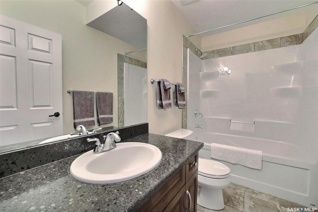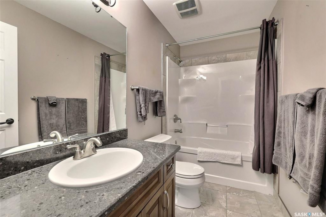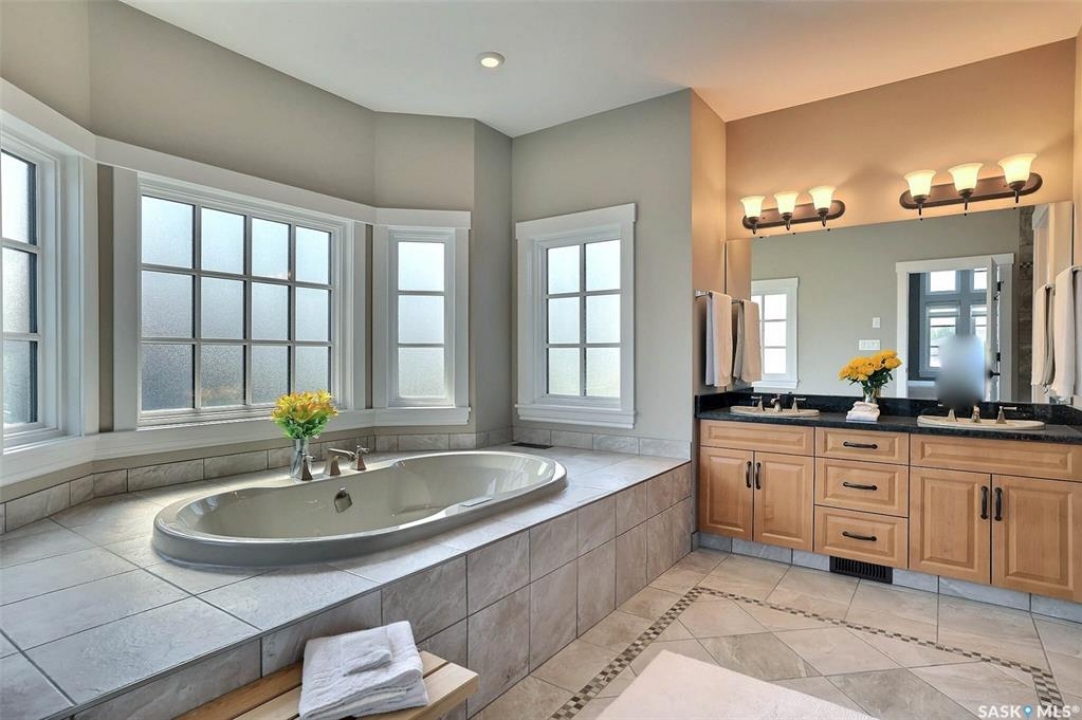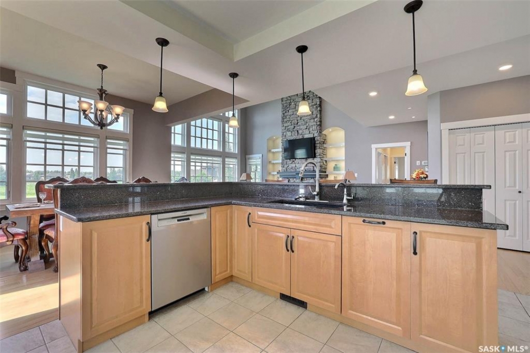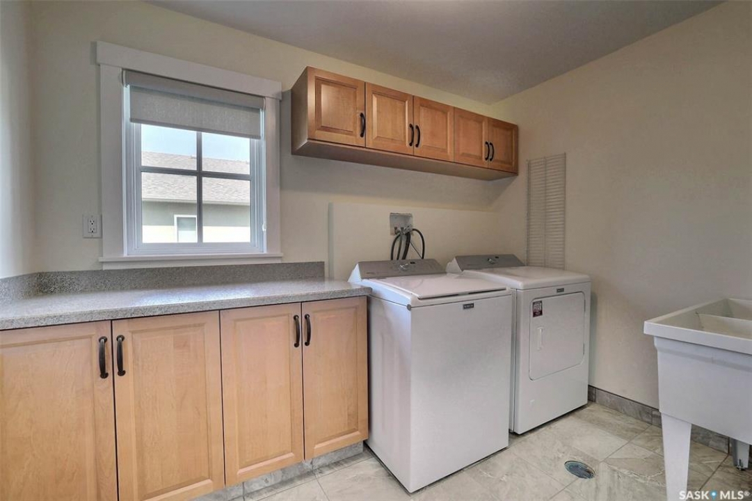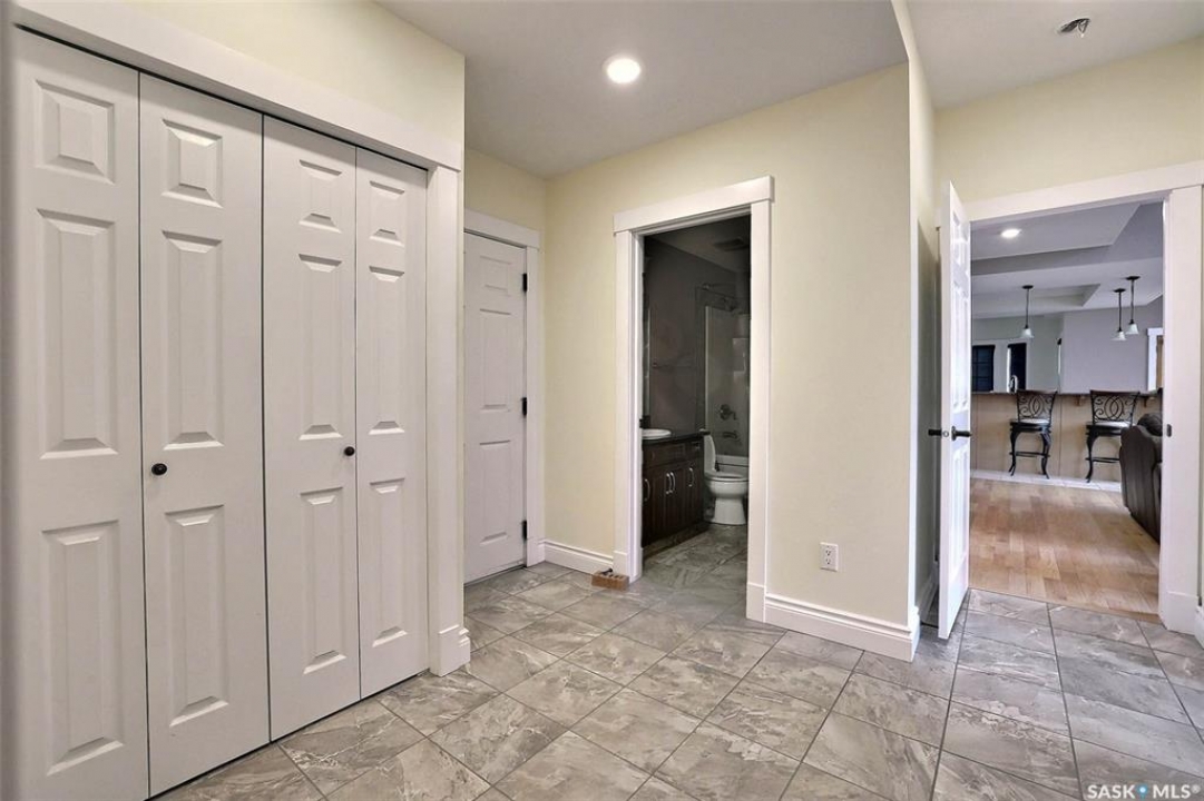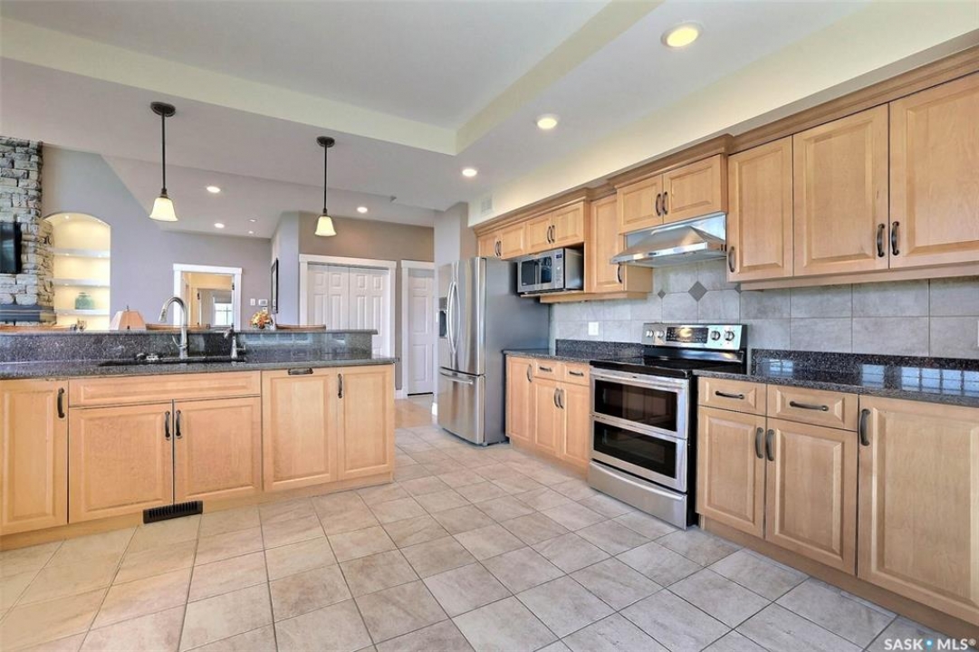 Stunning 2 storey on huge quarter acre lot backing neighbourhood greenspace in desirable White City. Custom built by original owner this 2700+ sq ft home offers superior construction and top quality materials and design throughout with impressive street appeal. Large foyer with beautiful stone flooring and very handy adjacent office/den with fireplace leads to main living area featuring large kitchen with an abundance of cabinets and stone counters, large eating bar and spacious dining area. Spectacular 2 storey ceiling height living room with impressive full wall height fireplace feature with original stone detail. 3 levels of windows overlook the huge greenspace backing rear yard and wide open prairie sky sunset views. Very convenient main floor bedroom and full 4pc bath, large mudroom, main floor laundry and direct entry to large double attached insulated and heated garage. 2nd level is accessed by statement hardwood staircase leading to balcony area overlooking the main floor living area and providing an elevated view of the prairie beyond. Massive primary suite with large walk-in closet, huge ensuite featuring separate soaker jet tub and large tiled shower and double vanity. 2 additional generous sized bedrooms and full bath. Basement has exterior insulated walls and some interior framing (building materials in bsmt included) Top quality Hunter Douglas window coverings (some with remotes), soft close drawers. White City is very desirable established community 10mins from the city but offering all necessary services, schools, shopping, restaurant, parks and prairie greenspaces. Gorgeous one of kind home, call for a private viewing!