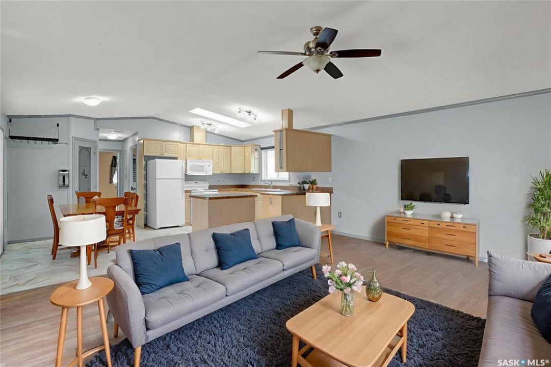 Seller will consider any reasonable offer and is very motivated to sell. Are you looking for a comfortable, move-in-ready home in a welcoming community? This well-kept Veteran owned mobile home, located in the desirable Prairie Oasis, could be your perfect fit. With its features and convenient location, Spacious and Bright: As you step into this home, you'll be greeted by vaulted ceilings that create a sense of openness and space. The natural light streaming through the skylight adds to the warm and inviting atmosphere. Primary Bedroom Suite: The primary bedroom is tucked away for privacy and includes a generous 4-piece ensuite bathroom, offering a personal retreat within your home. Climate Control: Enjoy the comfort of central air conditioning, complemented by a ceiling fan that ensures optimal airflow throughout the space. Convenient Location: Situated within walking distance to a variety of restaurants, shopping and hospital, this location offers the convenience of having everything you need. This home is ready to welcome its new owner. Whether you're a first-time buyer, seeking a new beginning, or looking to downsize without compromising on quality, this mobile home is an excellent choice. Don't miss out on the opportunity. "Some pictures are virtually staged." CLICK ON MULTI MEIDA LINK FOR A VISUAL TOUR AND CALL TODAY FOR YOUR PERSONAL VIEWING.