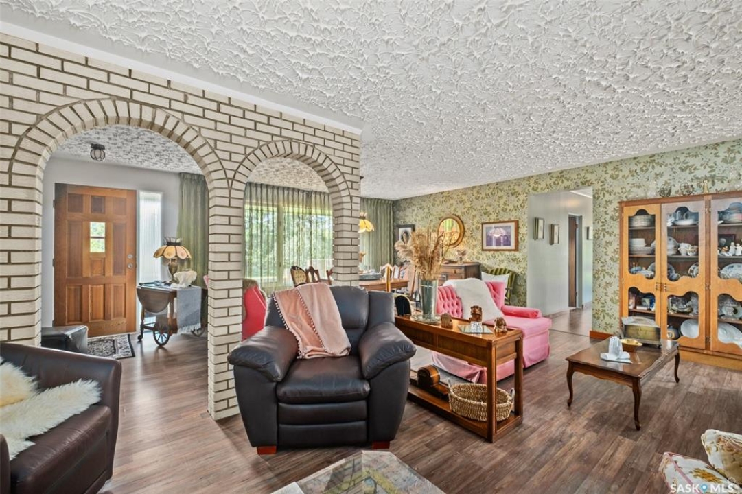 A Truly One-of-a-Kind Opportunity! Resting on 5 acres of land overlooking the North Saskatchewan River, this iconic property is being offered for sale for the very first time.The 2,191 sq. ft. 1 � storey residence features 7 bedrooms, 3 bathrooms, rural water, and an abundance of living space to accommodate families of any size. Step outside and enjoy private brick patios with multiple dining and sitting areas, perfect for both entertaining and quiet relaxation.This unique acreage is also equipped with impressive outbuildings, including: 24' x 26' two-car detached garage, 32' x 56' steel frame quonset with concrete floor, 15.5' x 48' light commercial utility building & a 14' x 46' mezzanine. Located just minutes from the city limits, this property offers the peace of country living with all the conveniences of city amenities close at hand.