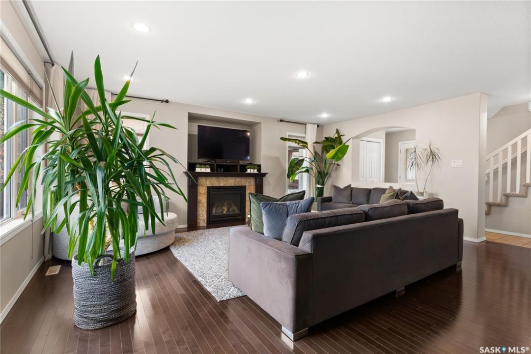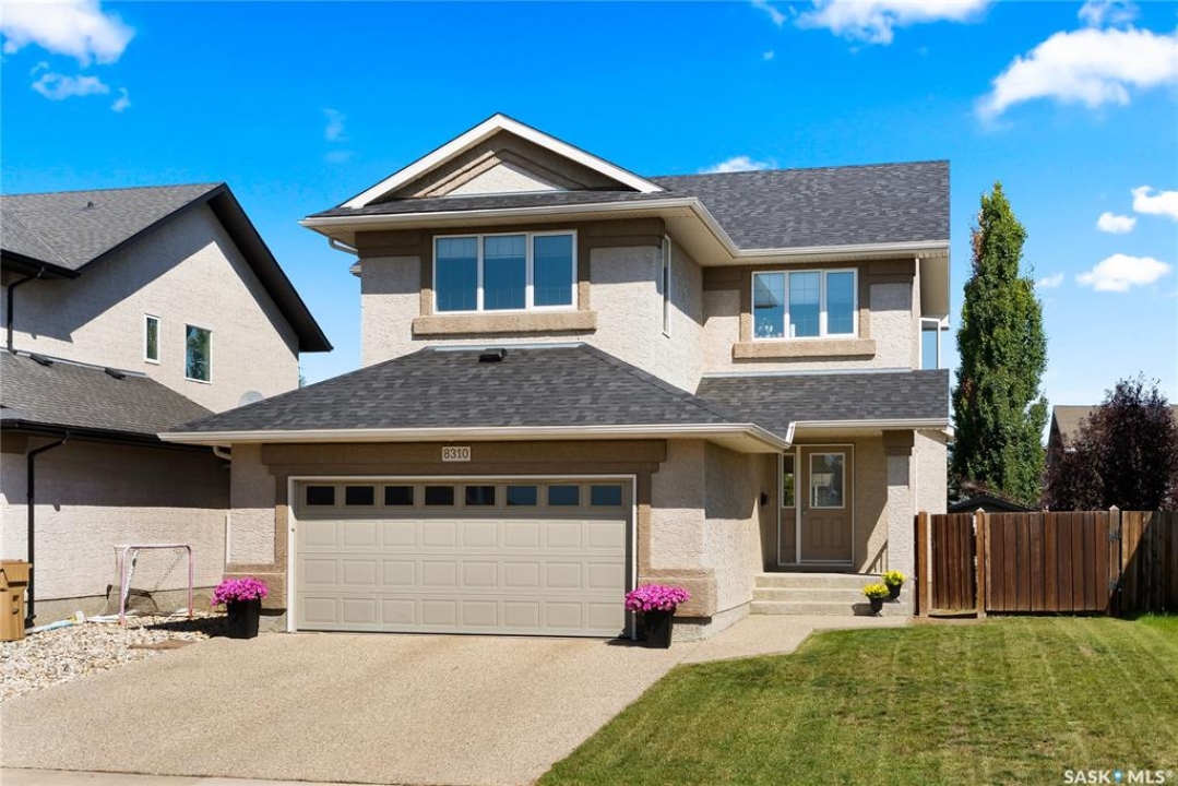 Finally, the one you've been waiting for!Welcome to this wonderful family home - 8310 Wascana Gardens Way! This nearly 2,000 sq. ft. two-storey offers a thoughtful layout, beautiful updates, and a yard that's ready to enjoy. The spacious kitchen is the true centrepiece of the home, showcasing espresso maple cabinets, a large island, pantry, updated lighting and hardware, and stainless steel appliances. The inviting great room features a gas fireplace and hardwood flooring that flows seamlessly into the dining area. Garden doors lead to a large deck/patio area overlooking the fully landscaped, fenced yard. The main floor also offers a 2-piece guest bathroom, welcoming foyer and convenient access to the garage. Upstairs, you'll find a bright and versatile bonus room, a convenient laundry room, three generously sized bedrooms, and a 4-piece main bath. The primary retreat includes a walk-in closet and spa-like ensuite with jetted tub. The basement is open for customization to your liking! The home has seen some fresh new paint in neutral tones and boasts numerous upgrades, including: new microwave, new roof (April 2025), new A/C (September 2025), new HRV (September 2025), new blinds in bedrooms, two new windows, updated toilets, and slat board in the garage for smart storage. This property is truly move-in ready and a pleasure to show!