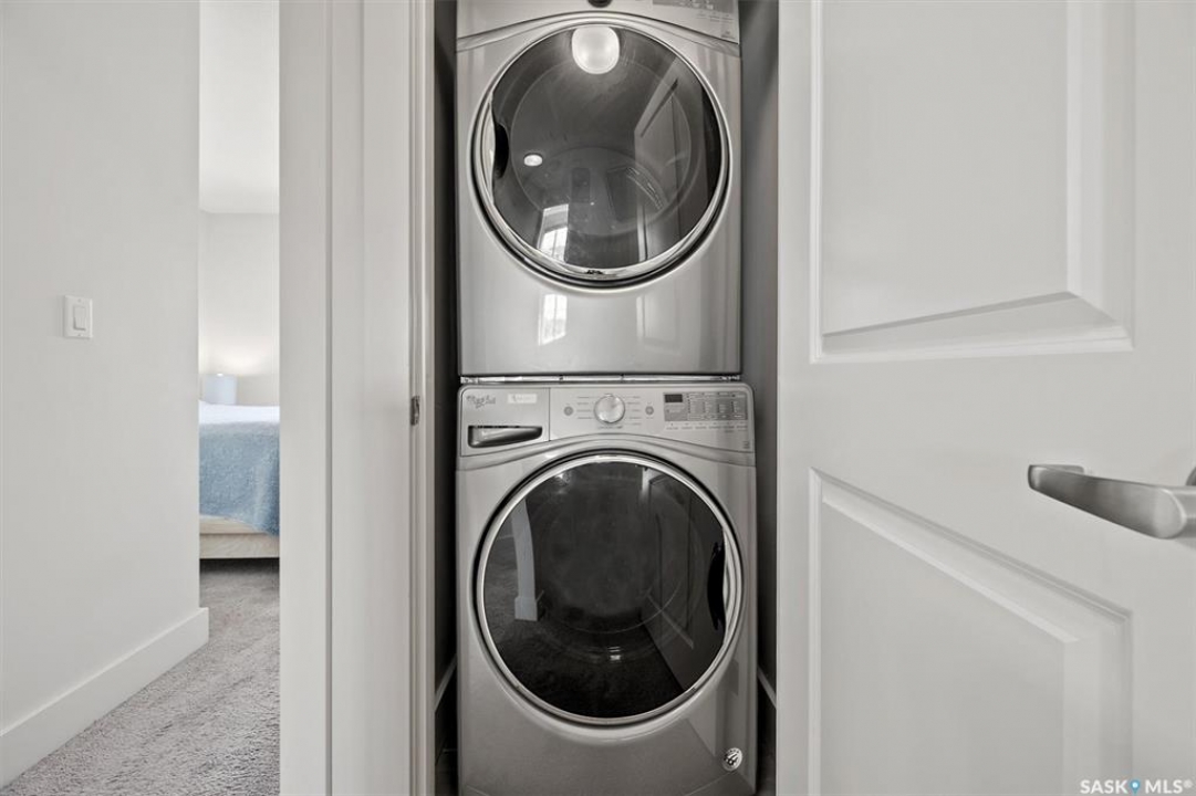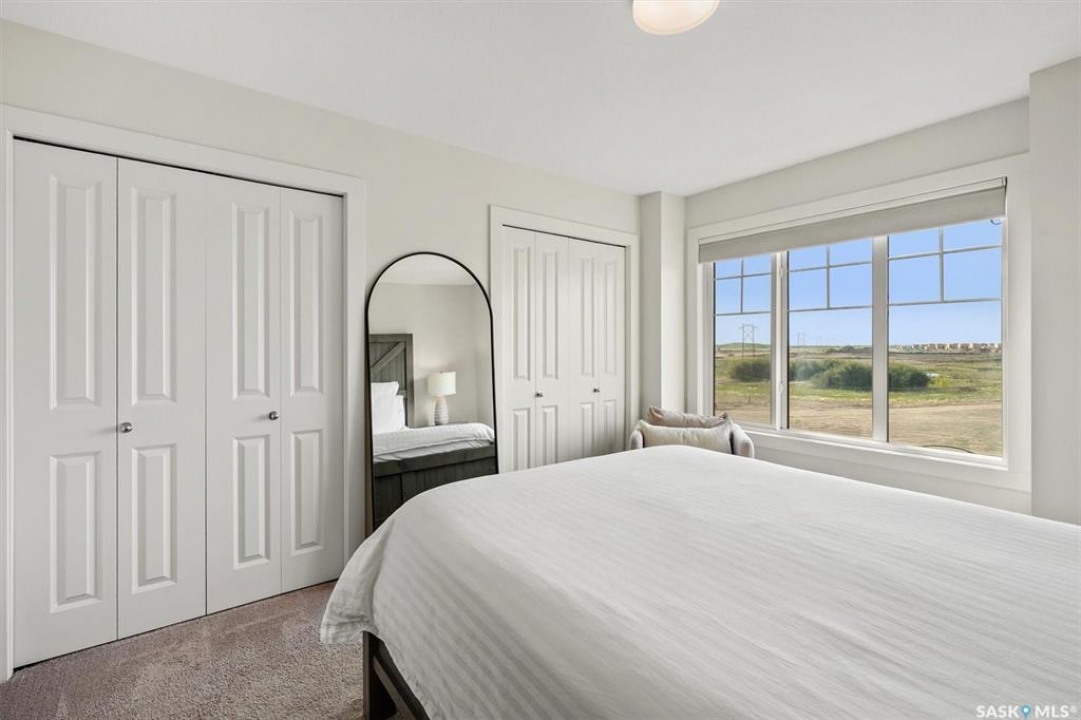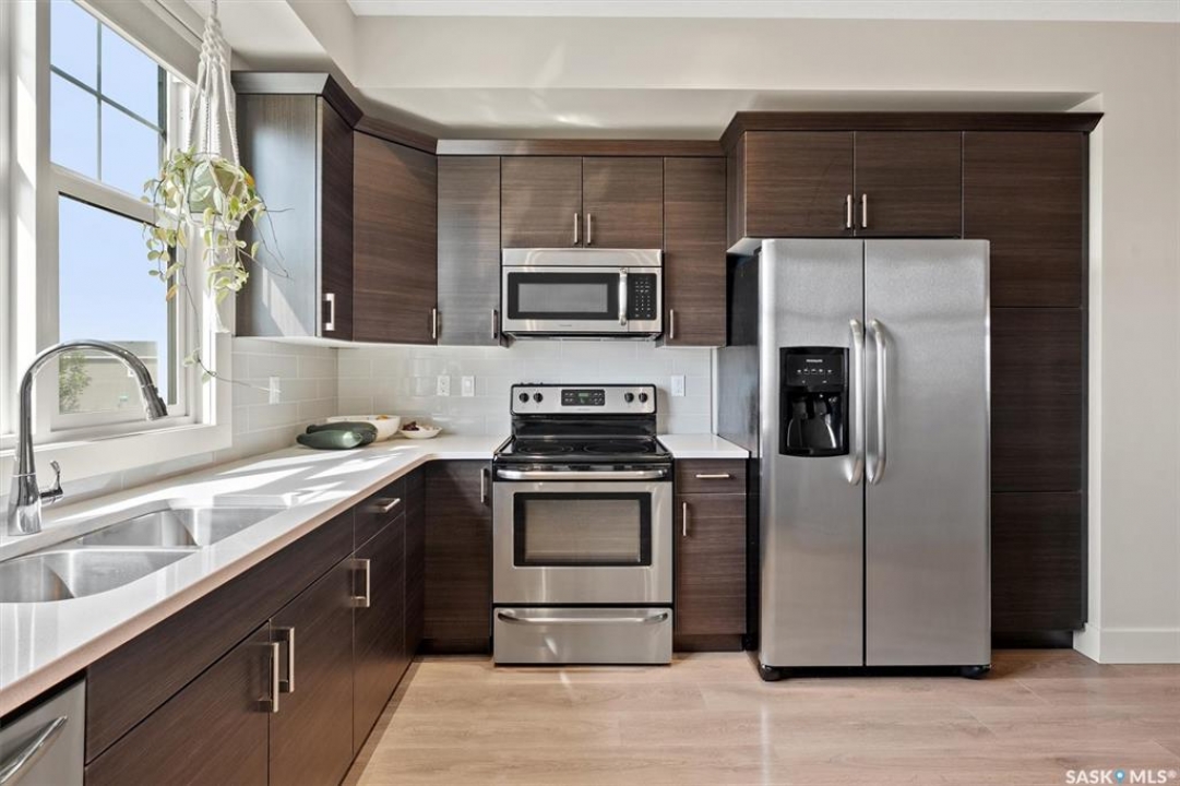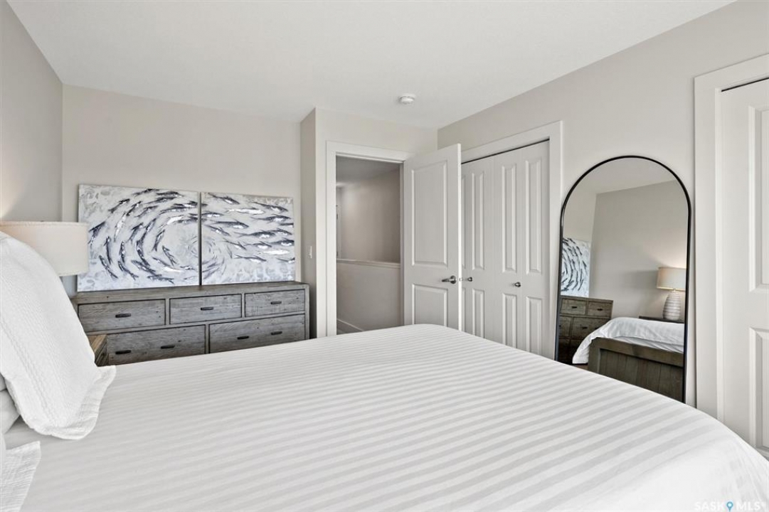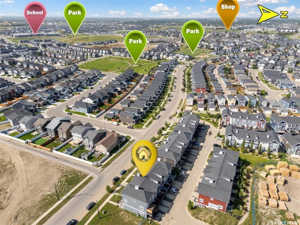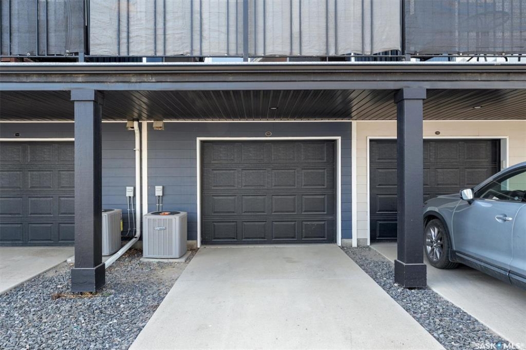 Welcome to this beautiful three-storey townhouse located in the highly sought-after community of Rosewood, Saskatoon. Offering a perfect blend of modern style and functional living, this home is ideal for anyone seeking comfort and convenience in one of the city's most popular neighbourhoods. Inside, you'll find a bright and inviting open-concept layout. The spacious living room flows seamlessly into the dining area and kitchen, creating the perfect space for entertaining or spending time with family. Large windows and a private balcony allow for plenty of natural light, while the modern kitchen features stainless steel appliances, sleek cabinetry, and ample counter space. This home offers three comfortable bedrooms and two well-appointed bathrooms. The main floor bathroom is tucked around from the living area and includes a stand-up shower. The primary bedroom is a serene retreat with a large window and room to unwind at the end of the day. Do not miss the five-piece ensuite, featuring a double vanity and a tub/shower combo. Additional highlights include convenient upstairs laundry, tasteful finishes throughout, and a private balcony perfect for relaxing or barbecuing. The single attached heated garage provides both parking and storage while currently being used as a home gym. This location offers easy access to parks, walking trails, schools, shopping, and all the amenities a vibrant neighbourhood could offer. Don't miss this chance to join one of Saskatoon's thriving areas, a community poised for growth and expansion.