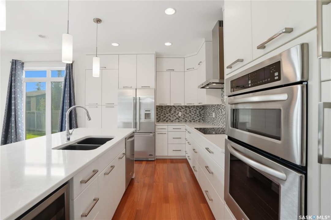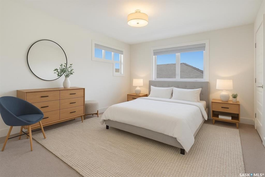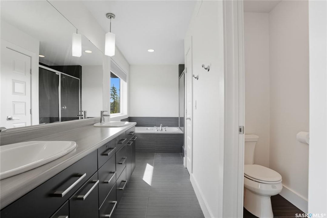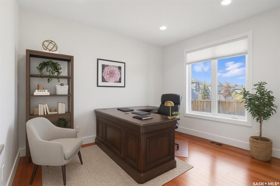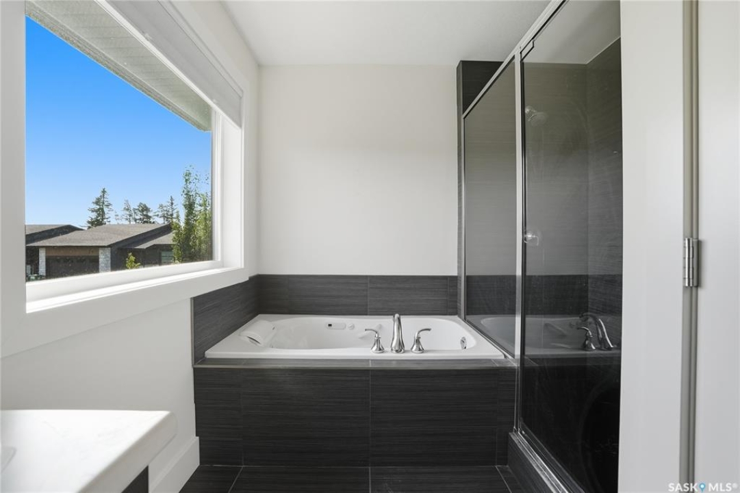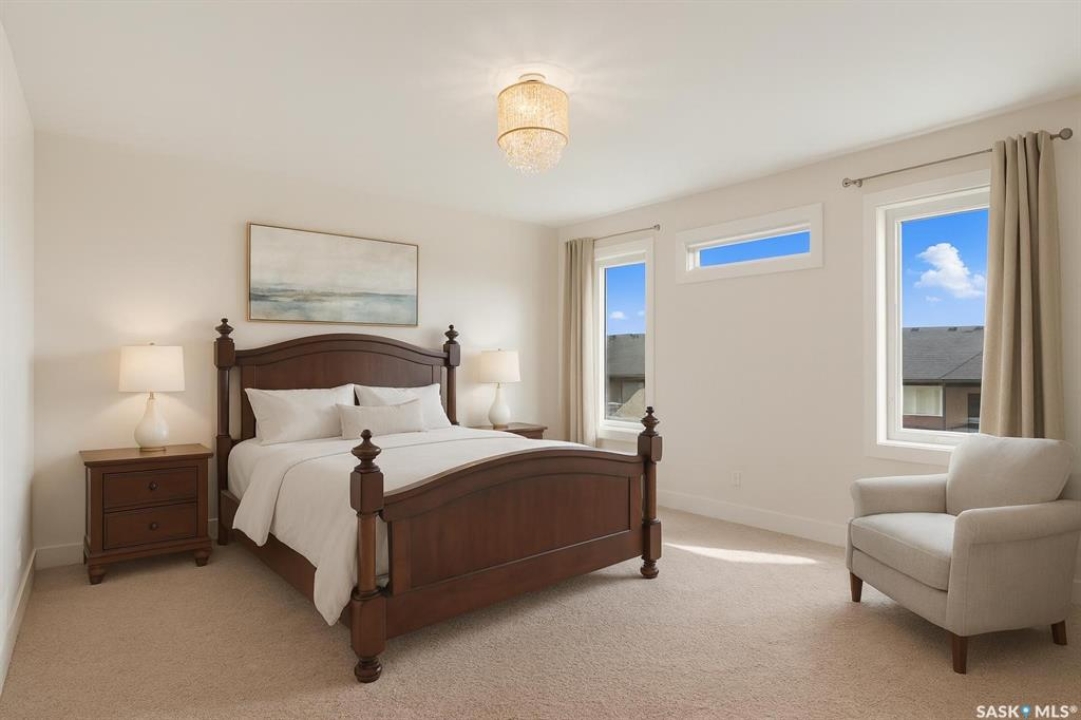 Immaculate Evergreen Home on a Large Pie-Shaped Lot with Detached Garage! Situated in the sought-after Evergreen neighbourhood, this stunning 2-storey home sits on a generous pie-shaped lot & features both an oversized attached double garage with a drive-through third door & a single detached garage—ideal for car enthusiasts or extra storage! Step into the spacious foyer through an oversized 8' front door & experience the pride of ownership throughout. The main floor features a dedicated office/den near the entrance & a light-filled open-concept kitchen, living, and dining area. The sleek modern kitchen boasts ample white cabinetry, a wall pantry, quartz countertops, tile backsplash, stainless steel appliances including a wine fridge & stylish finishes throughout. The living room is anchored by a cozy gas fireplace, while the large dining space opens via patio door to the deck & landscaped backyard. Rich hardwood flooring complements the main level, which also includes a convenient 2-piece bathroom tucked off the mudroom, leading to the impressive 22.10x27.3x30.4 garage. Upstairs, you'll find 3 spacious bedrooms, including a luxurious primary suite with a 5-piece ensuite featuring a soaker tub, double walk-in shower, dual sinks, water closet & walk-in closet. The upper floor also offers a full 5-piece main bathroom and a large laundry room with counter space and cabinetry. The finished basement provides even more room to entertain, with a huge family room, games area, 4th bedroom & full 4-piece bath. A spacious utility area adds storage flexibility. Enjoy custom blinds, A/C, central vacuum. Loads of potential for the back yard which is ready to be transformed into your dream space, plus garden beds & easy access to nearby walking paths. Note the single detached garage (19.8'x12.7') with easy access. Located near the Forestry Farm/Zoo, amenities, school bus pick-up, elementary & high schools! Call your Realtor � to view today! *some pictures are virtually staged