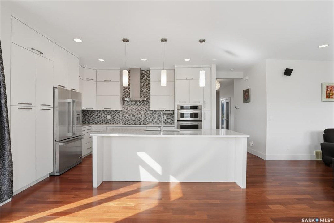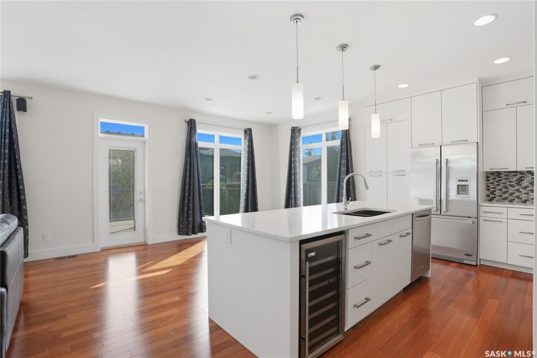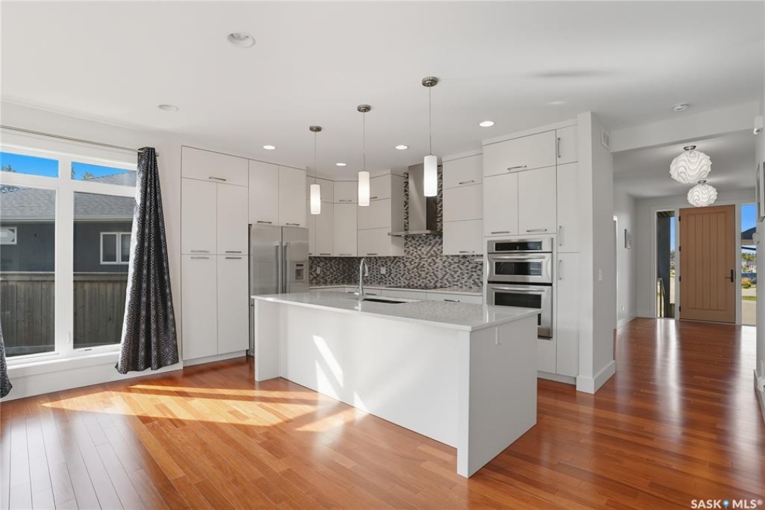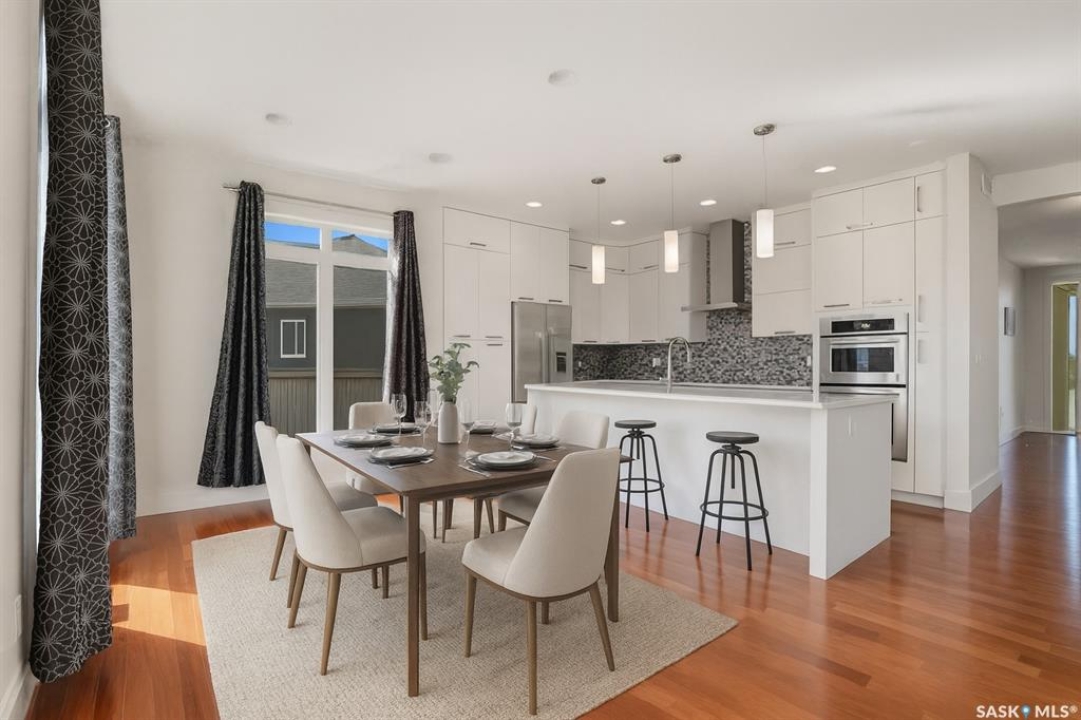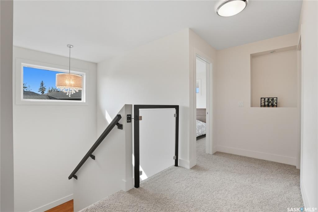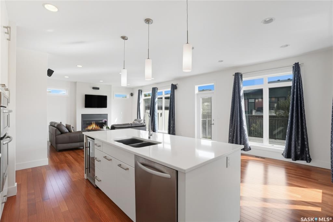 Immaculate Evergreen Home on a Large Pie-Shaped Lot with Detached Garage! Situated in the sought-after Evergreen neighbourhood, this stunning 2-storey home sits on a generous pie-shaped lot & features both an oversized attached double garage with a drive-through third door & a single detached garage—ideal for car enthusiasts or extra storage! Step into the spacious foyer through an oversized 8' front door & experience the pride of ownership throughout. The main floor features a dedicated office/den near the entrance & a light-filled open-concept kitchen, living, and dining area. The sleek modern kitchen boasts ample white cabinetry, a wall pantry, quartz countertops, tile backsplash, stainless steel appliances including a wine fridge & stylish finishes throughout. The living room is anchored by a cozy gas fireplace, while the large dining space opens via patio door to the deck & landscaped backyard. Rich hardwood flooring complements the main level, which also includes a convenient 2-piece bathroom tucked off the mudroom, leading to the impressive 22.10x27.3x30.4 garage. Upstairs, you'll find 3 spacious bedrooms, including a luxurious primary suite with a 5-piece ensuite featuring a soaker tub, double walk-in shower, dual sinks, water closet & walk-in closet. The upper floor also offers a full 5-piece main bathroom and a large laundry room with counter space and cabinetry. The finished basement provides even more room to entertain, with a huge family room, games area, 4th bedroom & full 4-piece bath. A spacious utility area adds storage flexibility. Enjoy custom blinds, A/C, central vacuum. Loads of potential for the back yard which is ready to be transformed into your dream space, plus garden beds & easy access to nearby walking paths. Note the single detached garage (19.8'x12.7') with easy access. Located near the Forestry Farm/Zoo, amenities, school bus pick-up, elementary & high schools! Call your Realtor � to view today! *some pictures are virtually staged