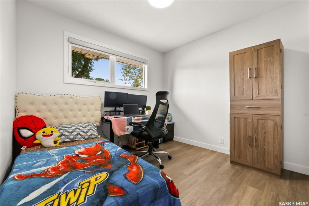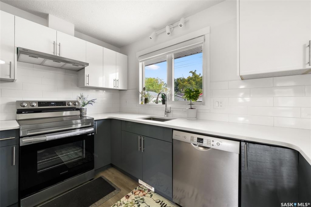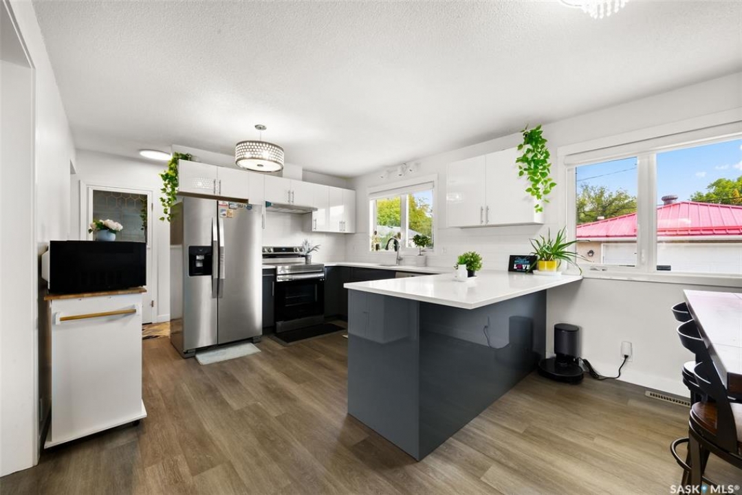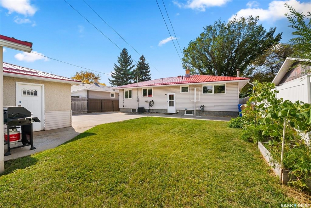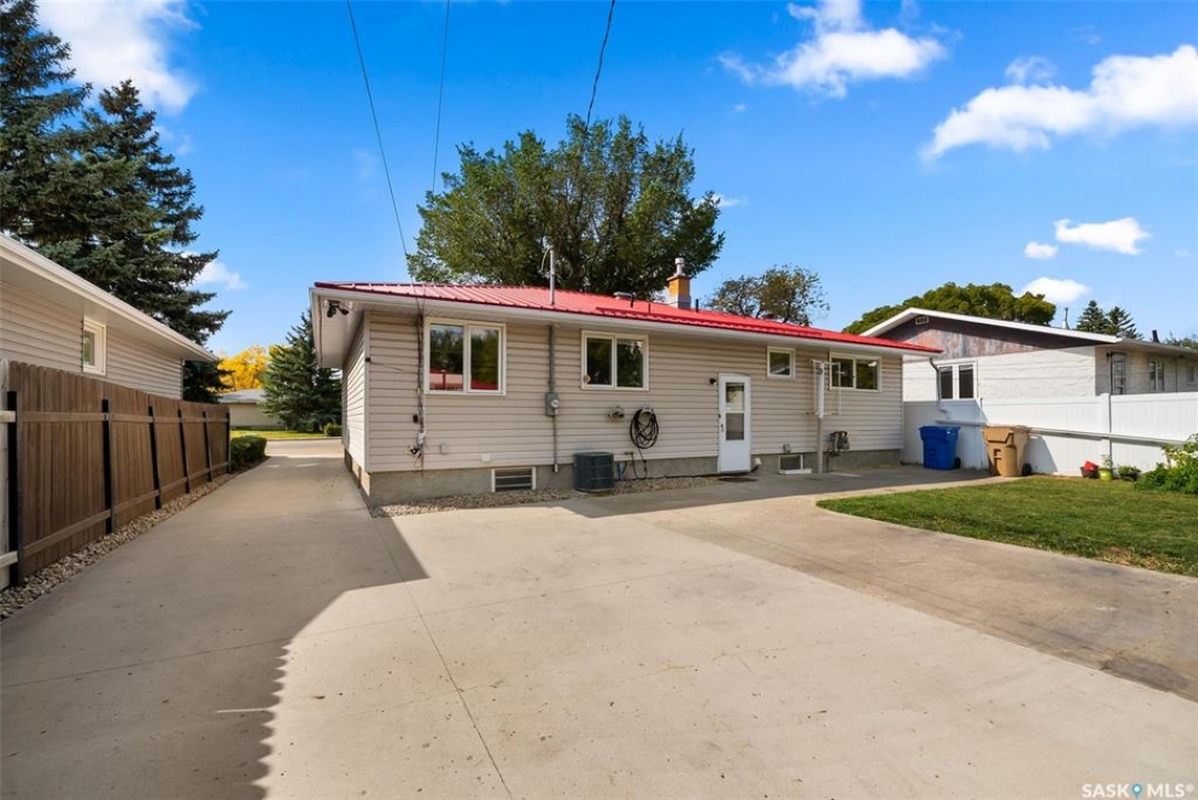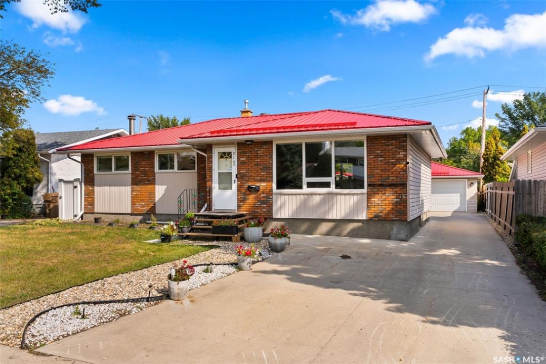 Welcome to 315 McIntosh Street N, a beautifully updated bungalow nestled in the family-friendly Normanview neighbourhood of Regina. This move-in ready home offers 1,245 sq. ft. of bright, modern living space on a spacious 6,100 sq.ft. lot. Thoughtful upgrades throughout. The main floor features a spacious living room with large windows that flood the space with natural light, complemented by vinyl plank flooring throughout. The open-concept design flows seamlessly into the dining area and a stunning updated kitchen, complete with quartz countertops, stylish two-tone cabinetry, stainless steel appliances, and an island with breakfast bar seating—perfect for everyday living and entertaining. Three main-floor bedrooms provide comfort and functionality, including a generous primary bedroom, and a beautifully renovated 4-piece bathroom with modern finishes. The fully developed basement offers even more living space with a large recreation room, an additional bedroom, a den, a 3-piece bath, and a spacious laundry room with extra storage—ideal for growing families or guests. Outside, the property sits on a 6,100 sq. ft. lot with a fenced backyard, patio area, and ample green space. A standout feature is the oversized 24' x 25' detached insulated garage, plus a long concrete driveway offering plenty of off-street parking. The home also boasts a durable metal roof for peace of mind. Additional highlights include central air conditioning, updated flooring, and modern fixtures throughout. Conveniently located near schools, parks, shopping, and transit, this property combines style, space, and practicality. This is an excellent opportunity to own a turn-key family home in a desirable location.
